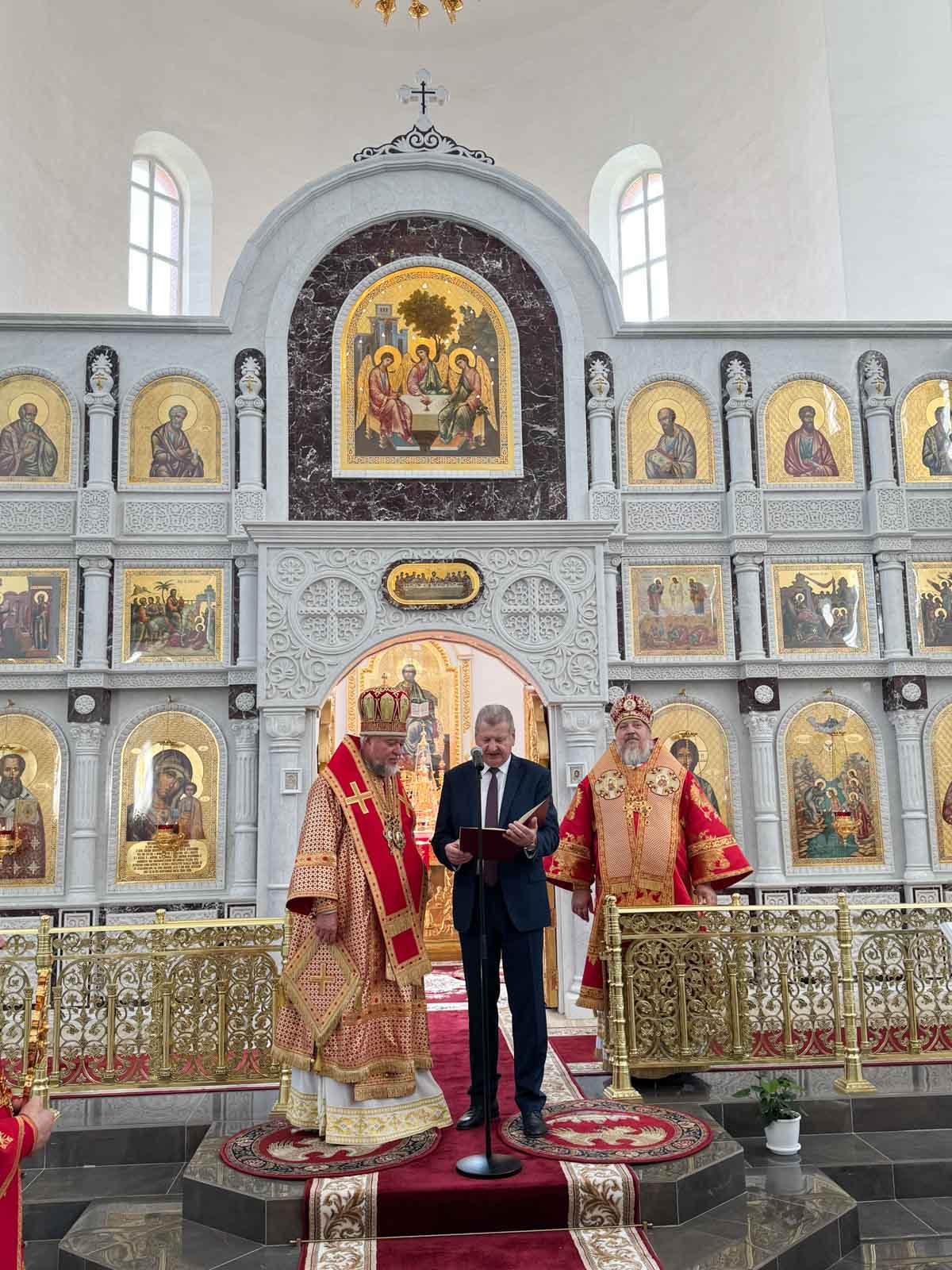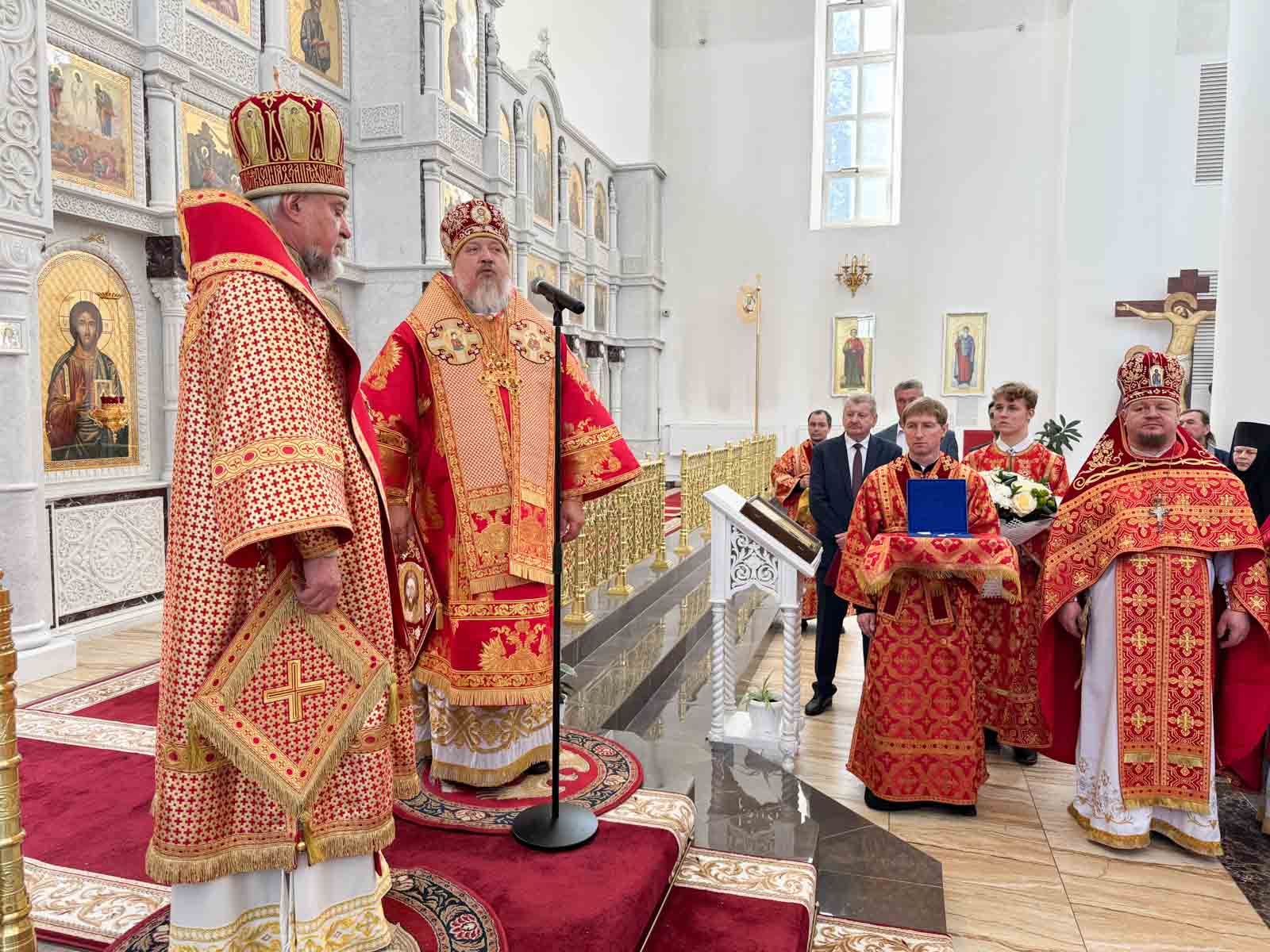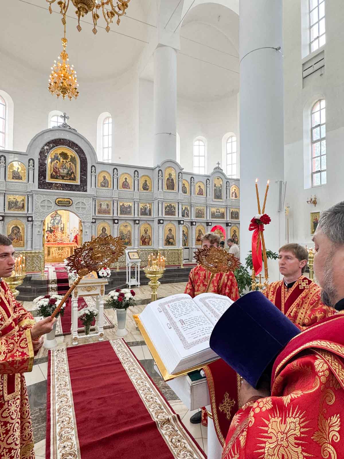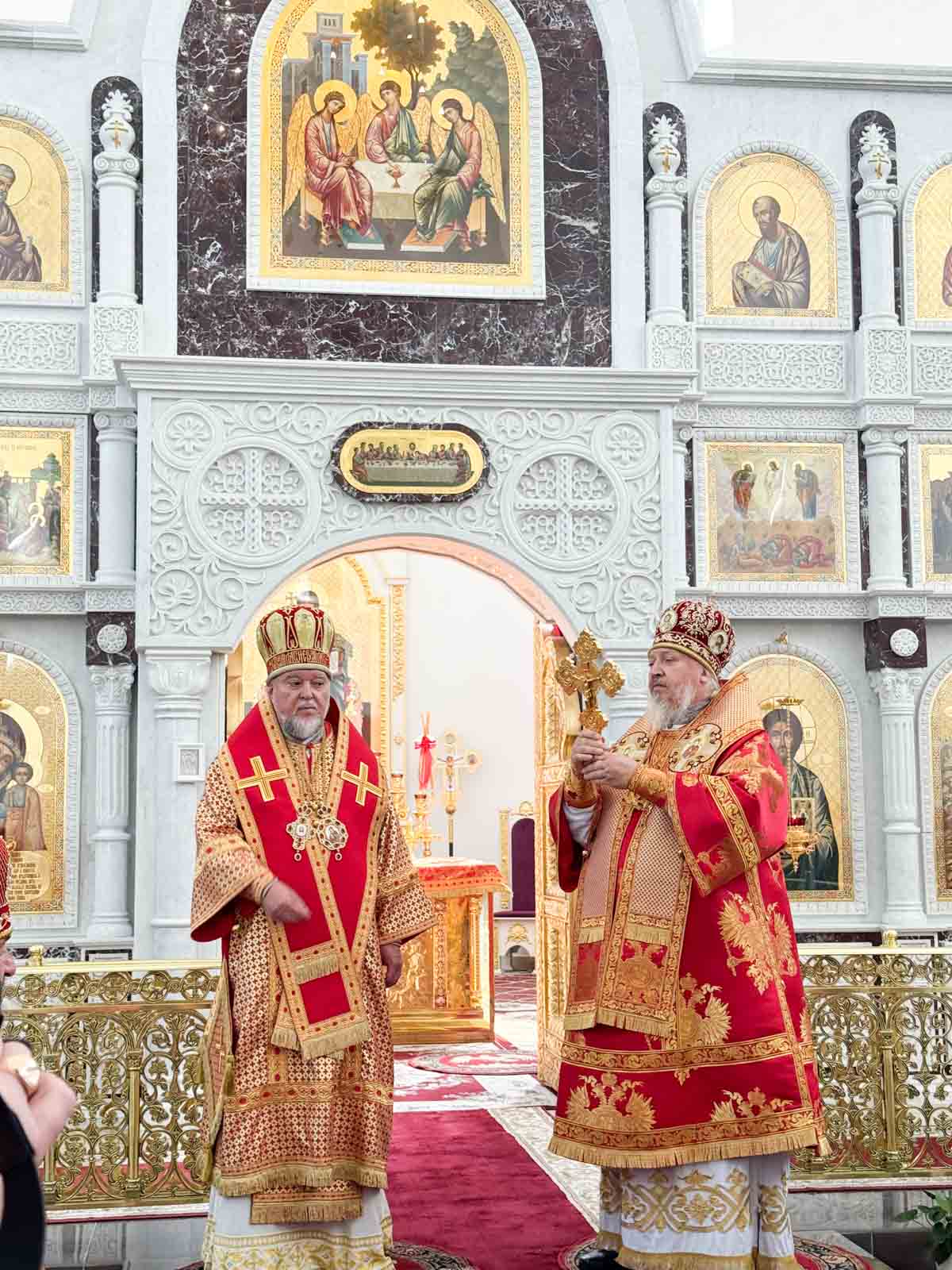По окончании Литургии архиепископ Стефан с сердечной теплотой поздравил Преосвященнейшего епископа Владимира с днём тезоименитства, а также с юбилейными датами: 40-летием священнической хиротонии и 10-летием архиерейского служения, пожелав укрепления духовных и телесных сил, неоскудевающей помощи Божией во всех трудах, мудрости, благодати и доброго здравия на многая и благая лета.