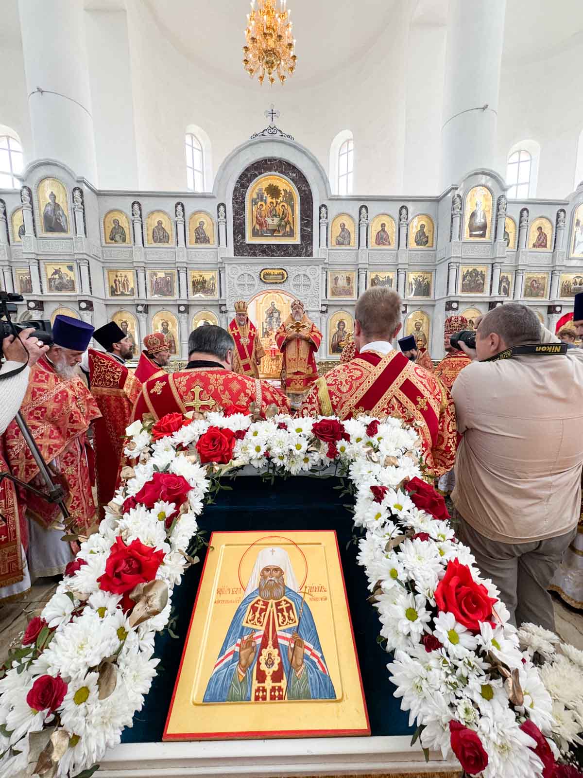 Его Высокопреосвященству сослужил Преосвященнейший Владимир, епископ Клинцовский и Трубчевский. Архипастырям сослужили клирики Клинцовской епархии.