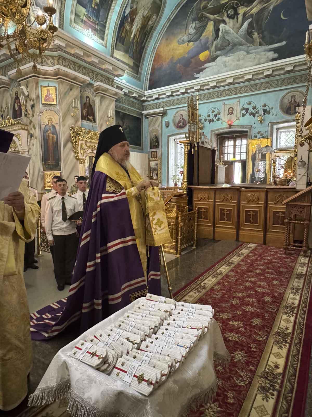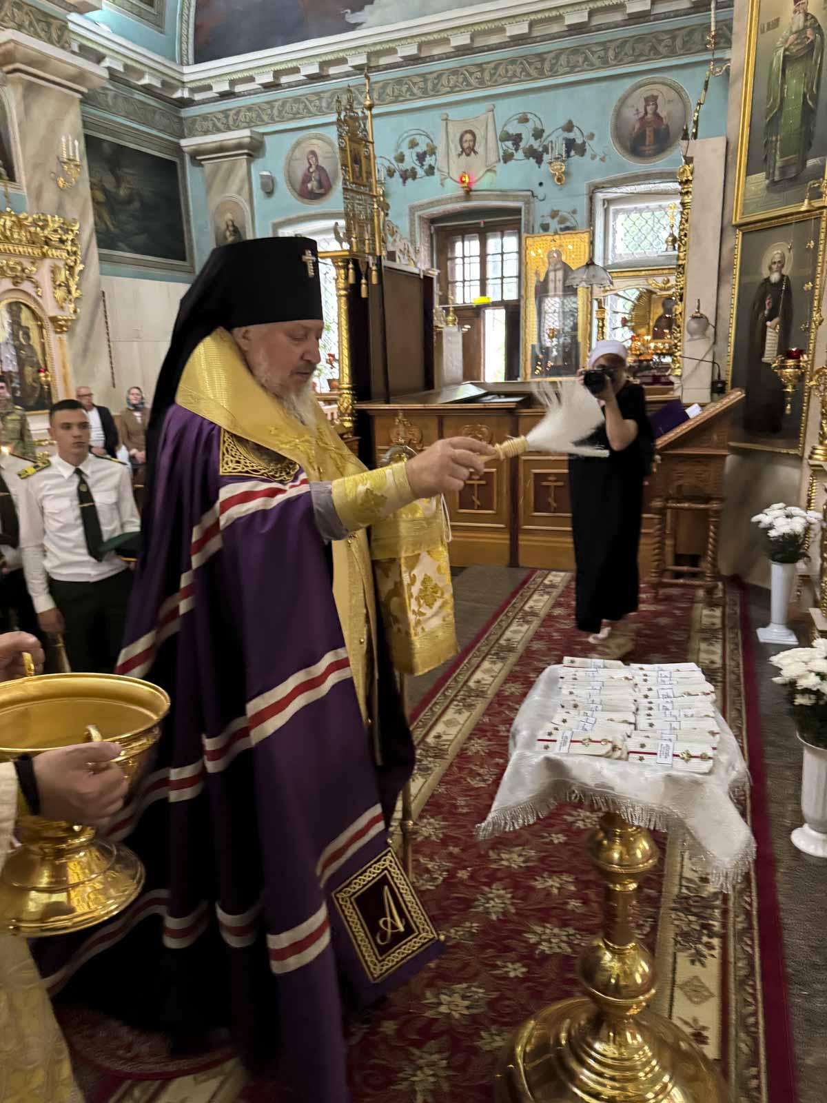 Богослужение и последующее освящение погон совершил архиепископ Гомельский и Жлобинский Стефан совместно с председателем отдела по взаимодействию с Вооружёнными Силами и правоохранительными органами Гомельской епархии протоиереем Игорем Ольшановым. В ходе мероприятия присутствующим выпускникам было адресовано напутственное слово, в котором подчёркивалась значимость воинского служения и духовной ответственности каждого гражданина перед Отечеством.