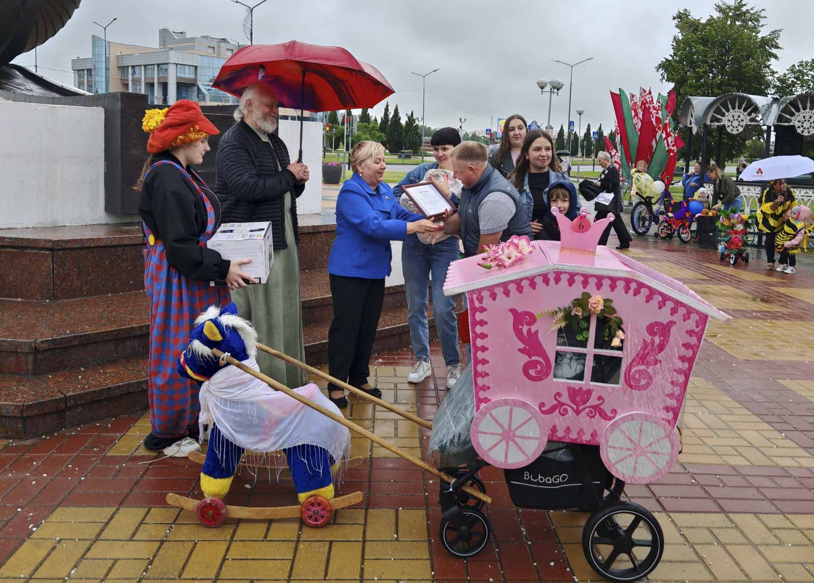 28 июня бульвар Металлургов в Жлобине, несмотря на непогоду, превратился в яркий подиум фантазии и творчества. Здесь состоялся семейный конкурс-парад колясок, велосипедов и самокатов, приуроченный к 100-летию присвоения Жлобину статуса города.
