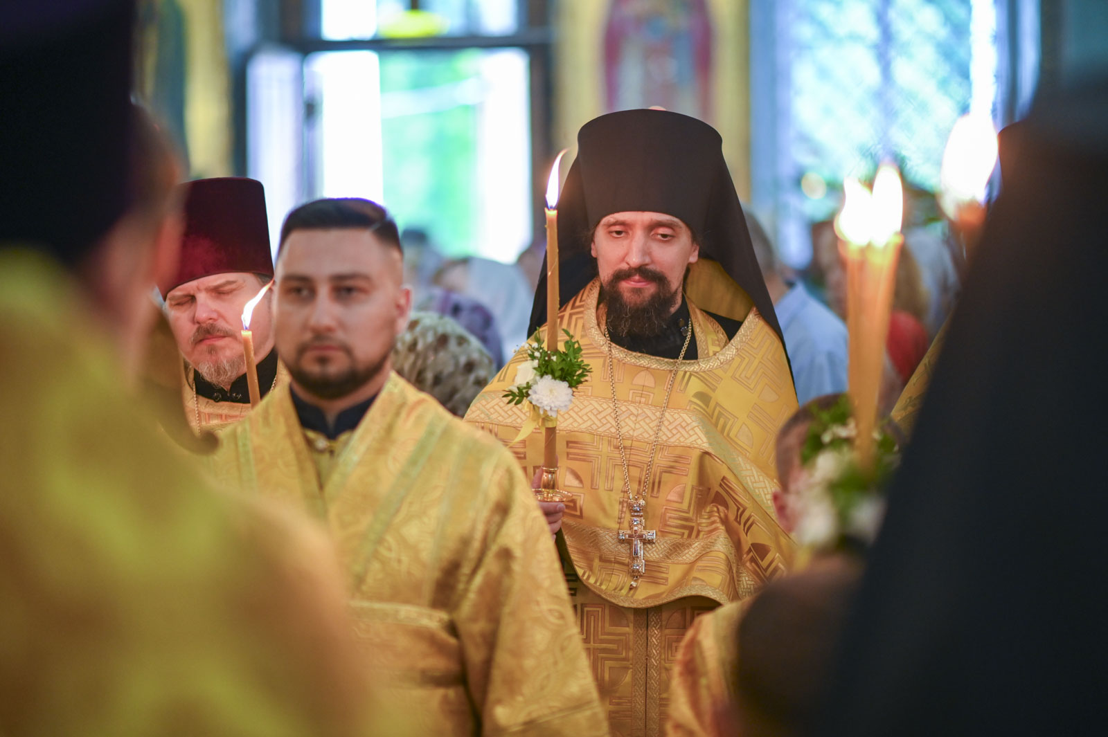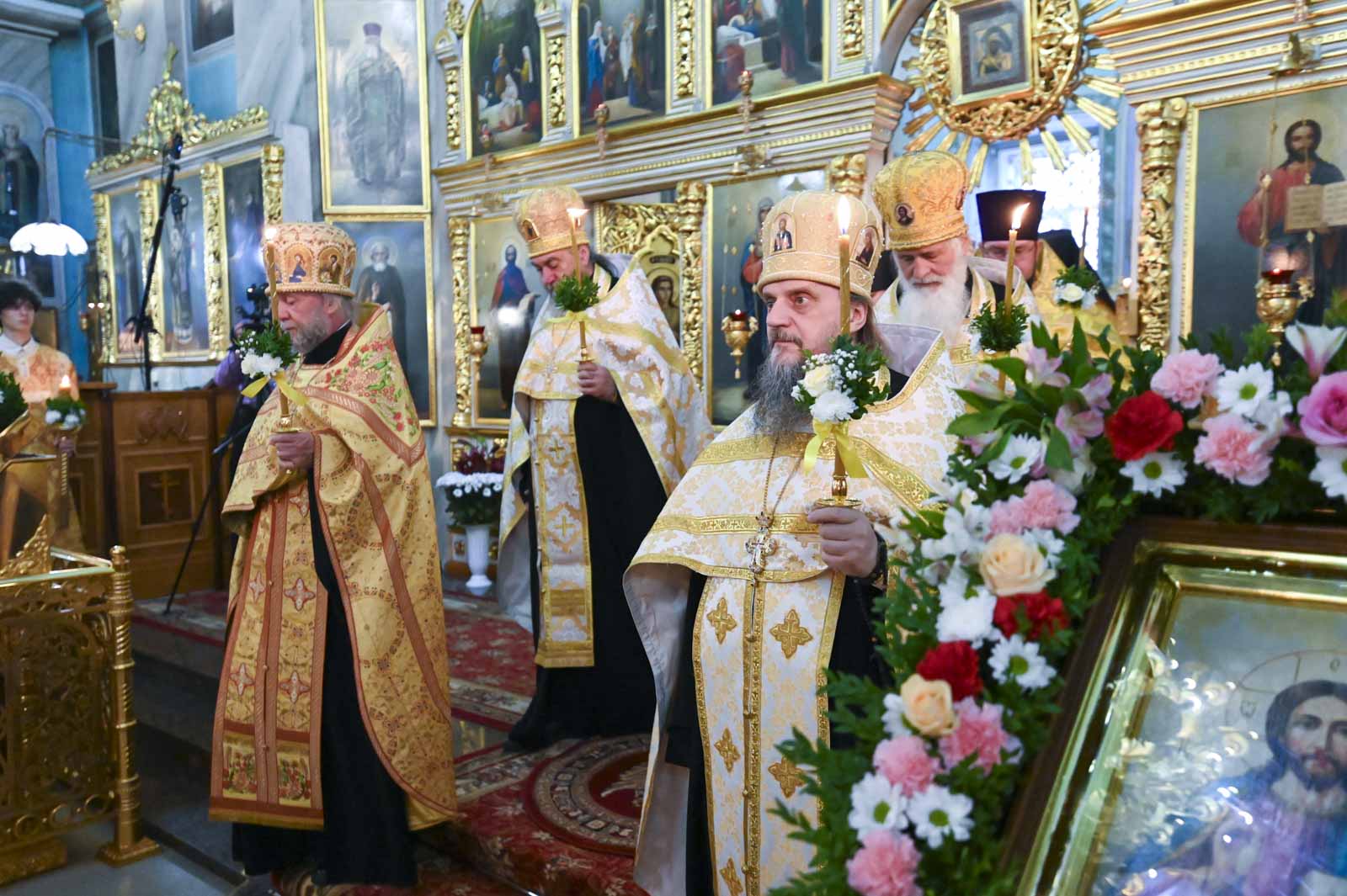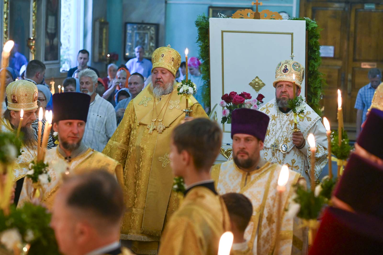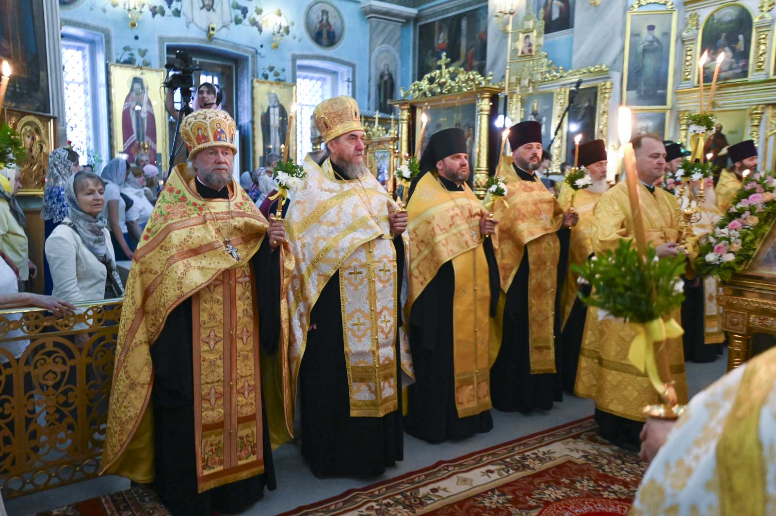 Архипастырям сослужили ректор Минской духовной академии архимандрит Афанасий (Соколов), благочинный 4-го Минского городского церковного округа, председатель Синодального отдела по сотрудничеству со светскими учреждениями образования, председатель приходского совета прихода в честь Всех святых города Минска протоиерей Федор Повный, благочинный Гомельского городского округа протоиерей Игорь Ольшанов, а также клирики кафедрального собора и духовенство епархии.