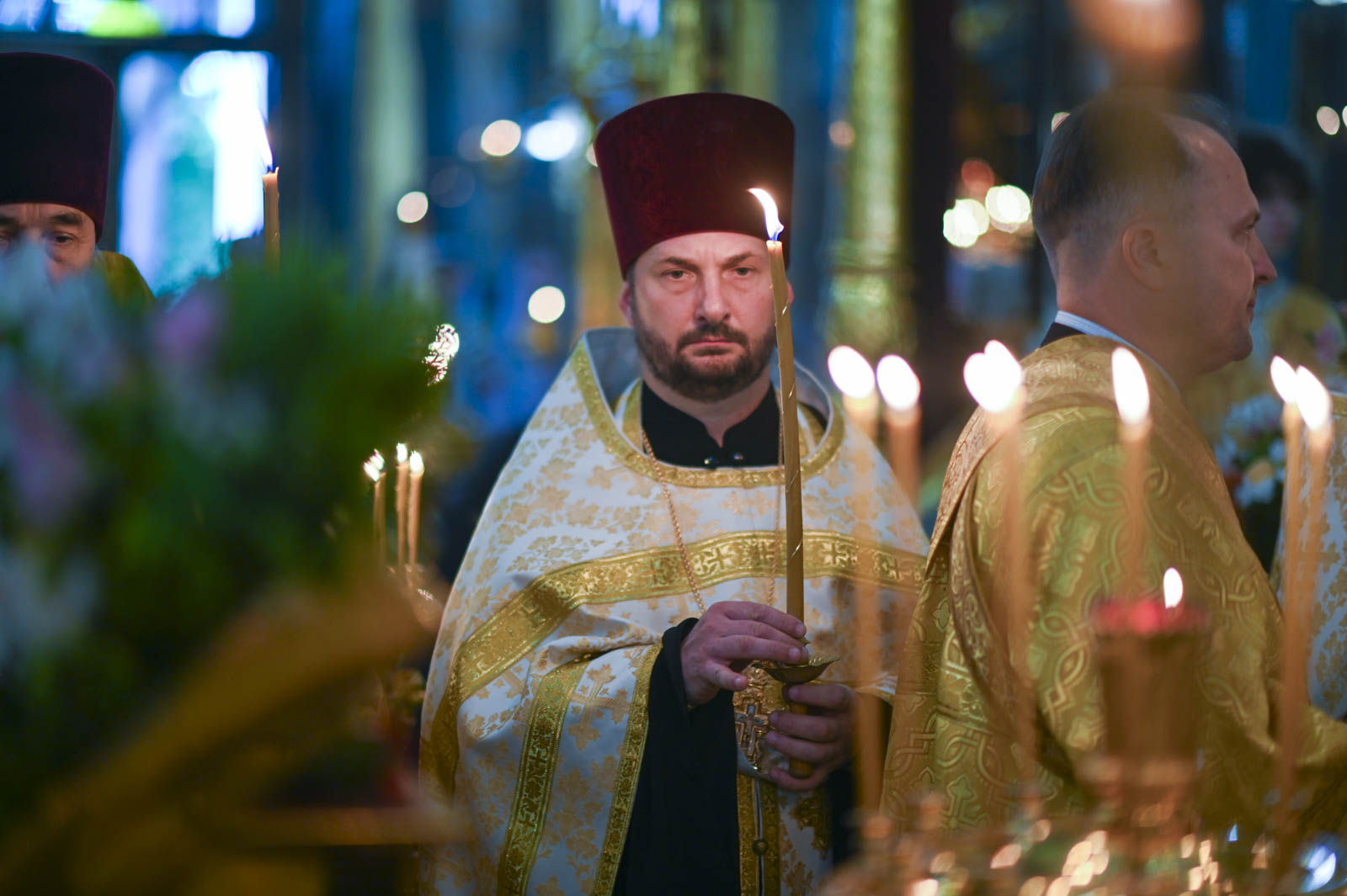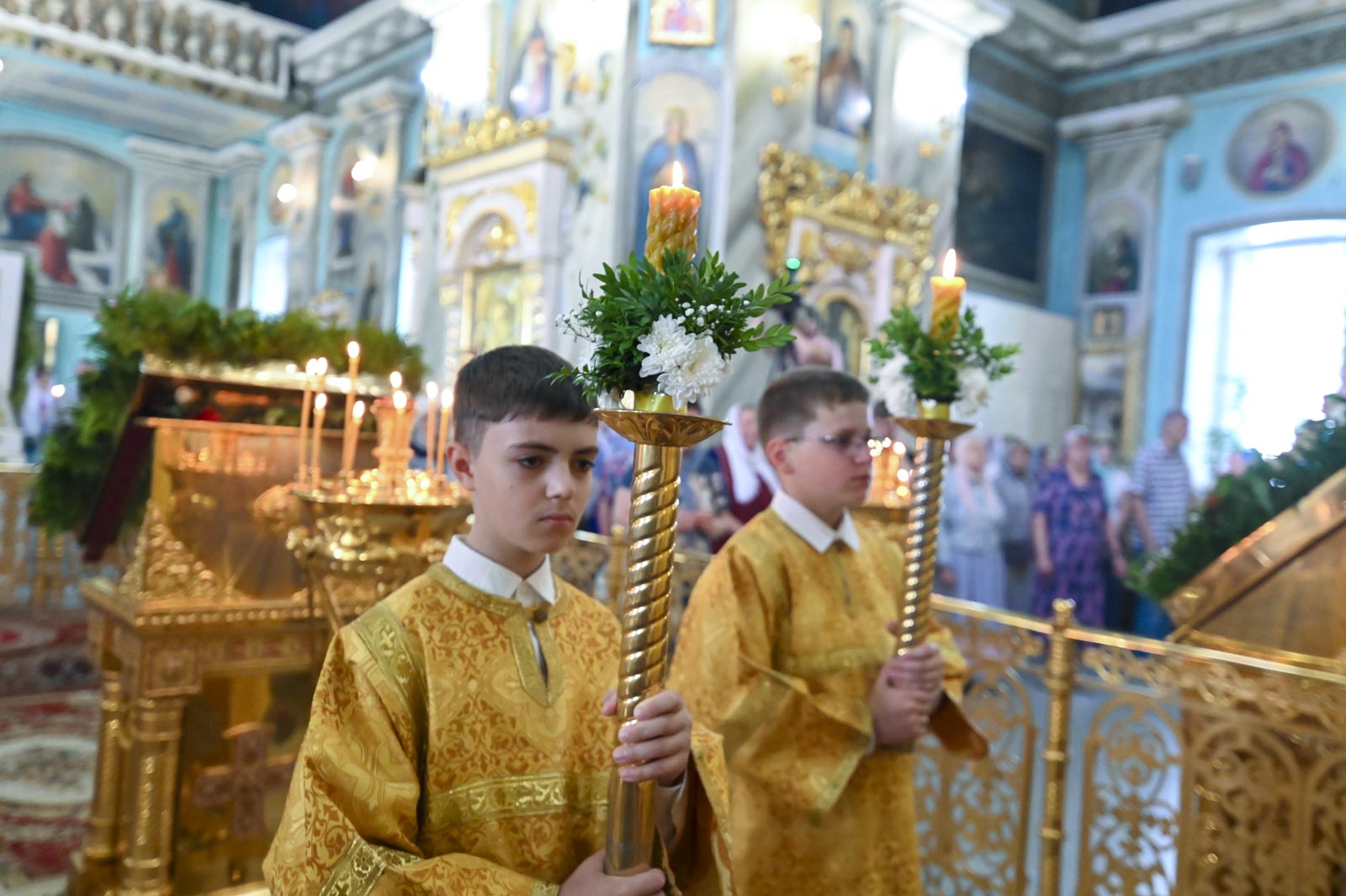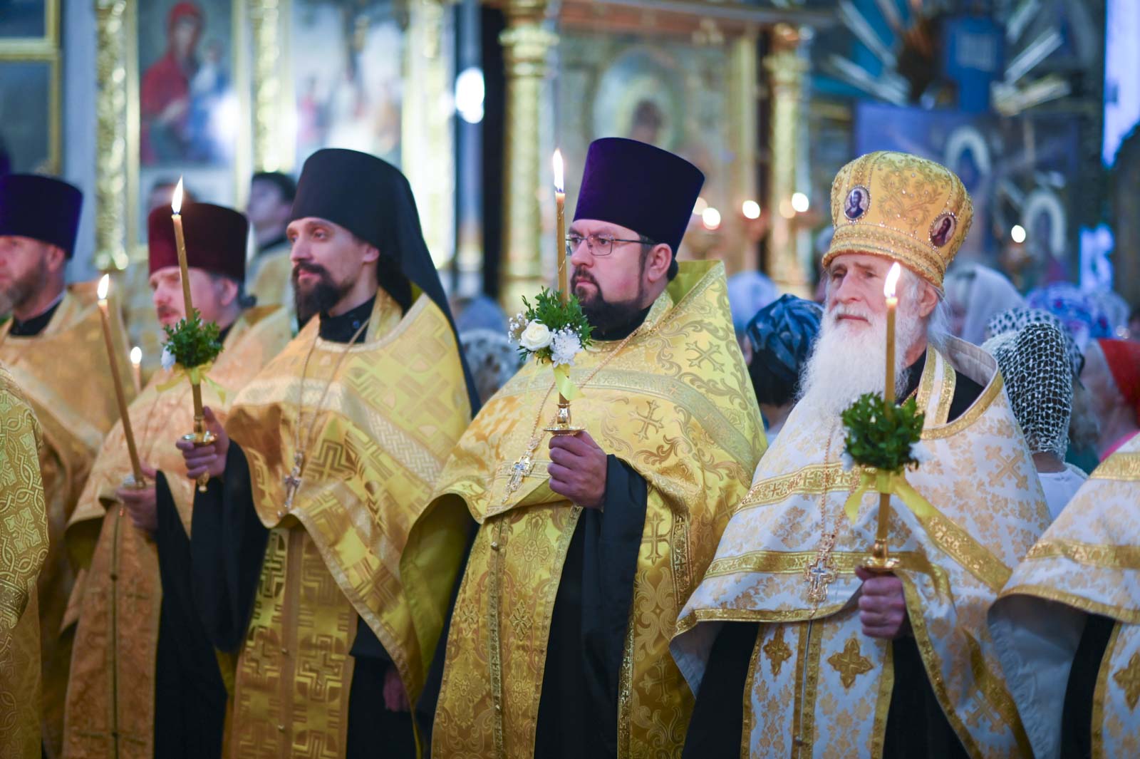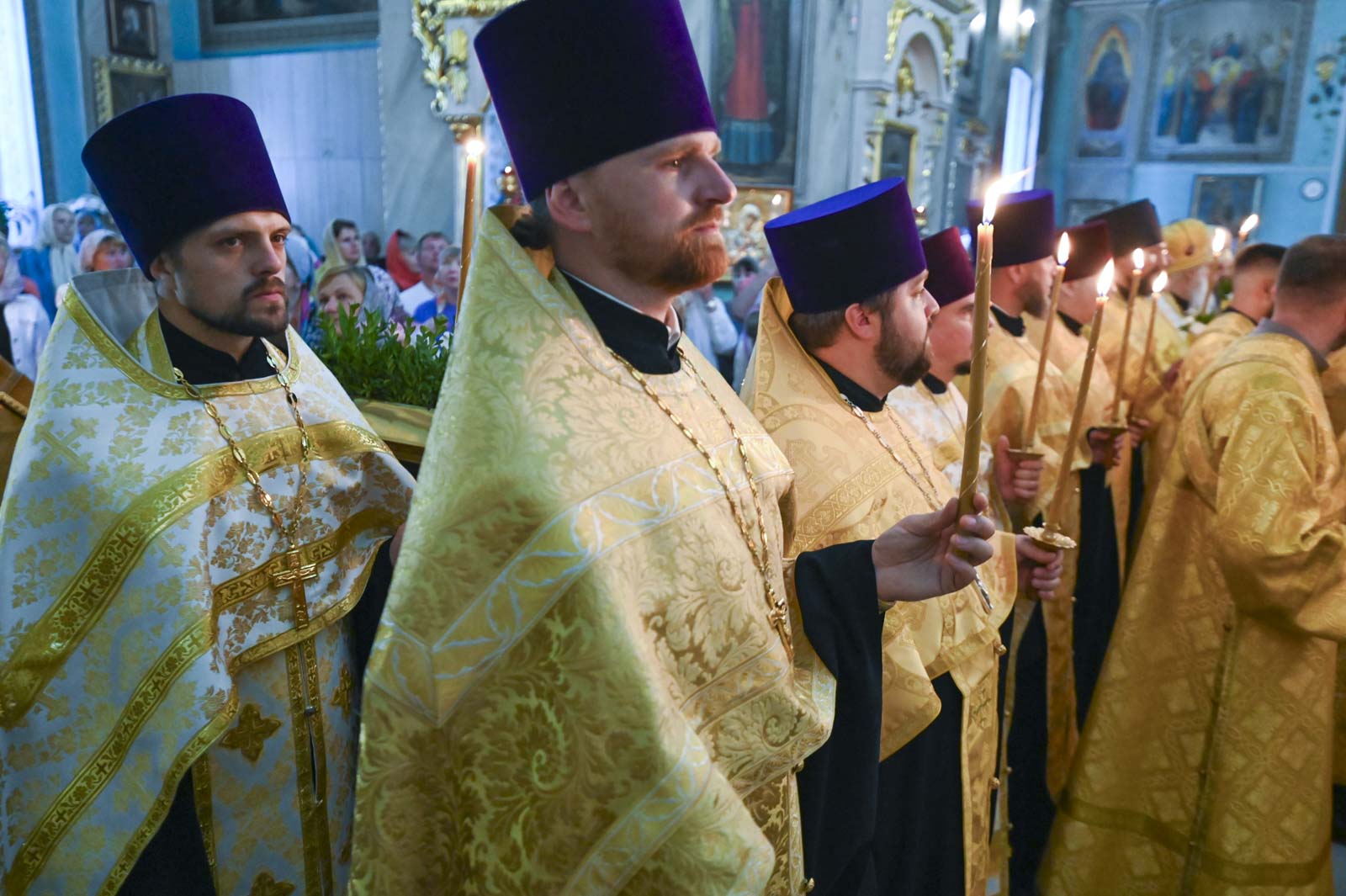Архипастырям сослужили ректор Минской духовной академии архимандрит Афанасий (Соколов), благочинный 4-го Минского городского церковного округа, председатель Синодального отдела по сотрудничеству со светскими учреждениями образования, председатель приходского совета прихода в честь Всех святых города Минска протоиерей Федор Повный, благочинный Гомельского городского округа протоиерей Игорь Ольшанов, а также клирики кафедрального собора и духовенство епархии.