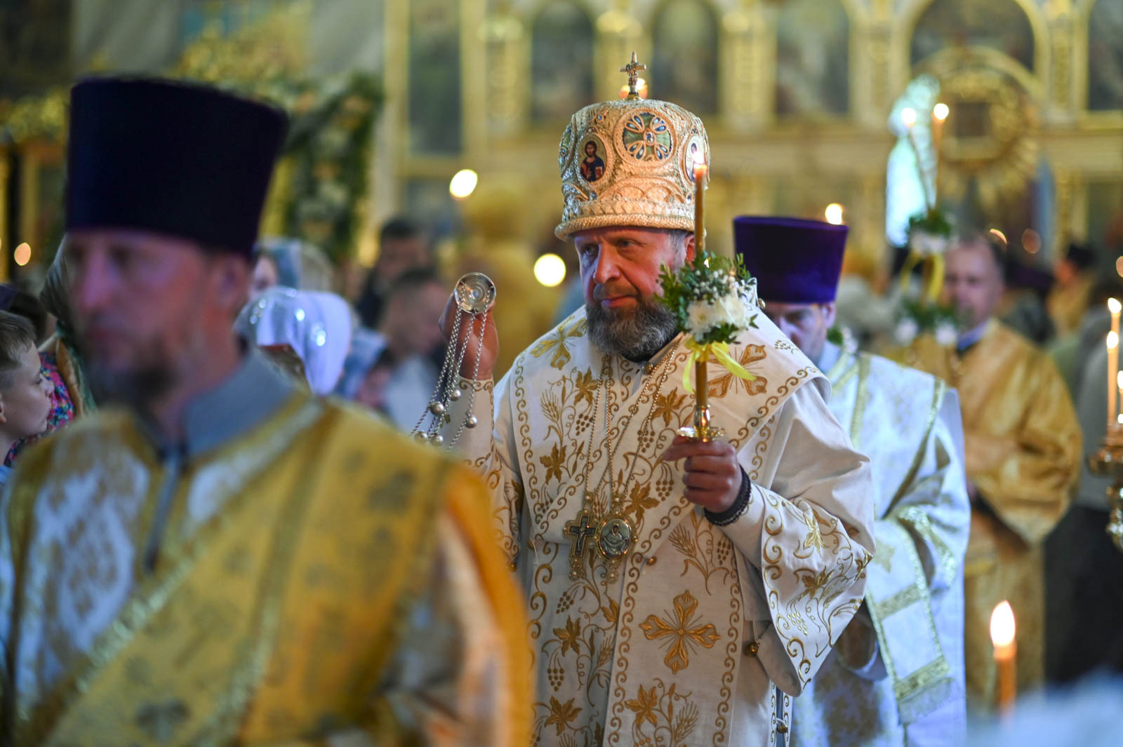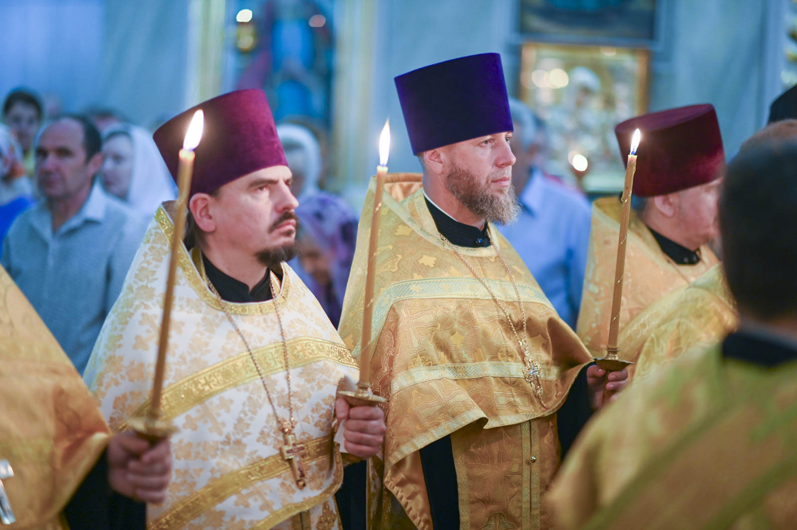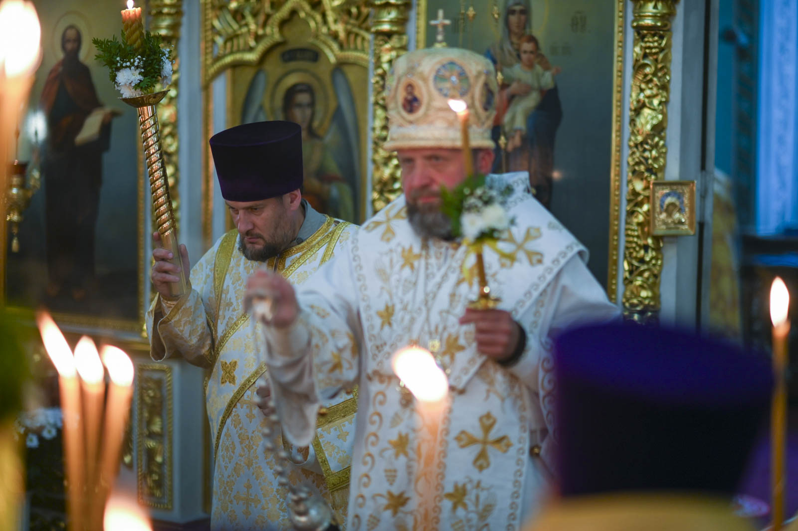Всенощное бдение 5 июля 2025г., в канун дня памяти священномученика Митрофана (Краснопольского) в Петро-Павловском кафедральном соборе г.Гомеля совершил архиепископ Гомельский и Жлобинский Стефан и Порфирий, епископ Лидский и Сморгонский.