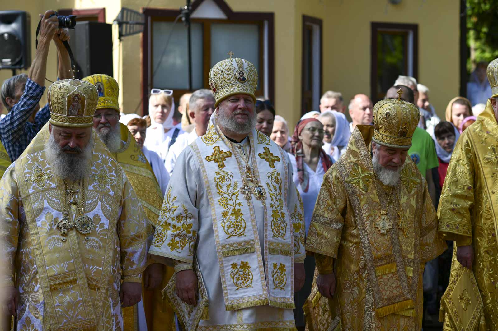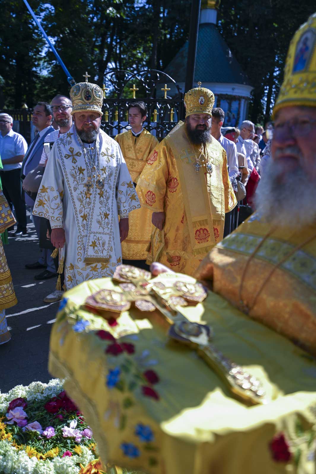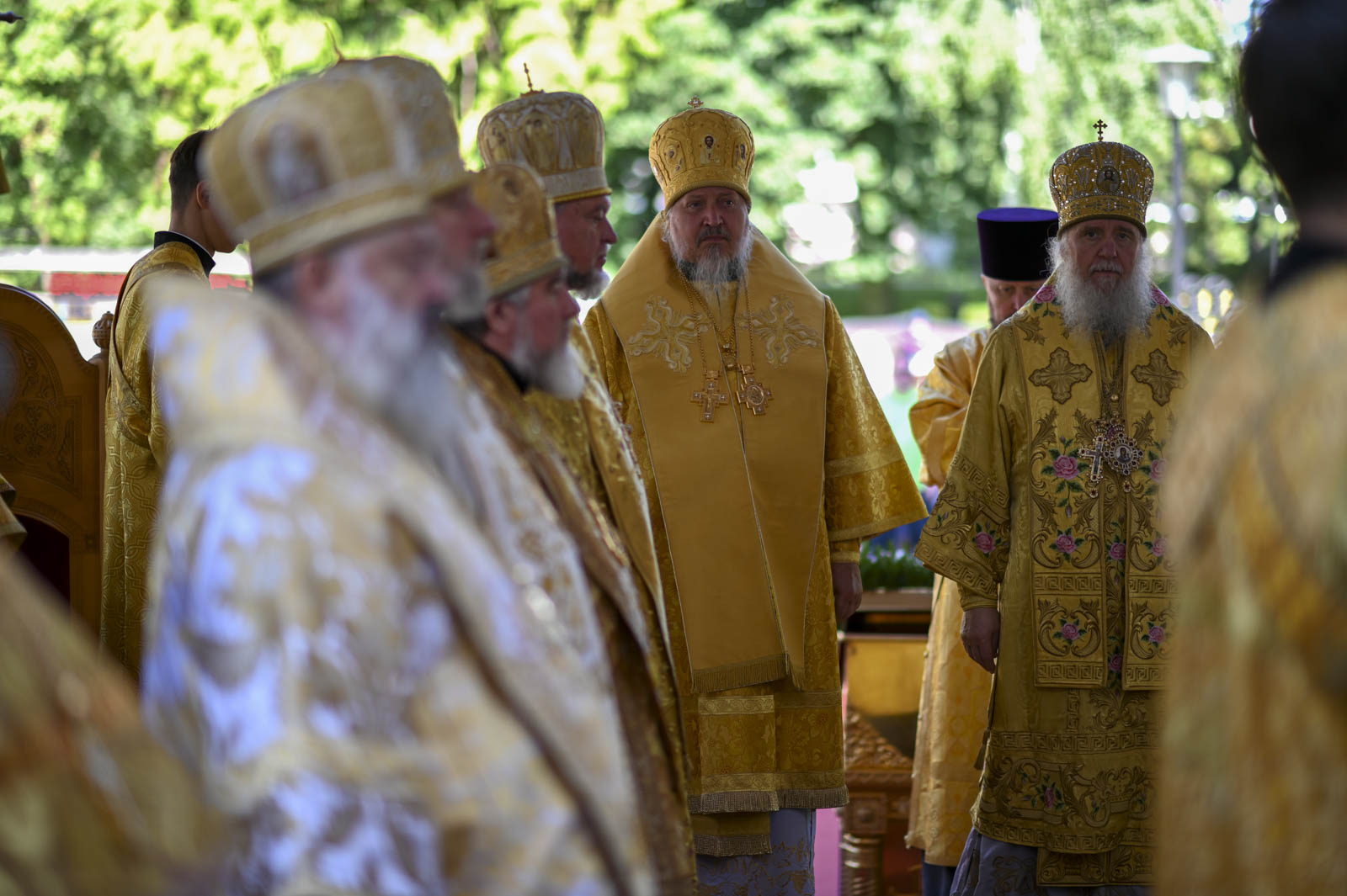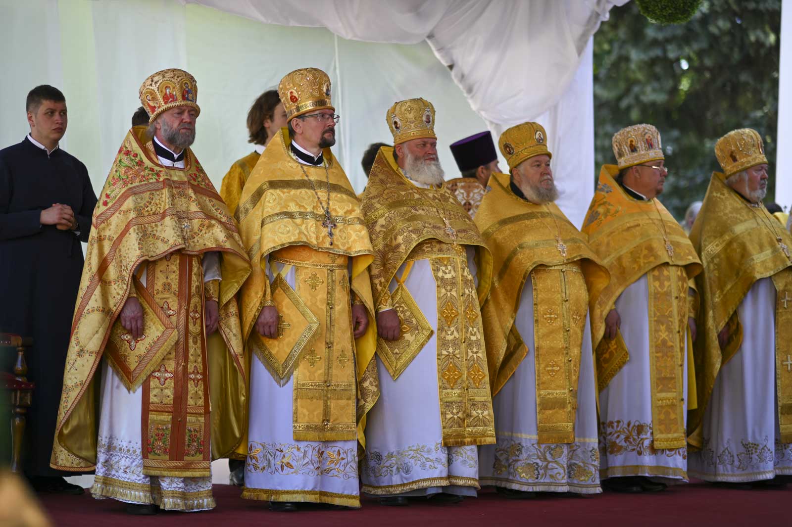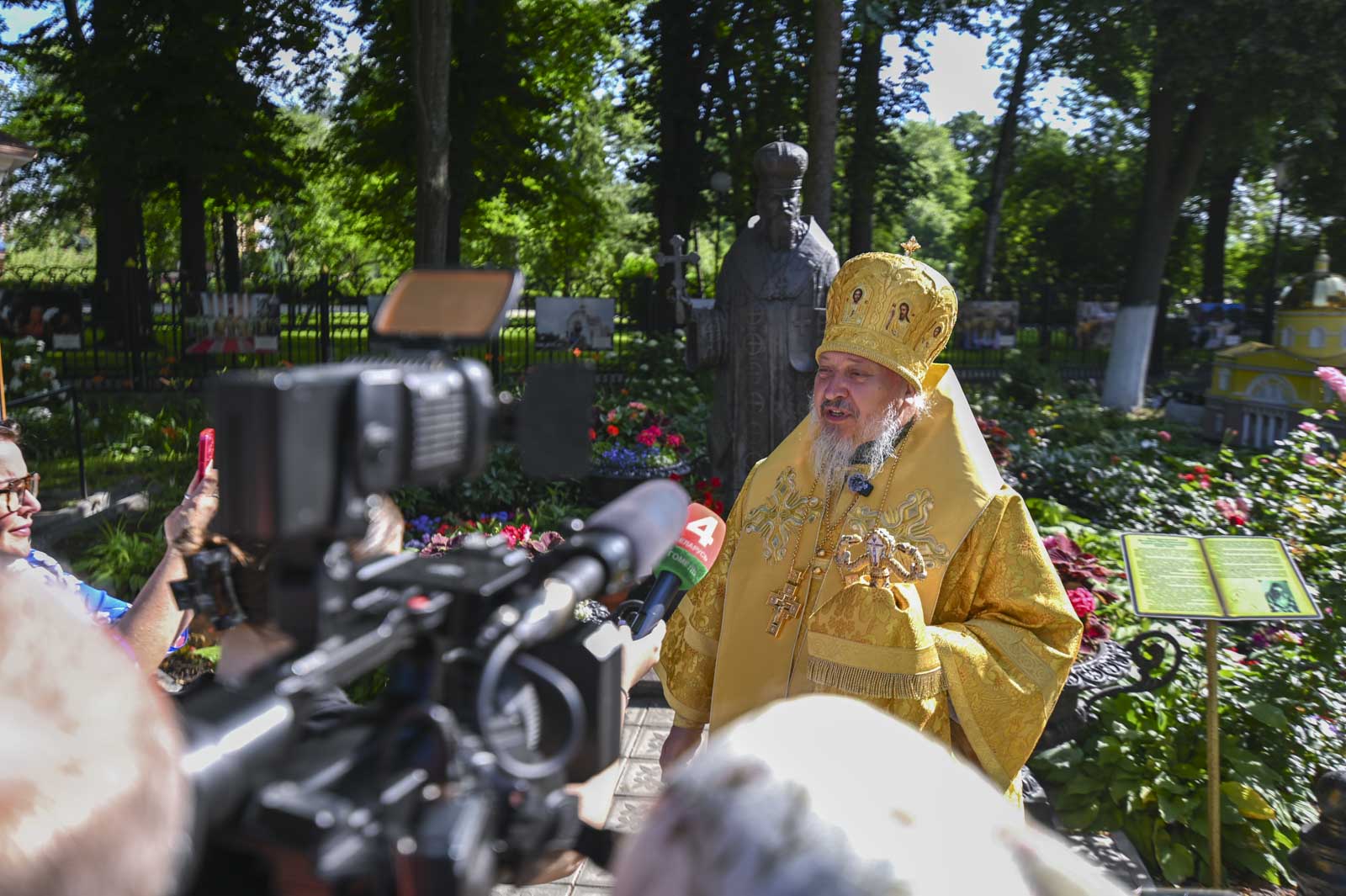По завершении богослужения архипастыри и духовенство возложили цветы у памятника священномученику Митрофану Краснопольскому, установленного на территории Петро-Павловского кафедрального собора.