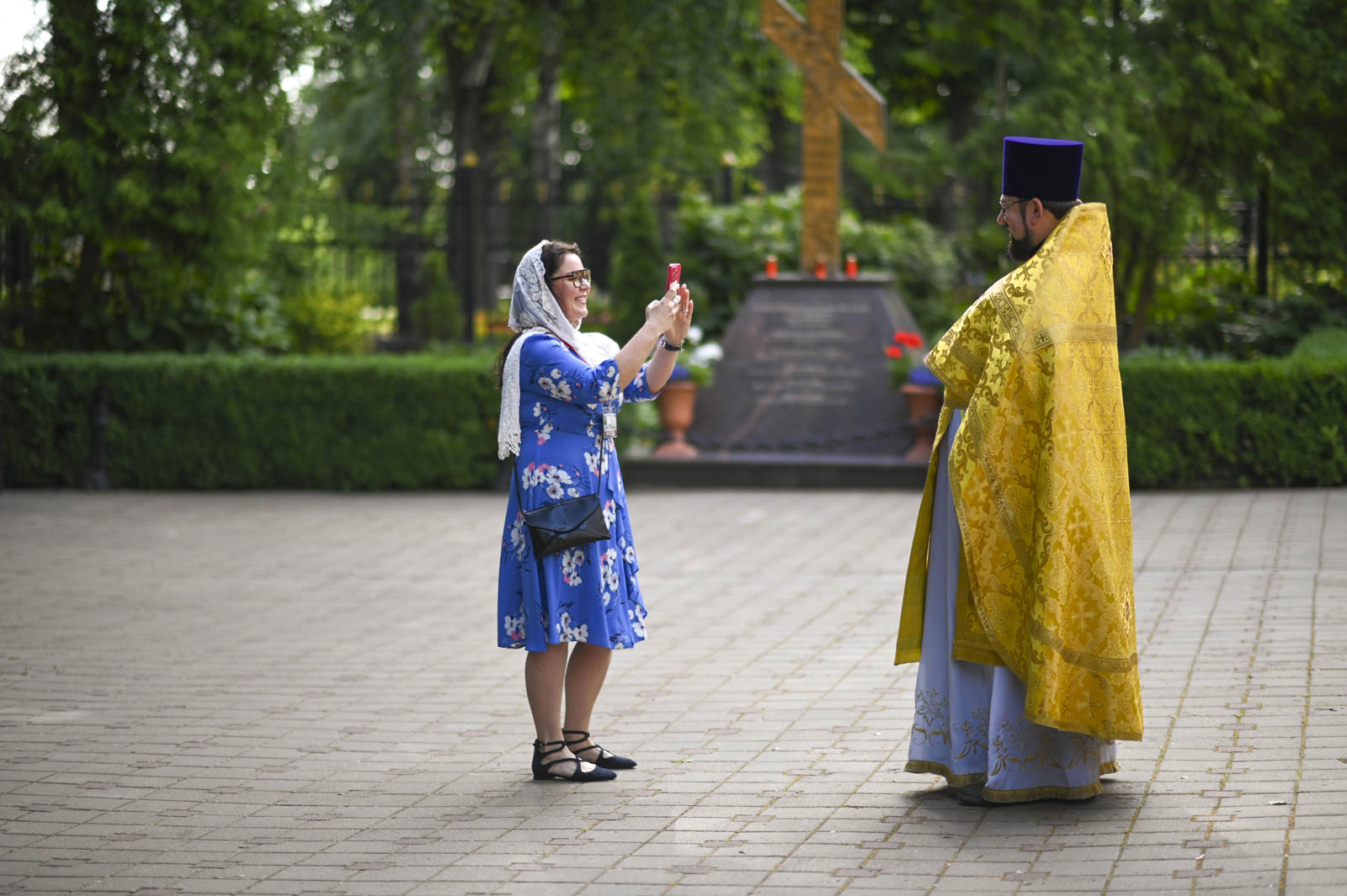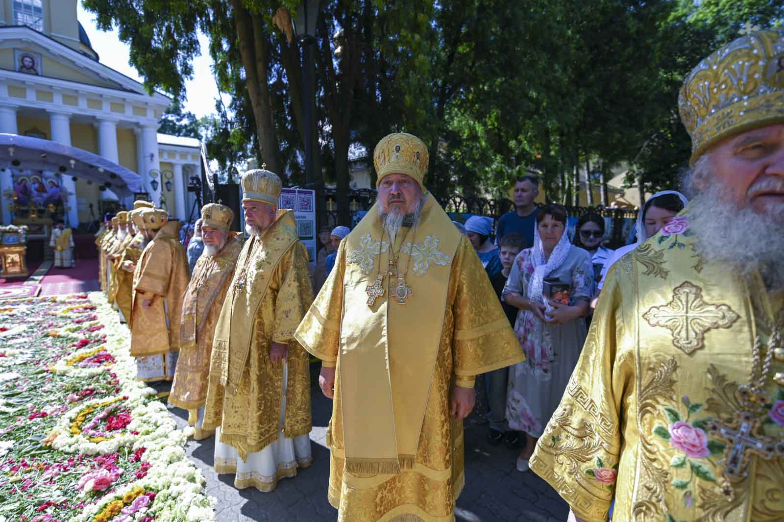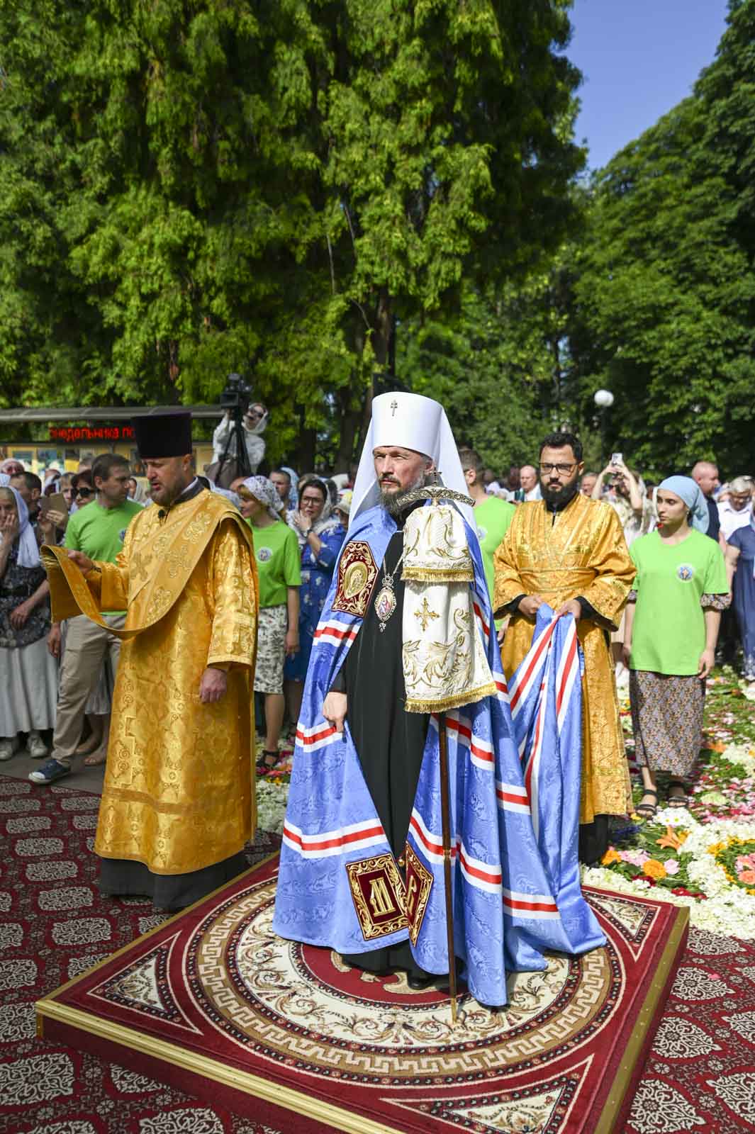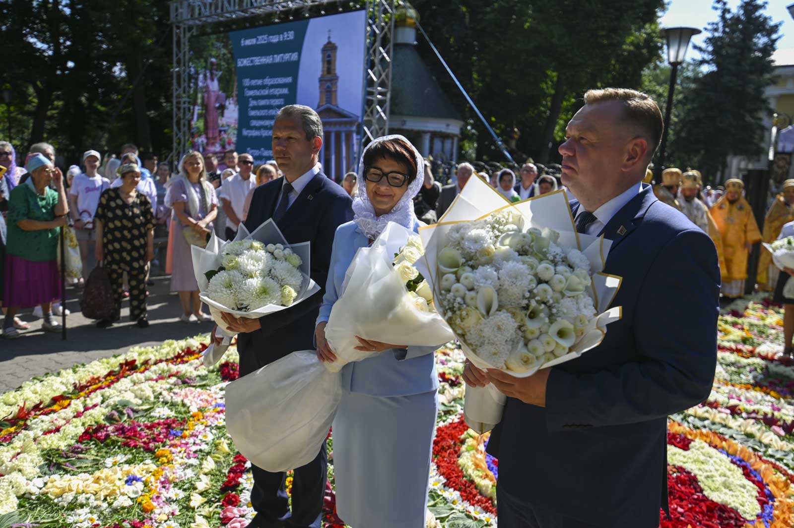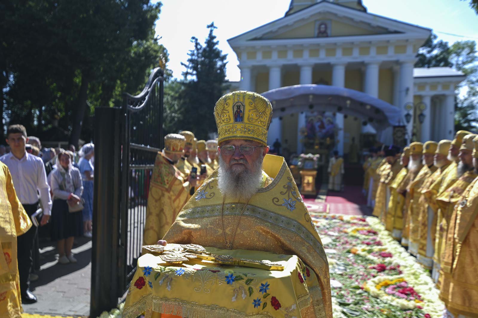 По завершении богослужения архипастыри и духовенство возложили цветы у памятника священномученику Митрофану Краснопольскому, установленного на территории Петро-Павловского кафедрального собора.