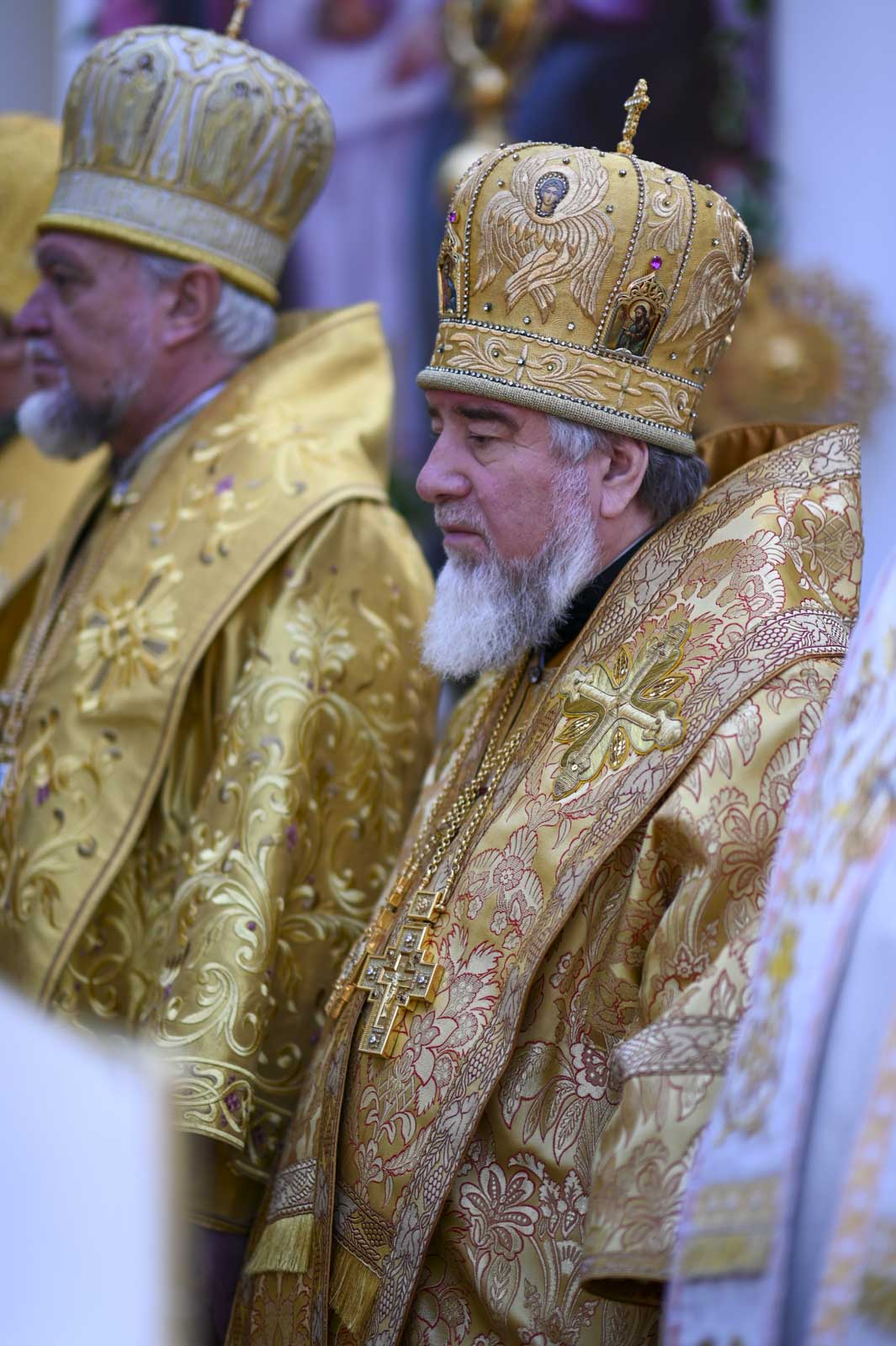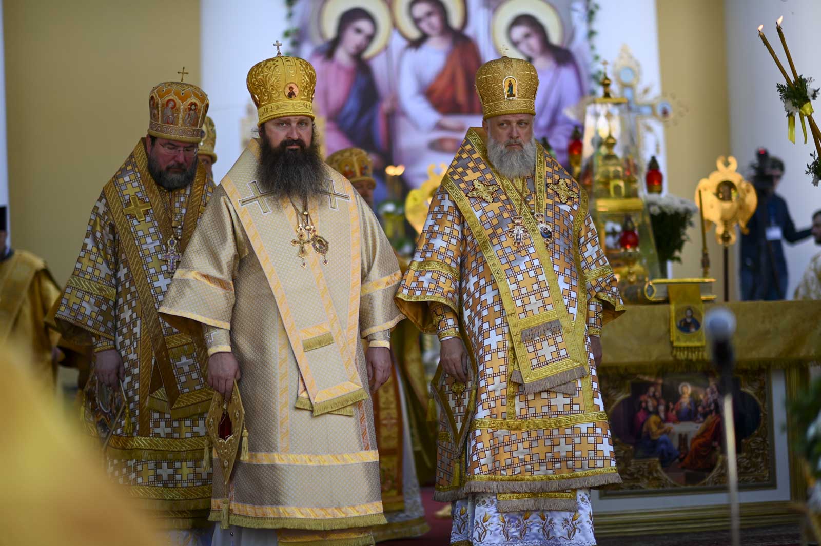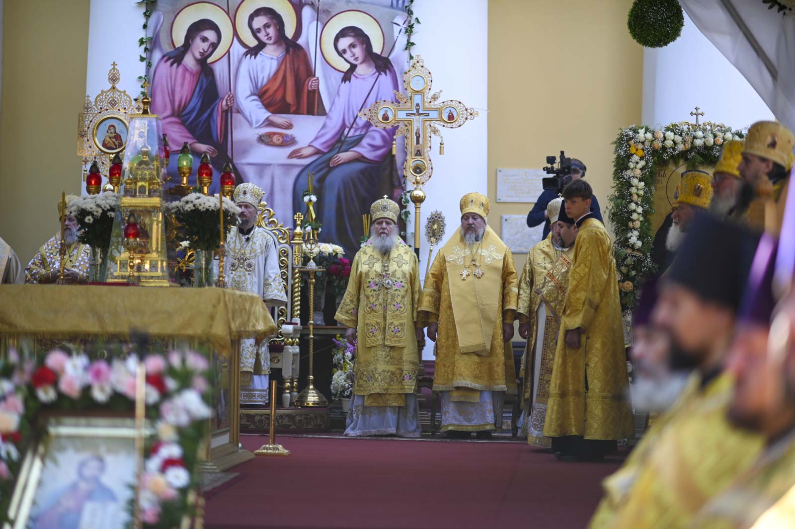 Его Высокопреосвященству сослужили Высокопреосвященнейший Димитрий, архиепископ Витебский и Оршанский;  Высокопреосвященнейший Софроний, архиепископ Могилёвский и Мстиславский;  Высокопреосвященнейший Иоанн, архиепископ Брестский и Кобринский;  Высокопреосвященнейший Стефан, архиепископ Гомельский и Жлобинский;  Высокопреосвященнейший Антоний, архиепископ Гродненский и Волковысский;  Преосвященнейший Серафим, епископ Бобруйский и Быховский;  Преосвященнейший Леонид, епископ Туровский и Мозырский;  Преосвященнейший Порфирий, епископ Лидский и Сморгонский;  Преосвященнейший Владимир, епископ Клинцовский и Трубчевский;  Преосвященнейший Игнатий, епископ Полоцкий и Глубокский; Преосвященнейший Амвросий, епископ Борисовский и Марьиногорский; Преосвященнейший Георгий, епископ Пинский и Лунинецкий; Преосвященнейший Авксентий, епископ Несвижский.