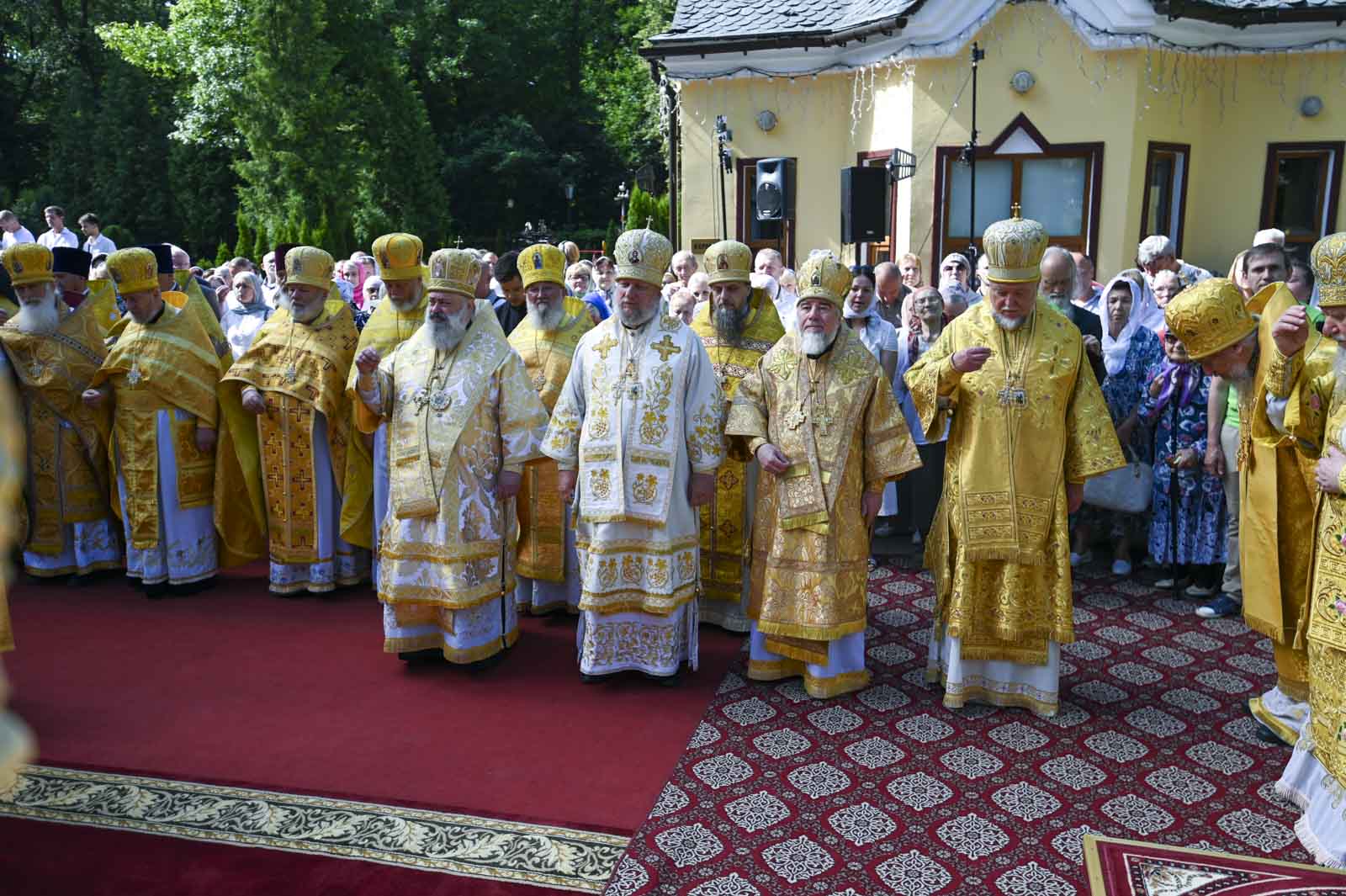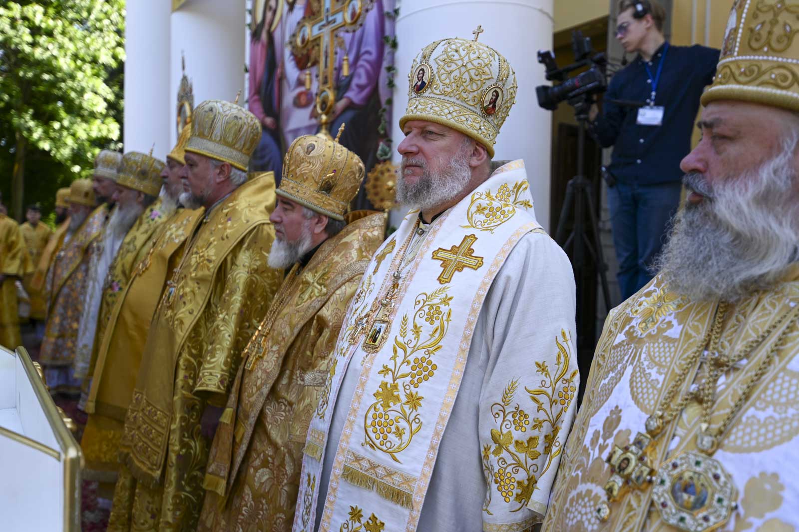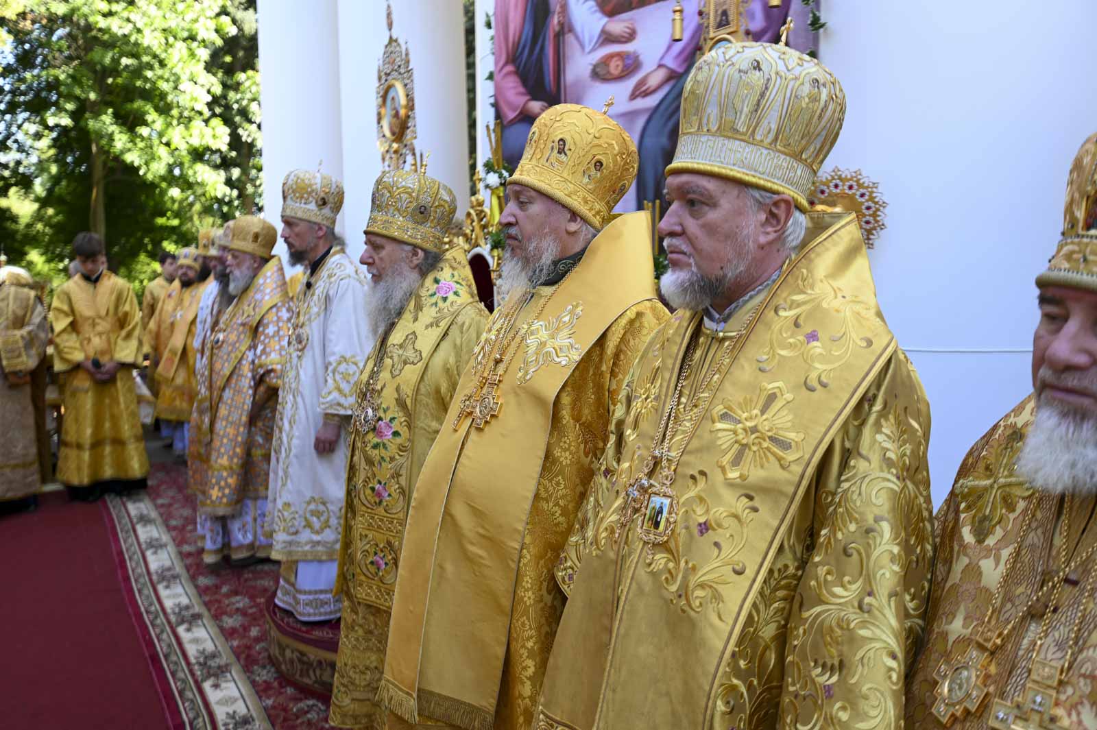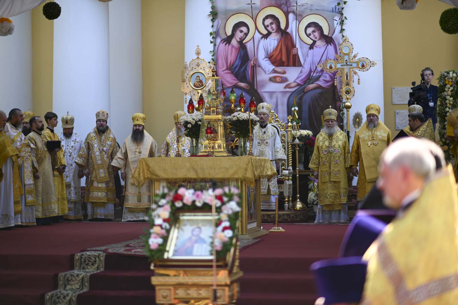 Его Высокопреосвященству сослужили Высокопреосвященнейший Димитрий, архиепископ Витебский и Оршанский;  Высокопреосвященнейший Софроний, архиепископ Могилёвский и Мстиславский;  Высокопреосвященнейший Иоанн, архиепископ Брестский и Кобринский;  Высокопреосвященнейший Стефан, архиепископ Гомельский и Жлобинский;  Высокопреосвященнейший Антоний, архиепископ Гродненский и Волковысский;  Преосвященнейший Серафим, епископ Бобруйский и Быховский;  Преосвященнейший Леонид, епископ Туровский и Мозырский;  Преосвященнейший Порфирий, епископ Лидский и Сморгонский;  Преосвященнейший Владимир, епископ Клинцовский и Трубчевский;  Преосвященнейший Игнатий, епископ Полоцкий и Глубокский; Преосвященнейший Амвросий, епископ Борисовский и Марьиногорский; Преосвященнейший Георгий, епископ Пинский и Лунинецкий; Преосвященнейший Авксентий, епископ Несвижский.