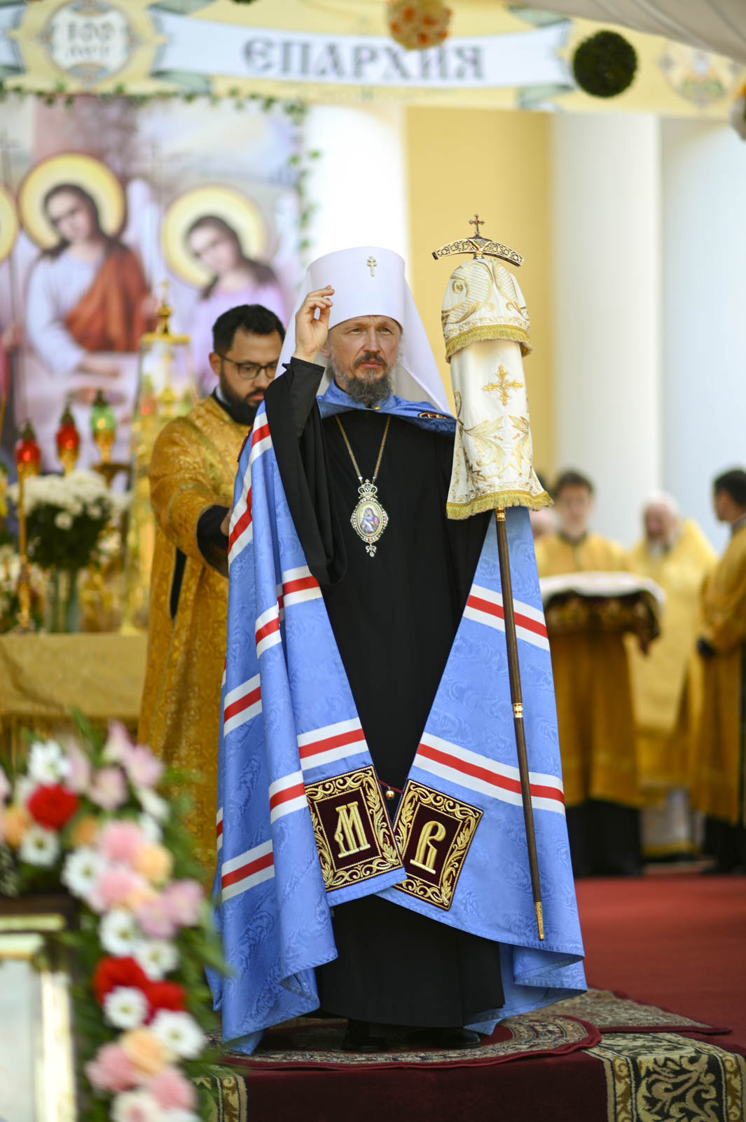 Архипастырь подчеркнул, что торжественное богослужение посвящено сразу двум важным датам: 100-летию образования Гомельской епархии и 35-летию её возрождения, когда на кафедру был поставлен архиепископ Аристарх.