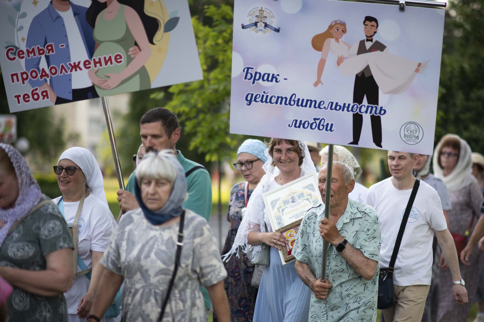 Шествие началось у храма святого благоверного князя Александра Невского и завершилось у храма святых Петра и Февронии Муромских.