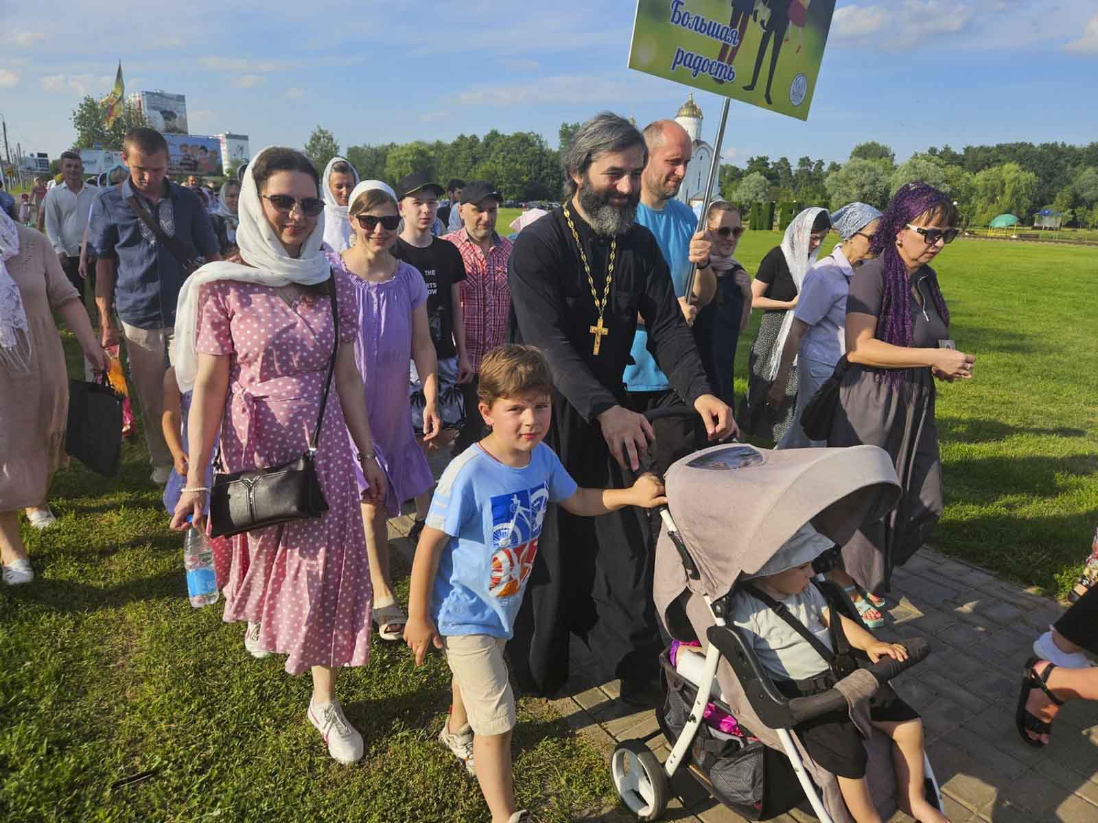 Исключительным моментом стало то, что священнослужители пришли на крестный ход со своими семьями, тем самым являя пример проявления семейных традиций. Отрадно было видеть, как шагают рядом дети, внуки, несмотря на жаркую погоду и протяженный маршрут от прихода храма святого благоверного князя Александра Невского до прихода храма святых благоверных князей Петра и Февронии Муромских. Младшие участники крестного хода с особым усердием несли детские хоругви, проявляя серьезное и ответственное отношение к священному событию.