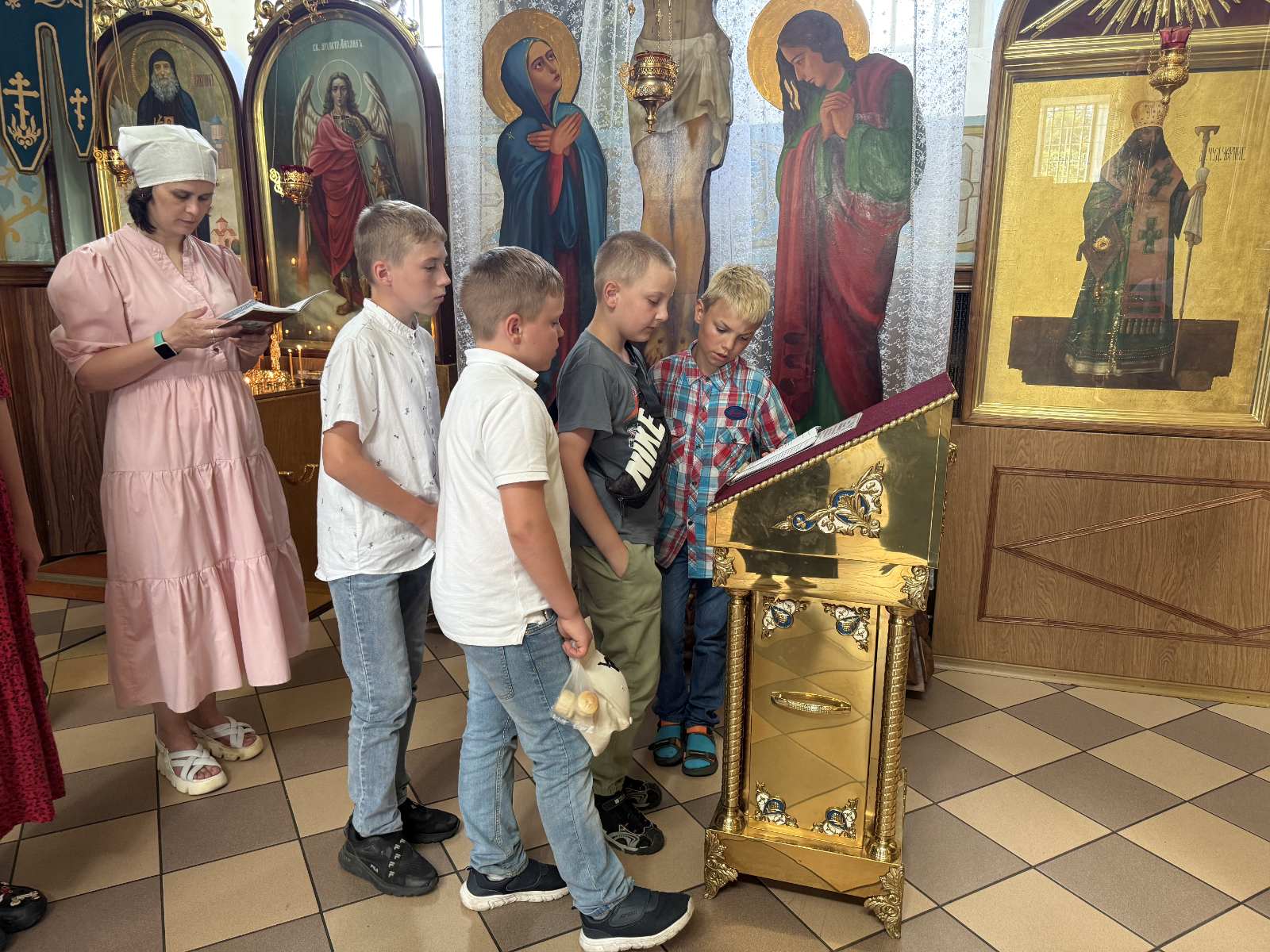 В монастыре паломники приложились к раке с мощами святого Иоанна, а дети с трепетом и вниманием по очереди прочитали акафист, воздавая молитву небесному покровителю своей земли.