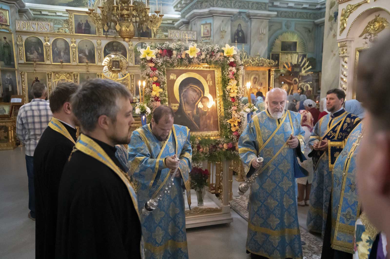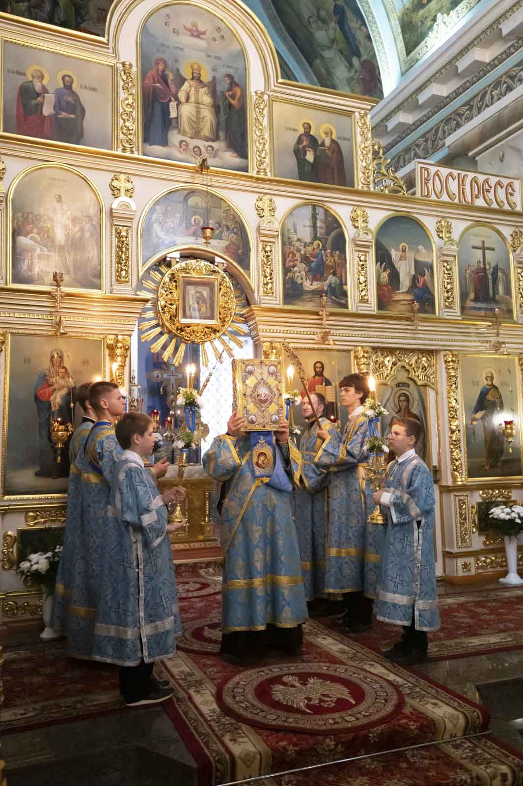 Всенощное бдение в канун праздника Казанской иконы Божией Матери 20 июля 2025г. Высокопреосвященнейший Стефан, архиепископ Гомельский и Жлобинский, совершил в Петро-Павловском кафедральном соборе г.Гомеля.