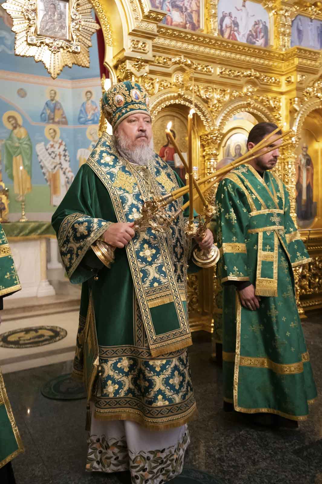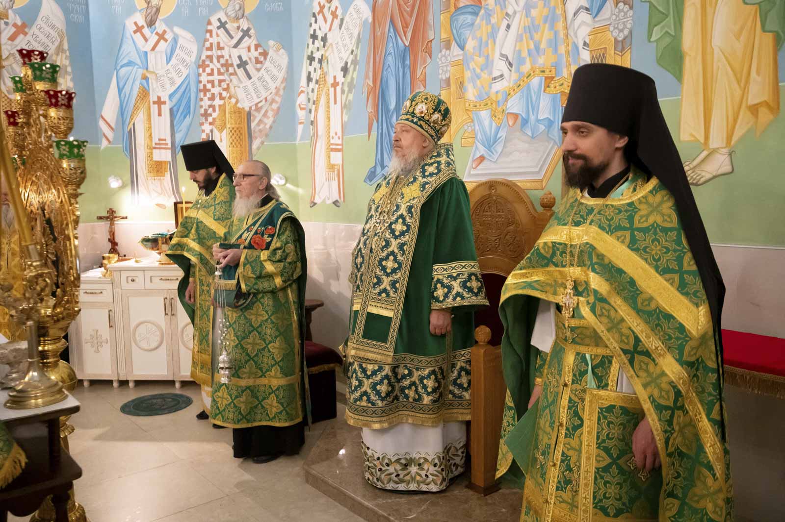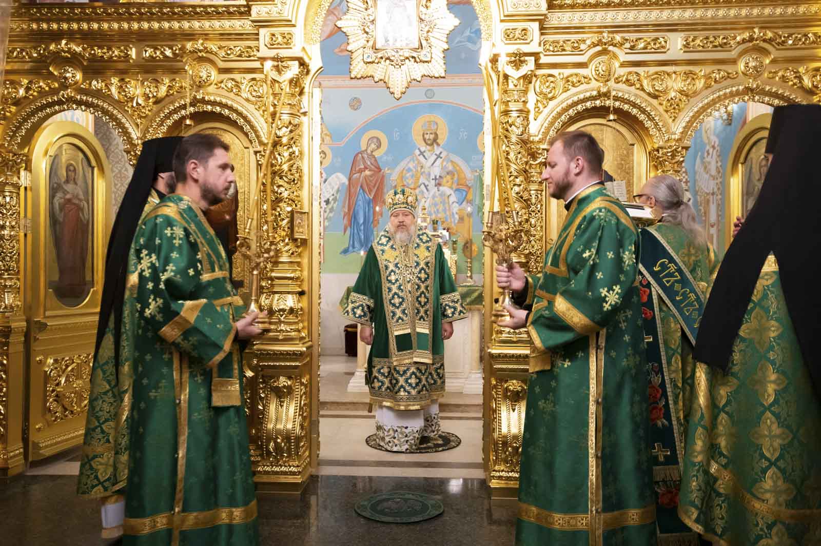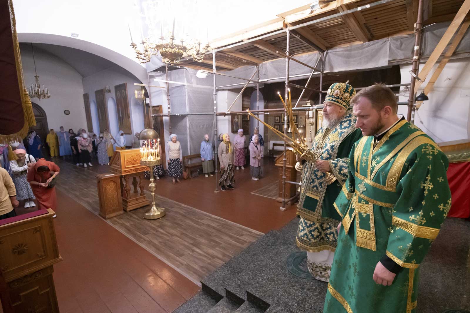 Его Высокопреосвященству сослужили: благочинный монастырей Гомельской епархии игумен Феодорит (Золотарев) и братия монастыря в священном сане.