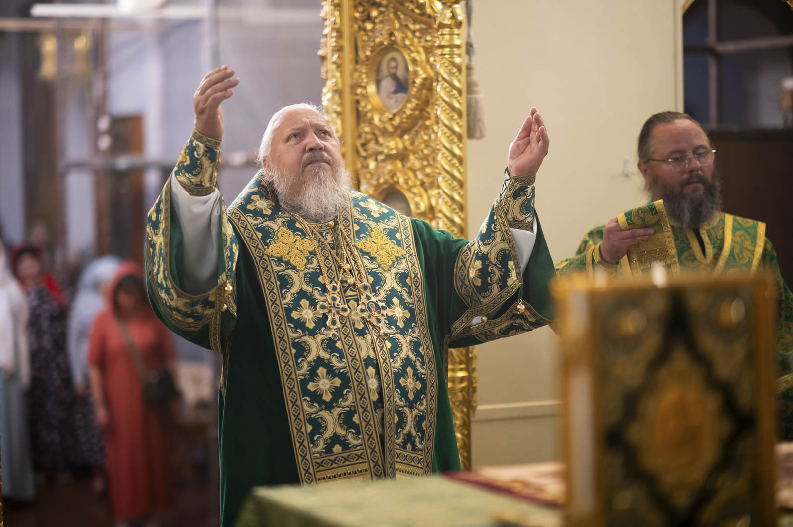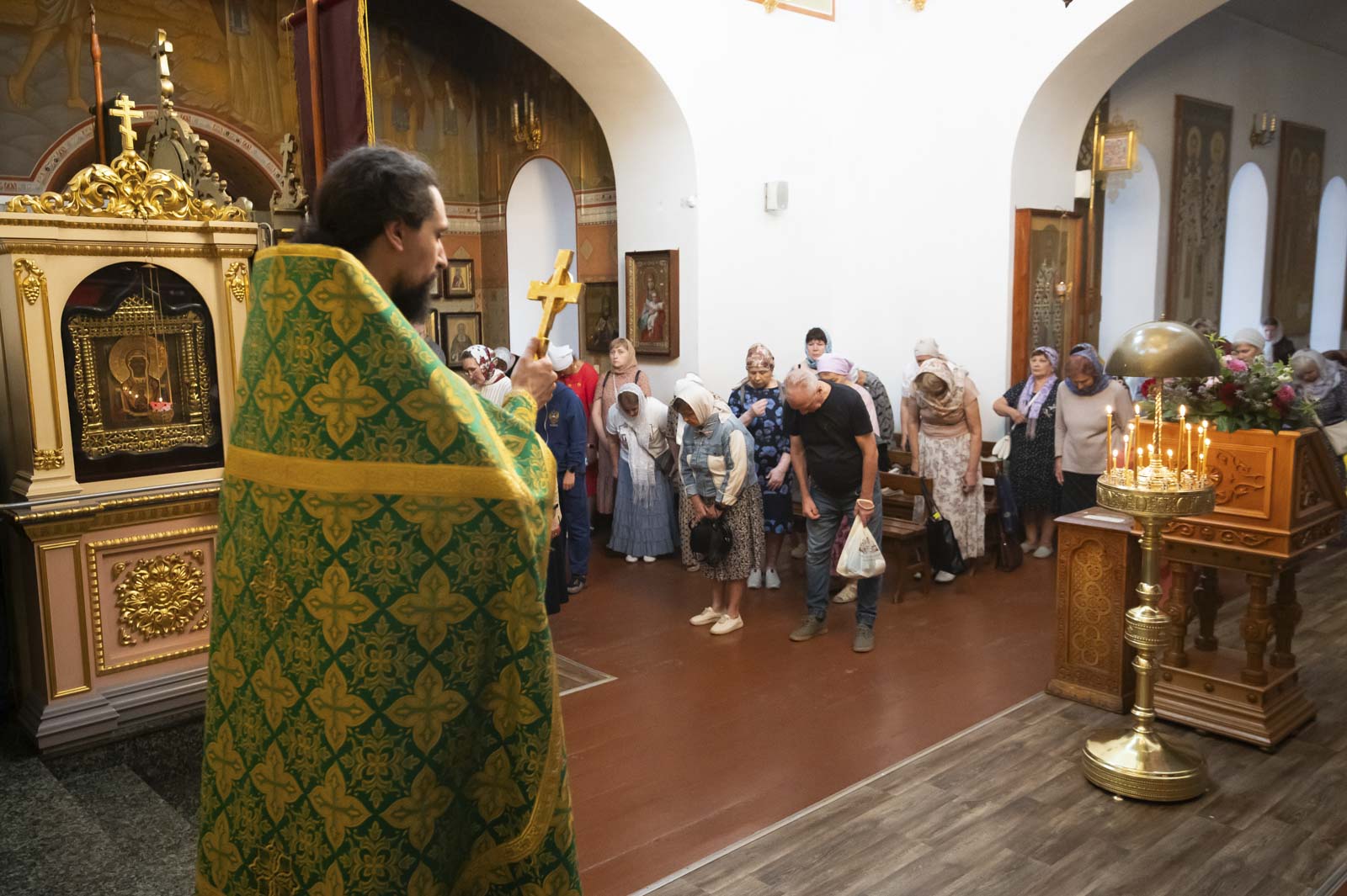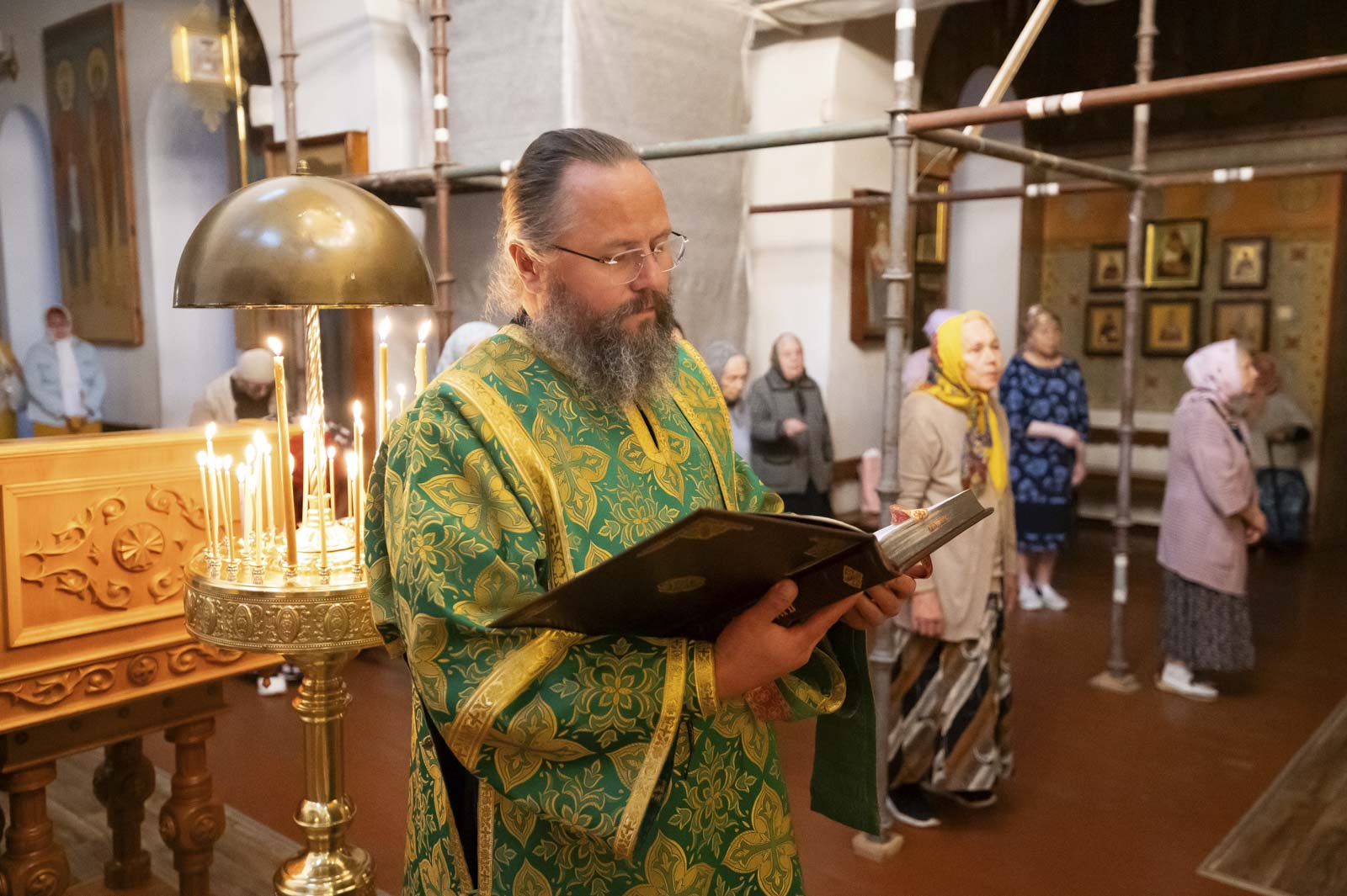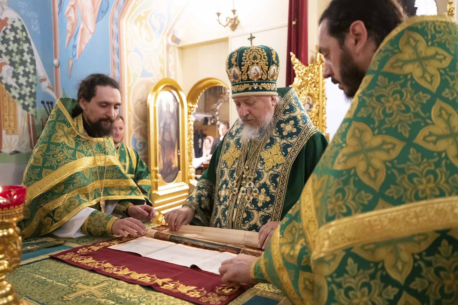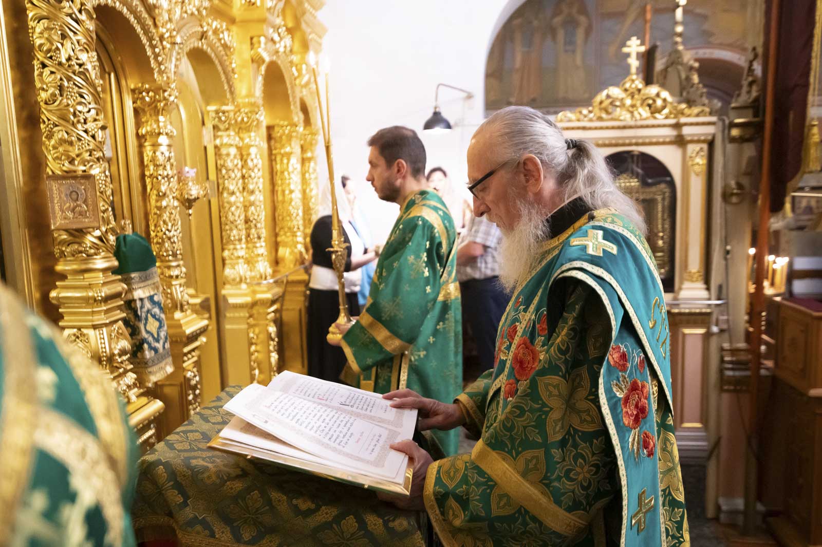 Его Высокопреосвященству сослужили: благочинный монастырей Гомельской епархии игумен Феодорит (Золотарев) и братия монастыря в священном сане.