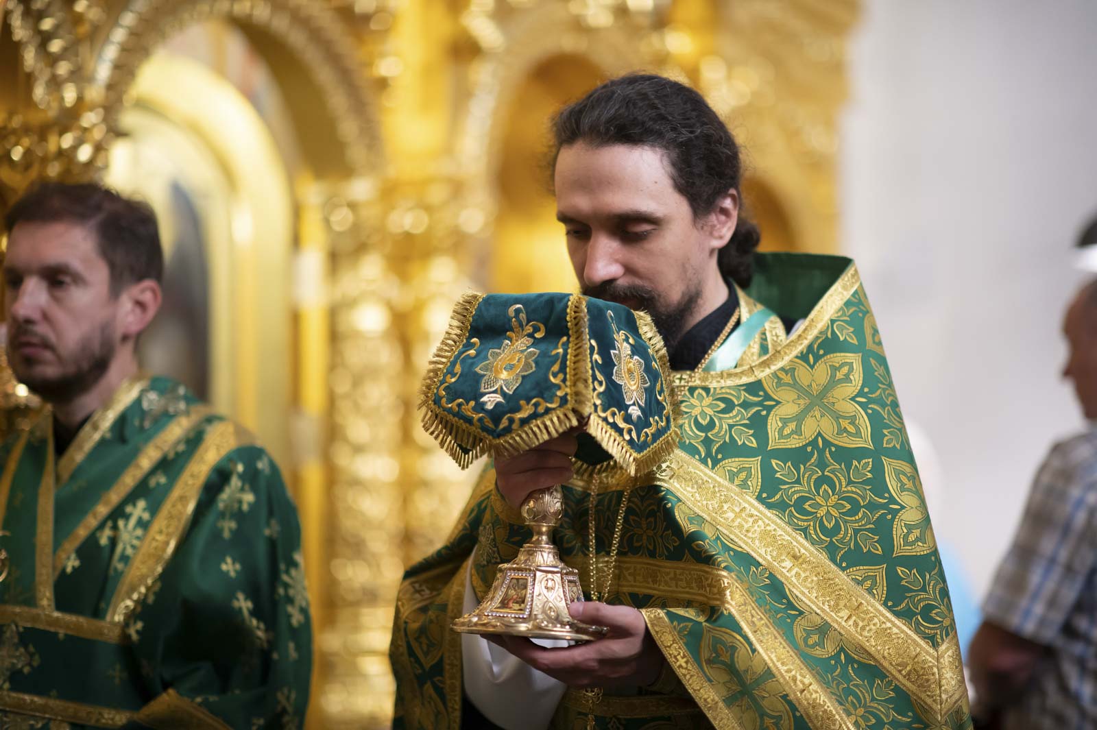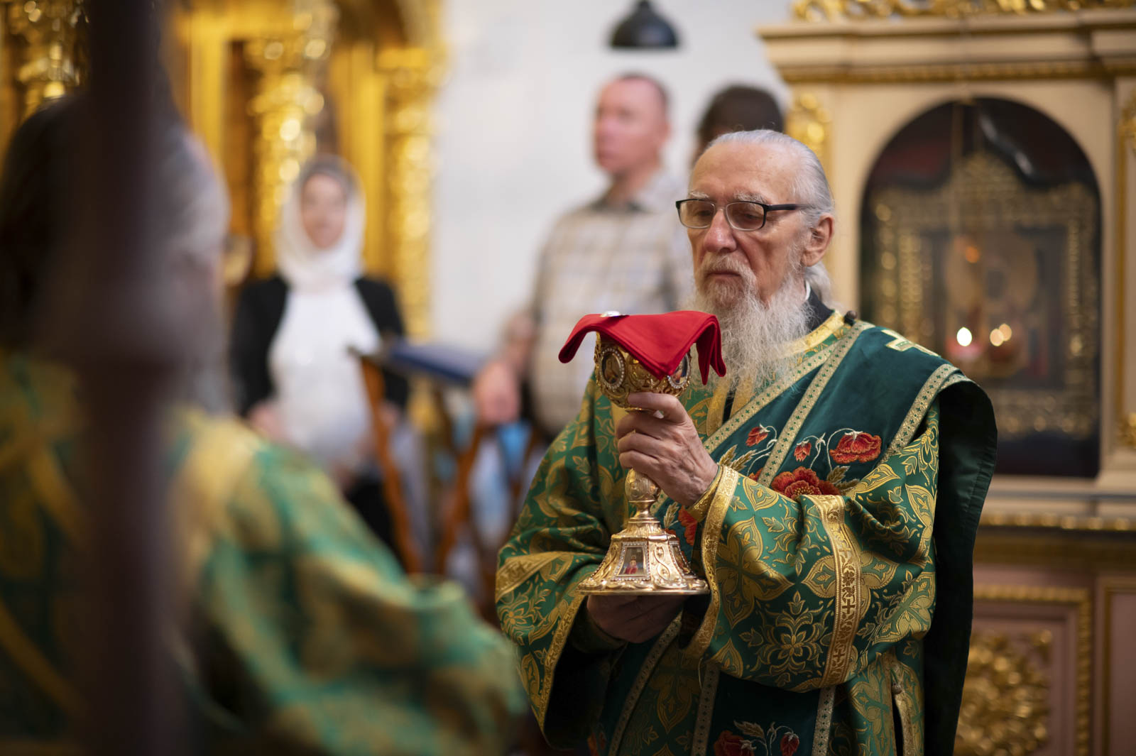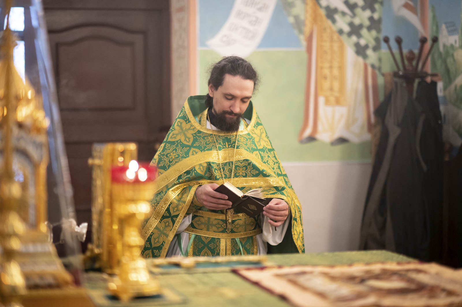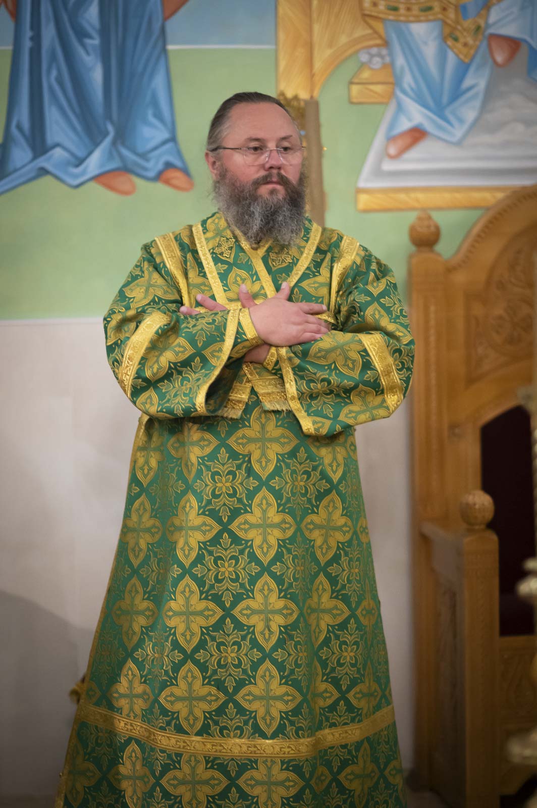 Его Высокопреосвященству сослужили: благочинный монастырей Гомельской епархии игумен Феодорит (Золотарев) и братия монастыря в священном сане.