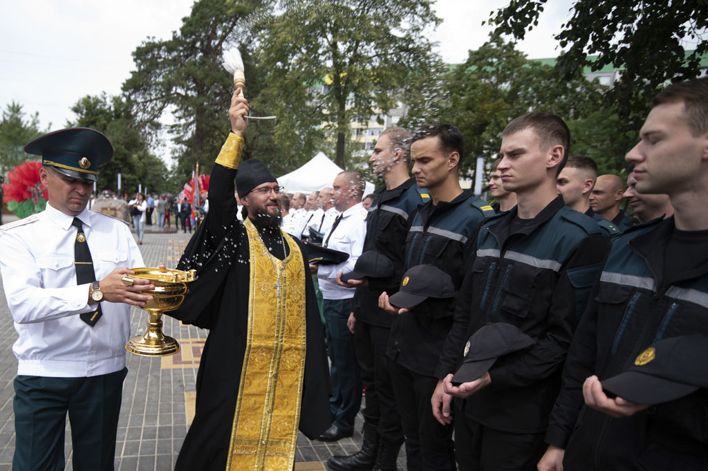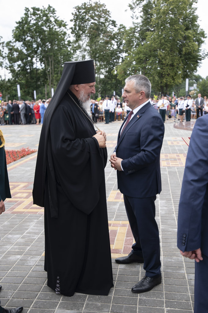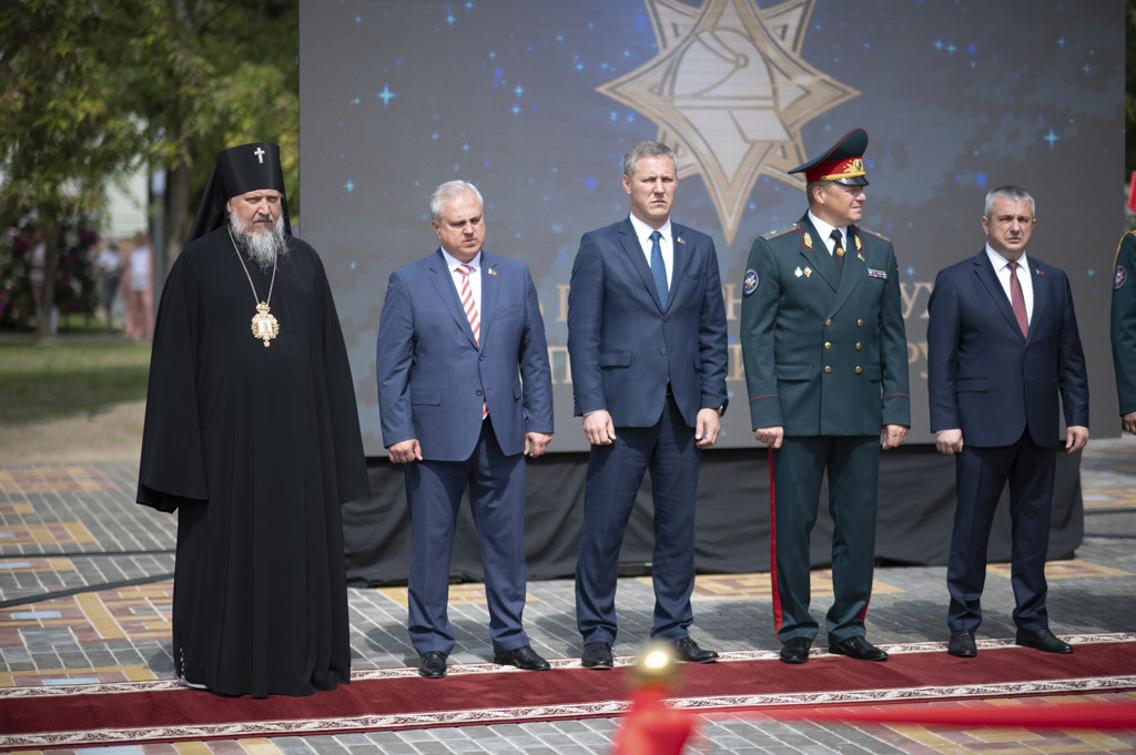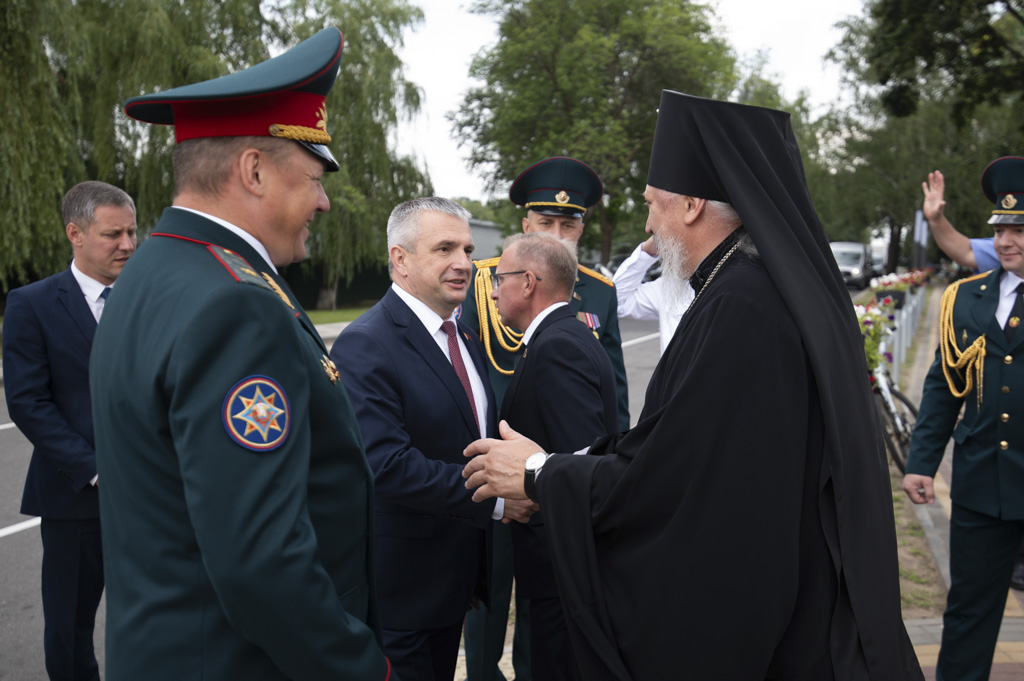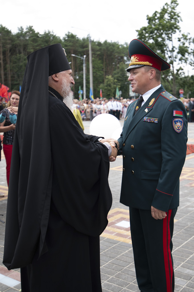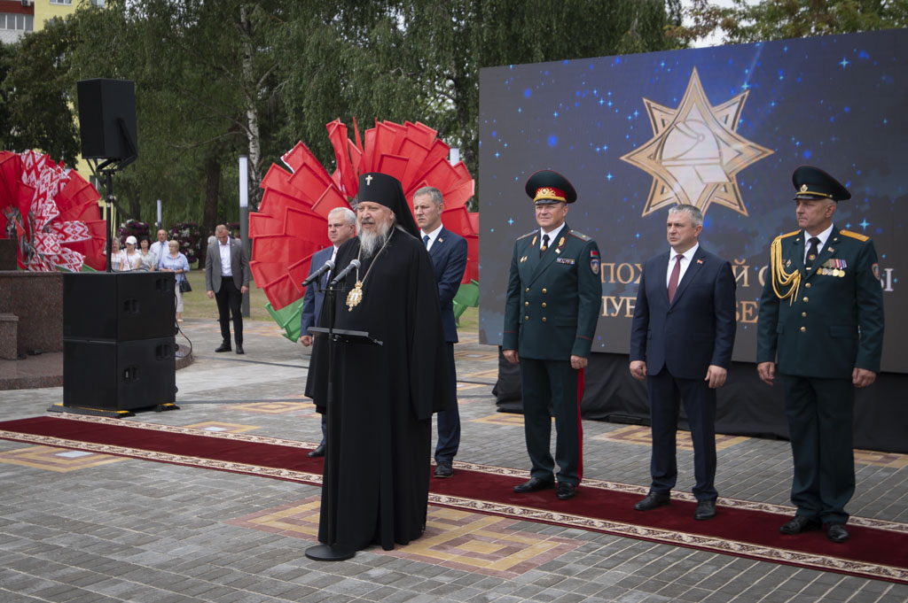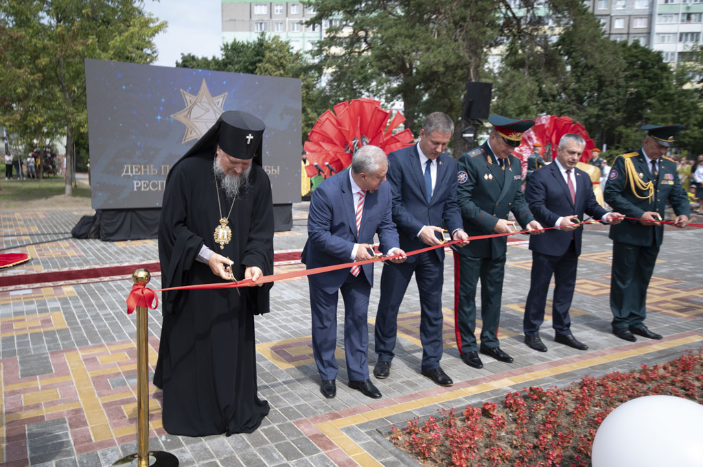 Архиепископ Гомельский и Жлобинский Стефан, обратился к участникам торжества со словами: «Сегодня, вспоминая героев-спасателей, которые стояли на защите жизни человечества, мы должны не забыть тех, кто трудился ради будущего нашей страны». Так же состоялось освящение монумента и сквера, которое совершил иерей Станислав Смоляк.