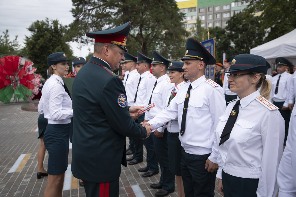 На мероприятии присутствовали министр по чрезвычайным ситуациям генерал‑майор внутренней службы Вадим Синявский, помощник Президента — инспектор по Гомельской области Руслан Пархамович, губернатор области Иван Крупко, мэр Гомеля Владимир Привалов, а также ветераны МЧС, сотрудники и представители власти.