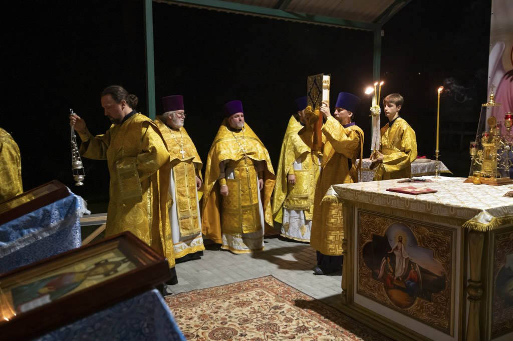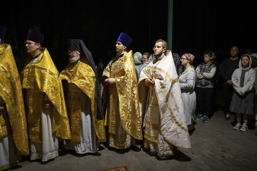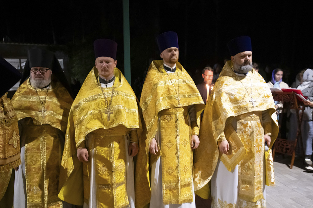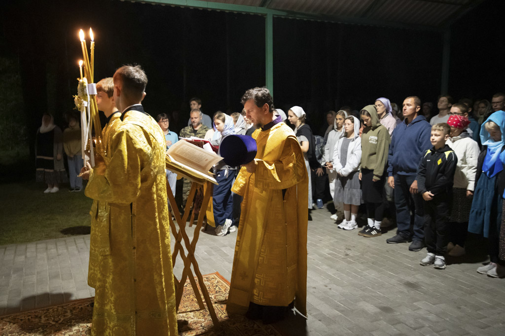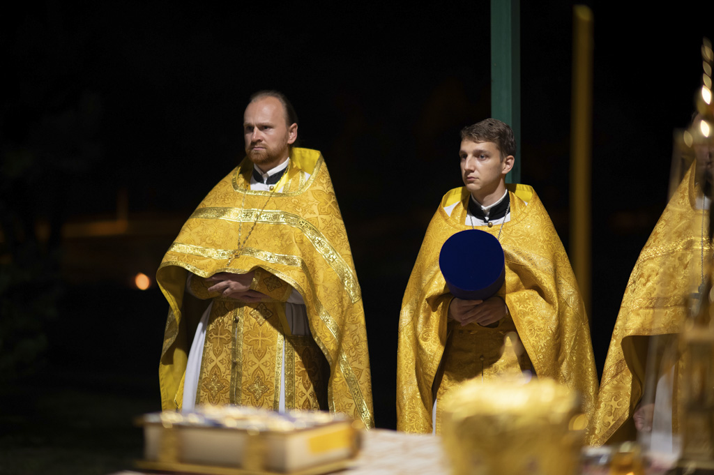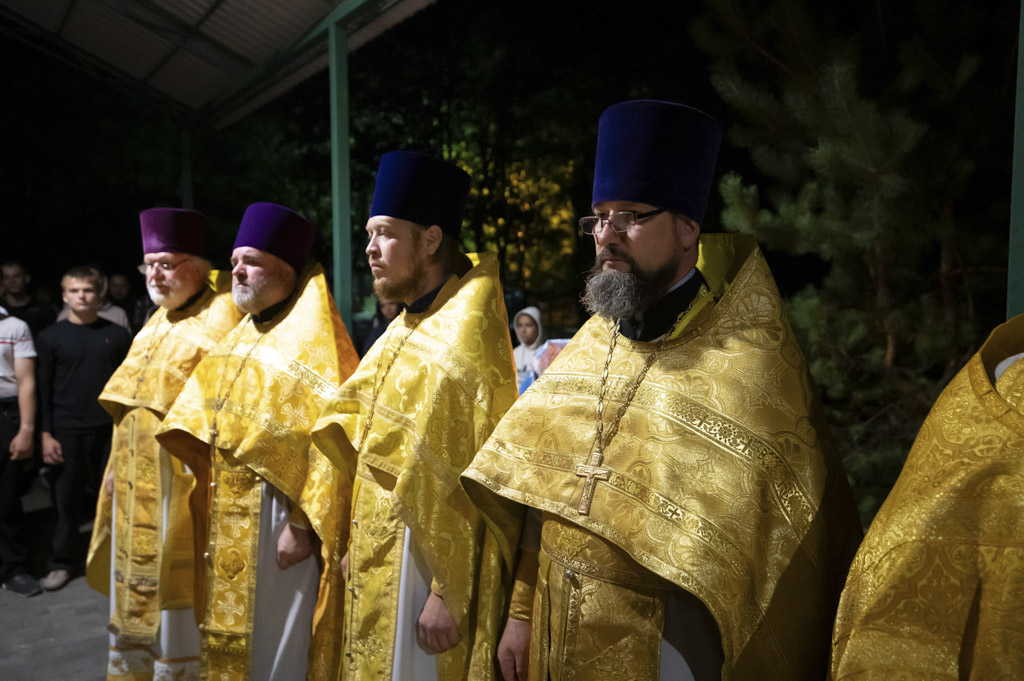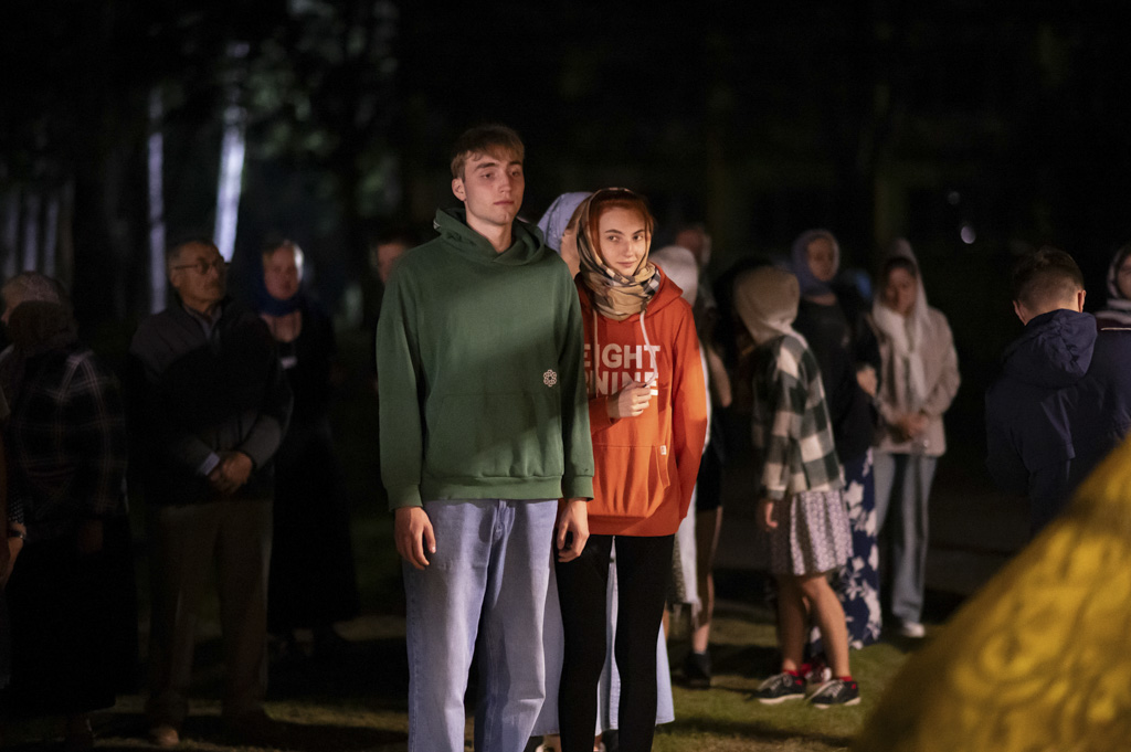 Служба началась в 23:30. Среди присутствующих были молодые люди из всех уголков Гомельской епархии, а также гости из других епархий Белорусской Православной Церкви. У алтаря, установленного под открытым небом, царила глубокая молитвенная тишина. Сквозь неё мягко лился свет свечей. На фоне звёздного неба звучали слова ектений, и каждый из молящихся ощущал себя частью единого церковного тела.