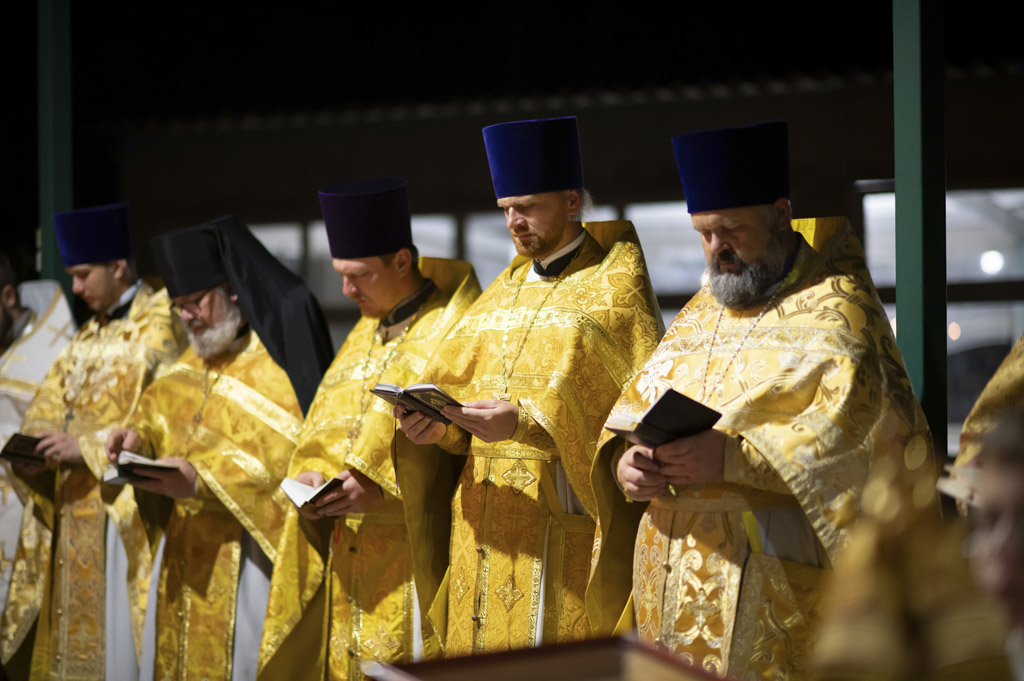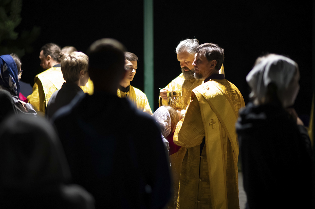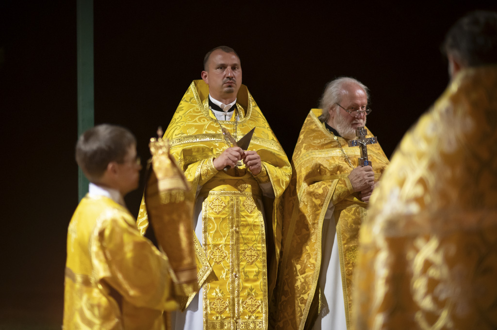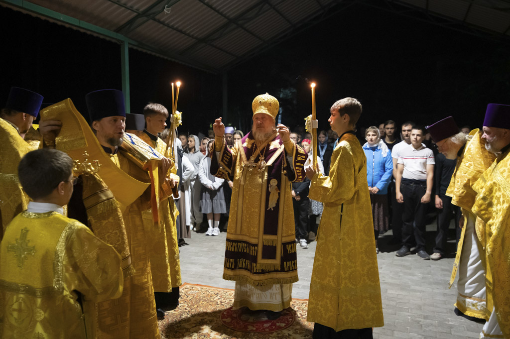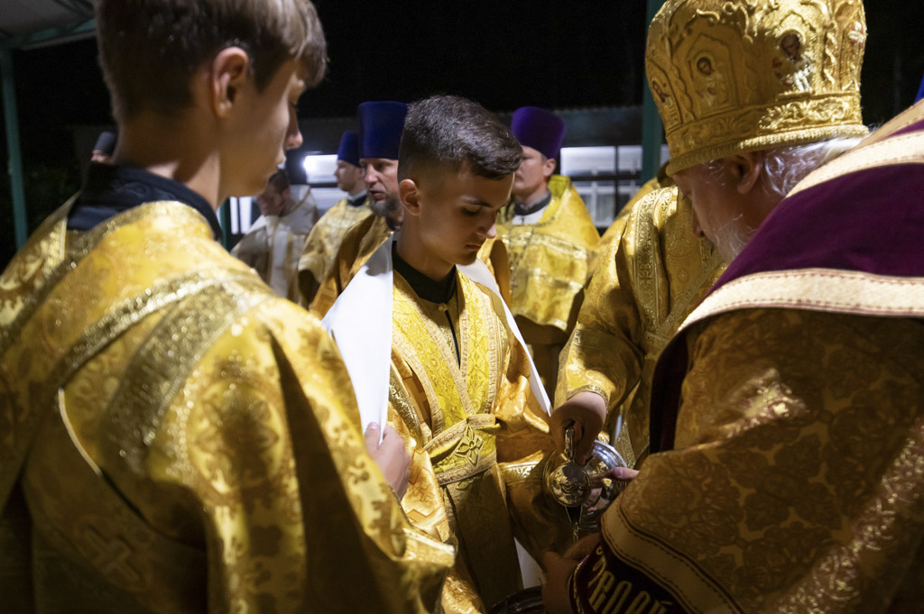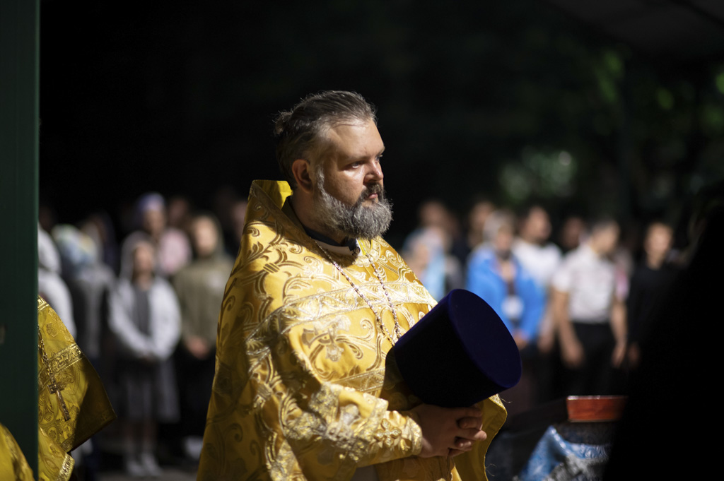 Служба началась в 23:30. Среди присутствующих были молодые люди из всех уголков Гомельской епархии, а также гости из других епархий Белорусской Православной Церкви. У алтаря, установленного под открытым небом, царила глубокая молитвенная тишина. Сквозь неё мягко лился свет свечей. На фоне звёздного неба звучали слова ектений, и каждый из молящихся ощущал себя частью единого церковного тела.