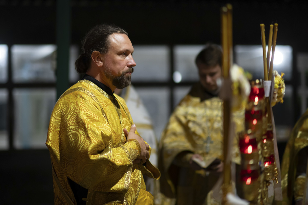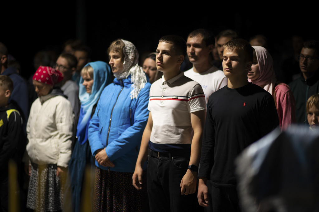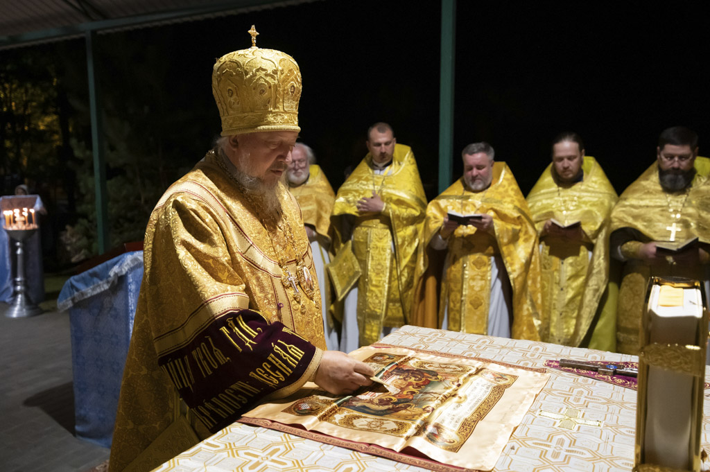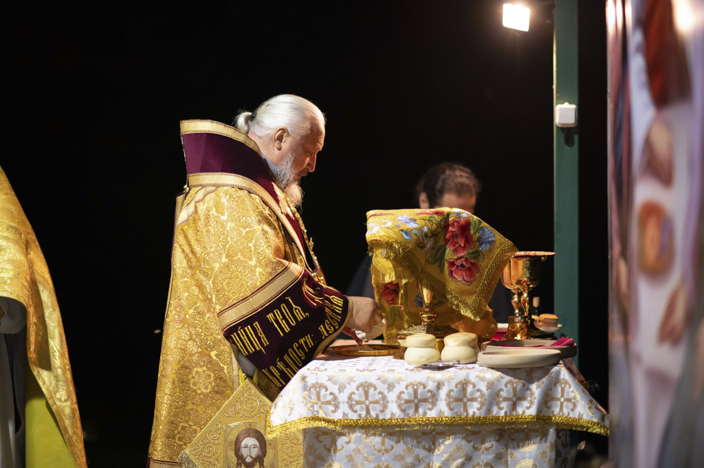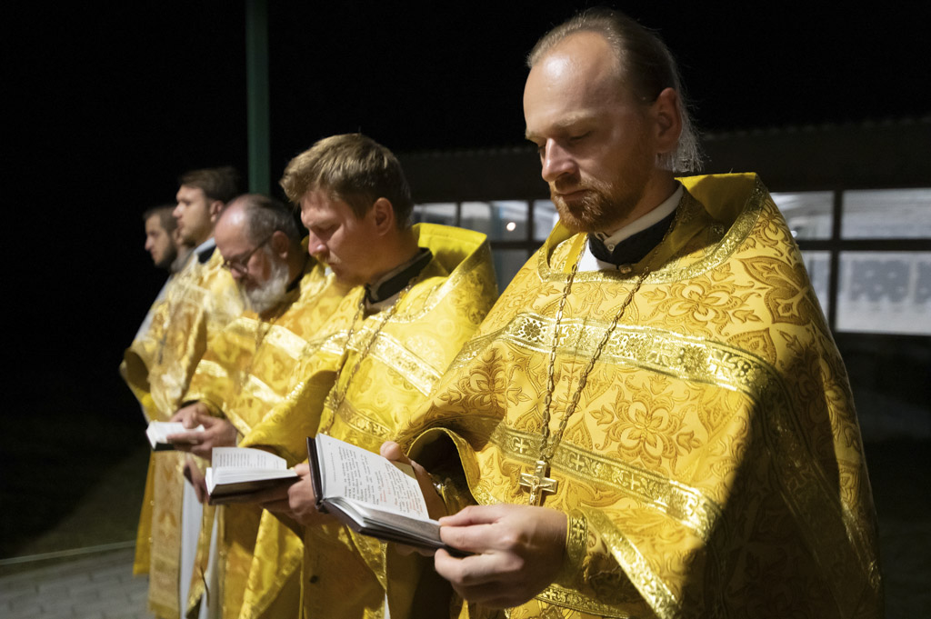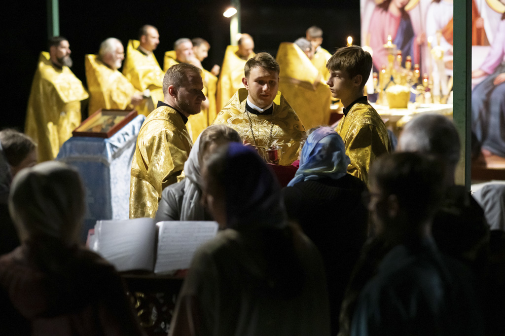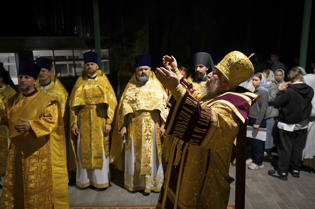 Служба началась в 23:30. Среди присутствующих были молодые люди из всех уголков Гомельской епархии, а также гости из других епархий Белорусской Православной Церкви. У алтаря, установленного под открытым небом, царила глубокая молитвенная тишина. Сквозь неё мягко лился свет свечей. На фоне звёздного неба звучали слова ектений, и каждый из молящихся ощущал себя частью единого церковного тела.