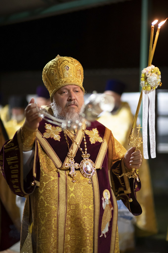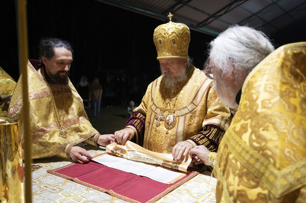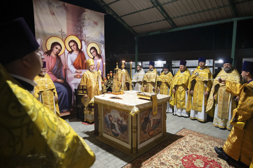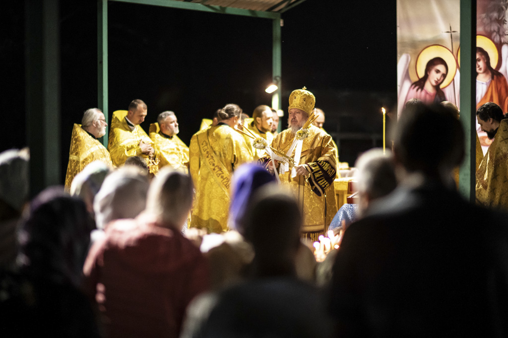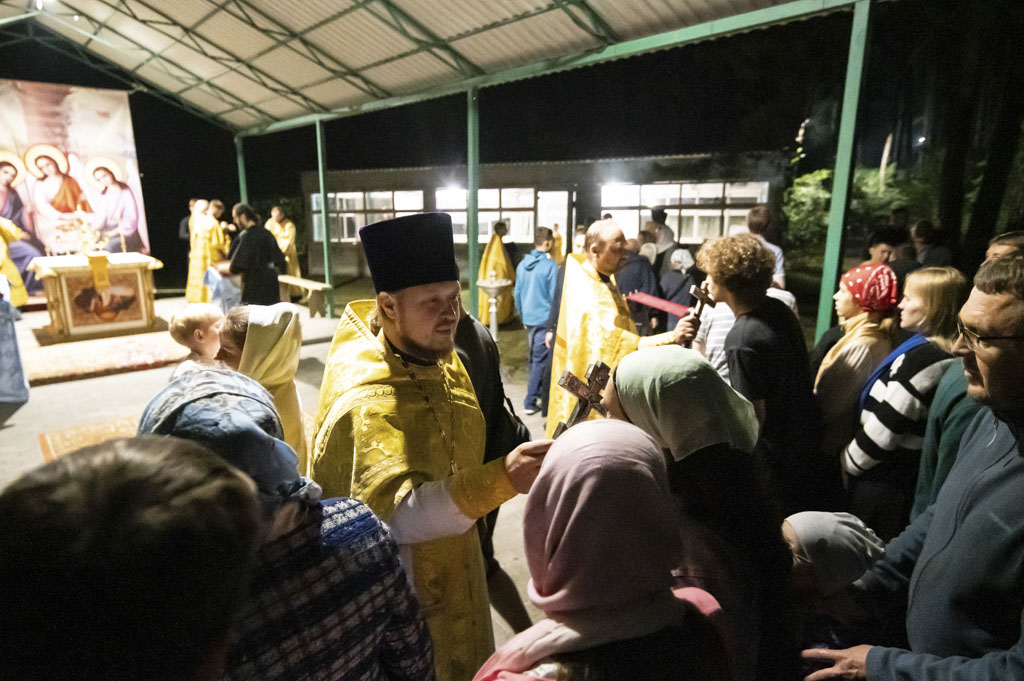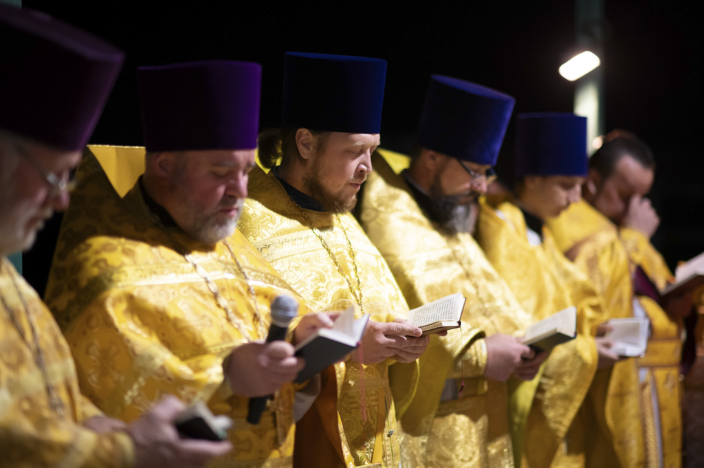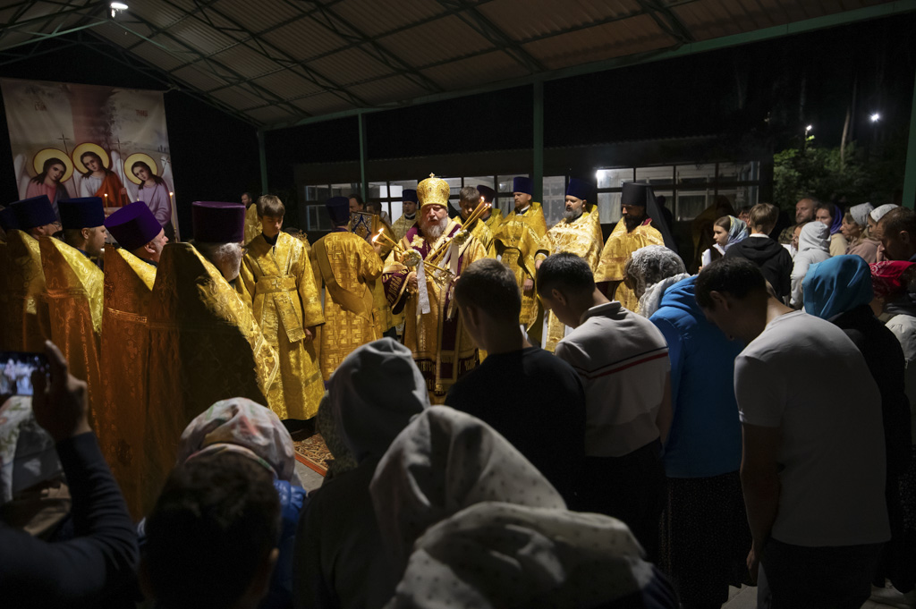 Служба началась в 23:30. Среди присутствующих были молодые люди из всех уголков Гомельской епархии, а также гости из других епархий Белорусской Православной Церкви. У алтаря, установленного под открытым небом, царила глубокая молитвенная тишина. Сквозь неё мягко лился свет свечей. На фоне звёздного неба звучали слова ектений, и каждый из молящихся ощущал себя частью единого церковного тела.