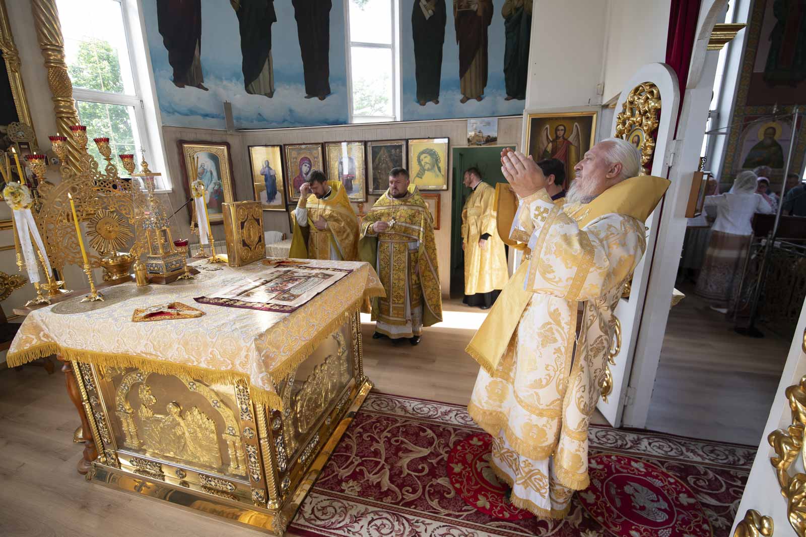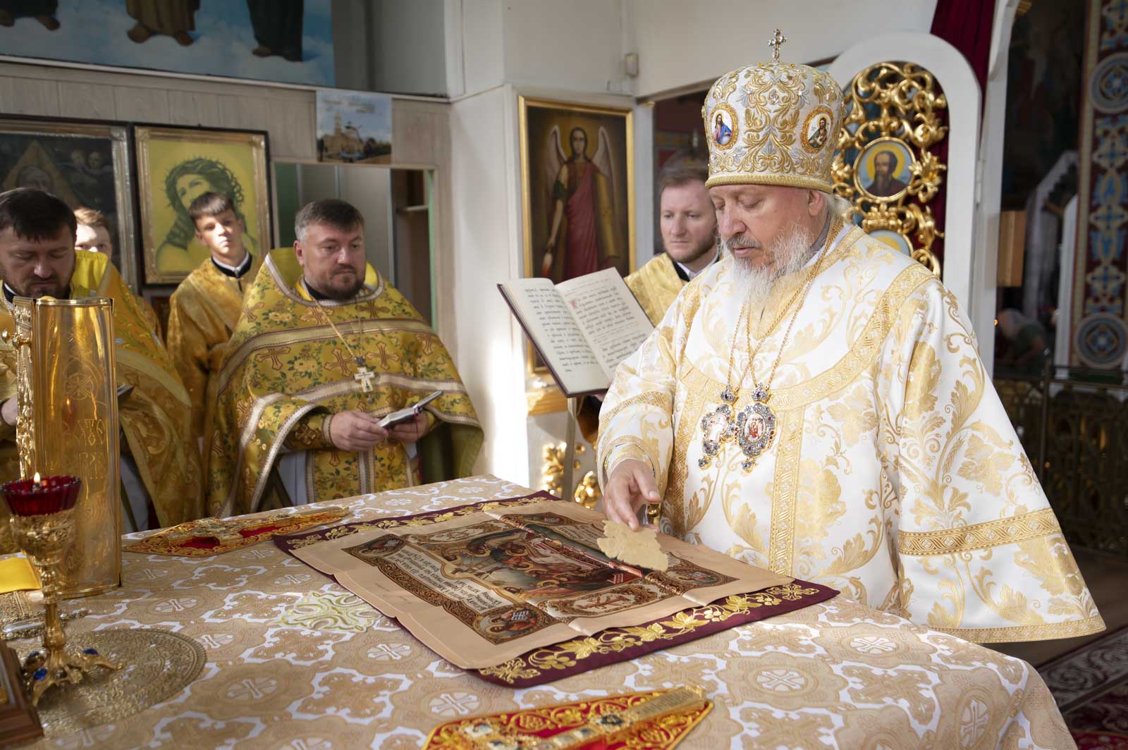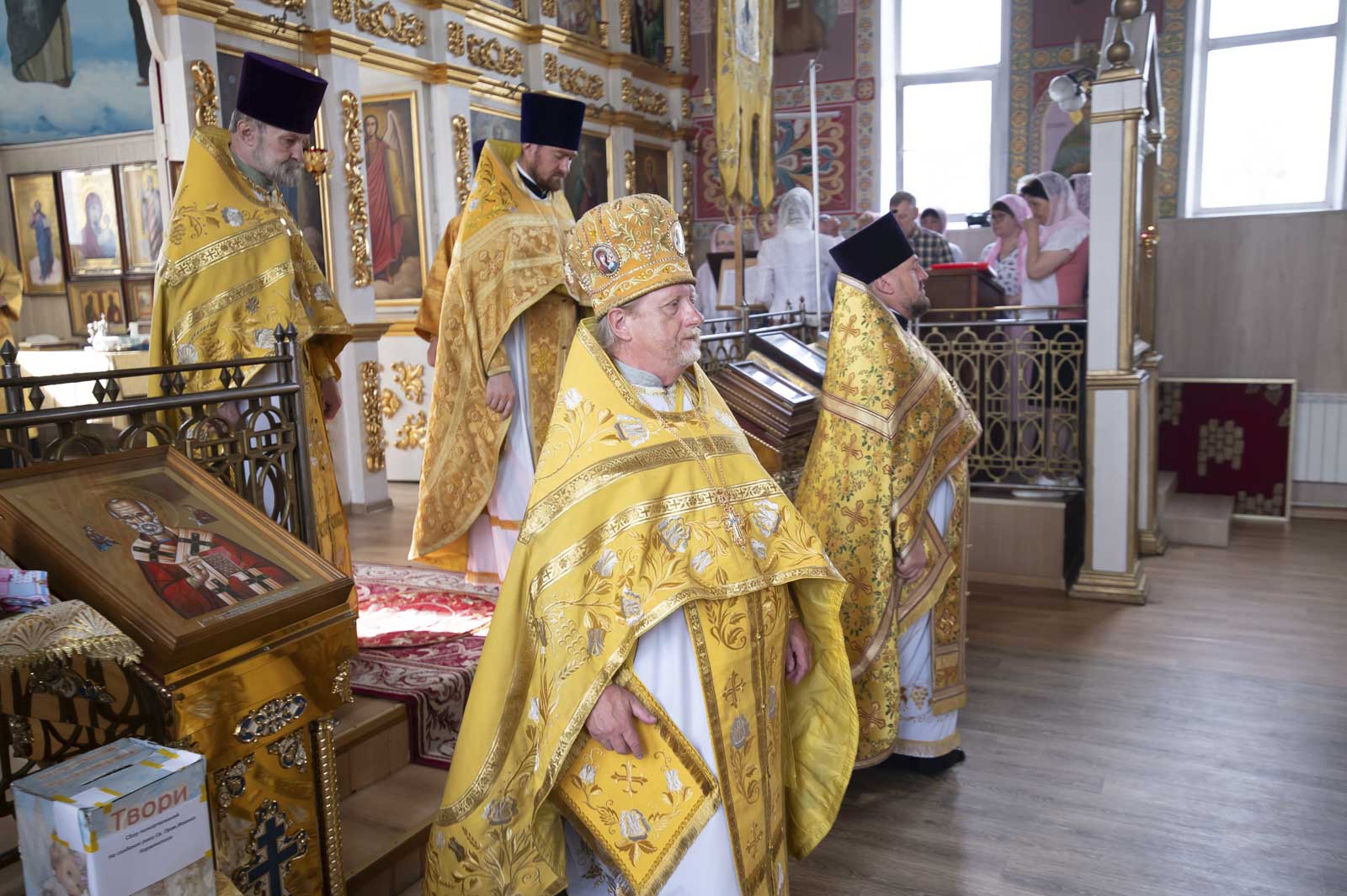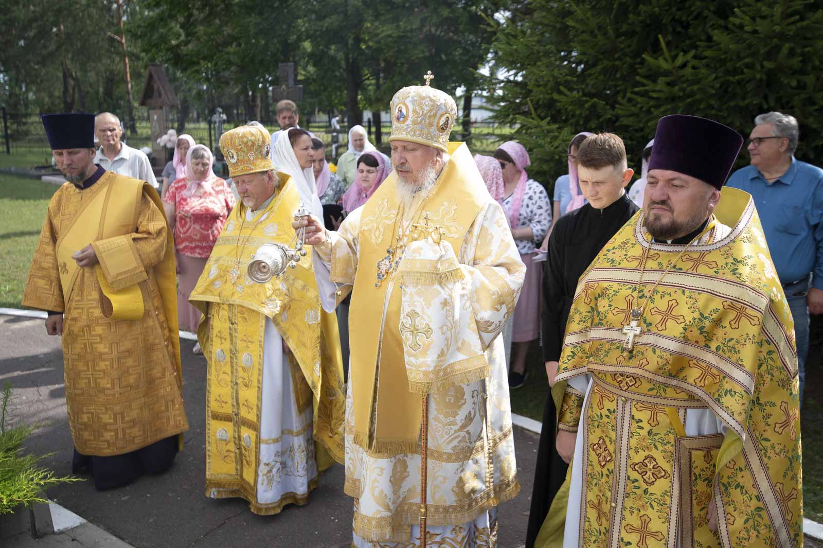Его Высокопреосвященству сослужили: благочинный Светлогорского округа протоиерей Александр Кисель, настоятель прихода протоиерей Владимир Семенов и духовенство благочиния.
