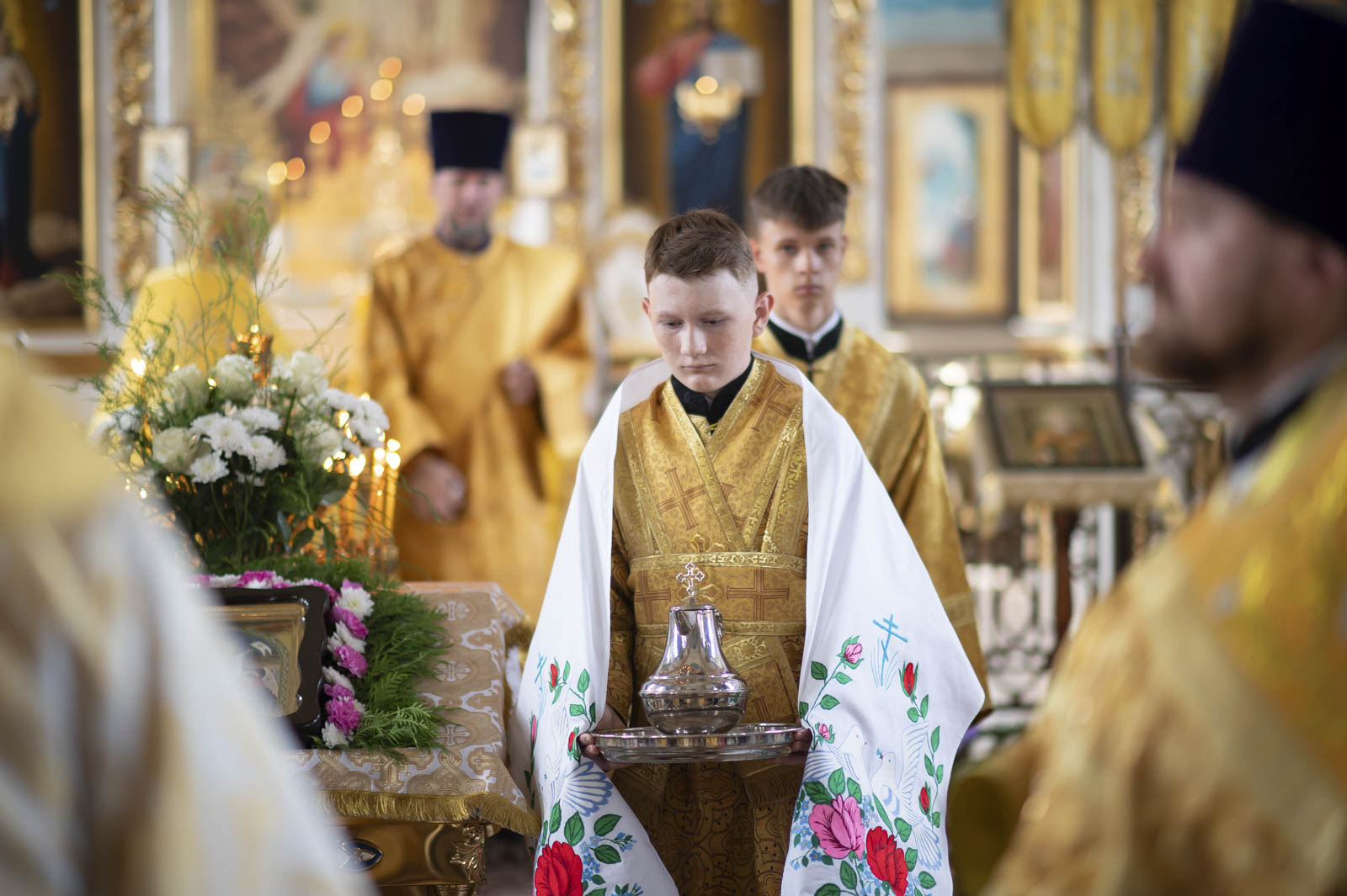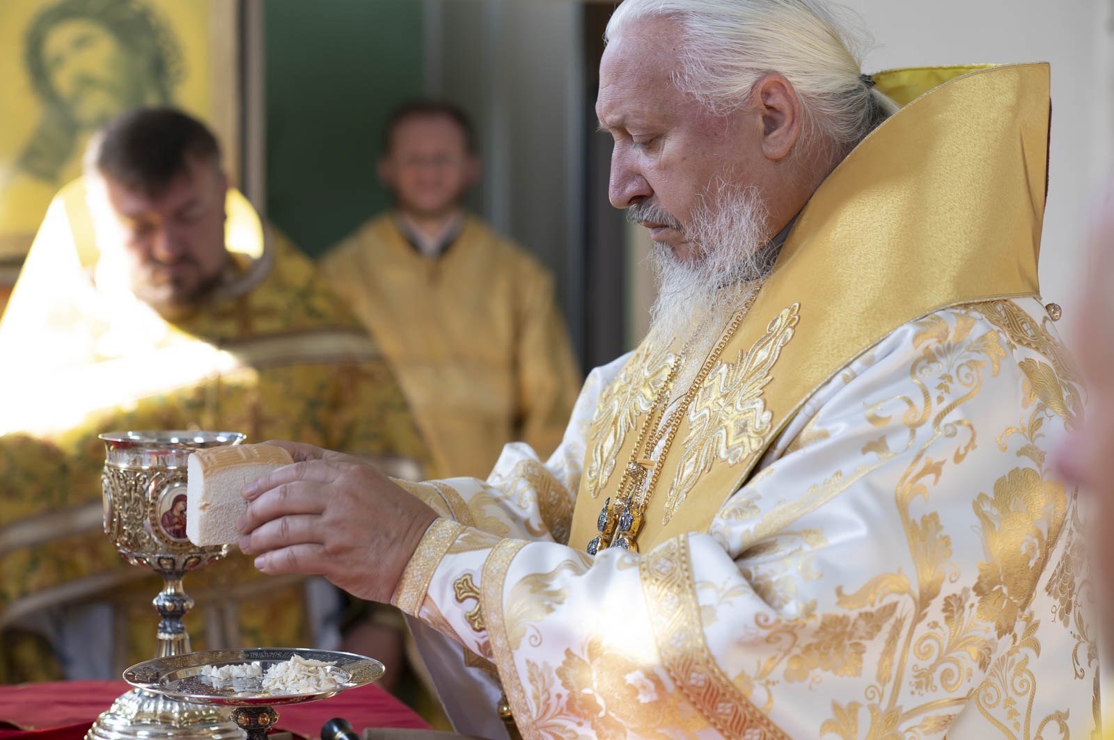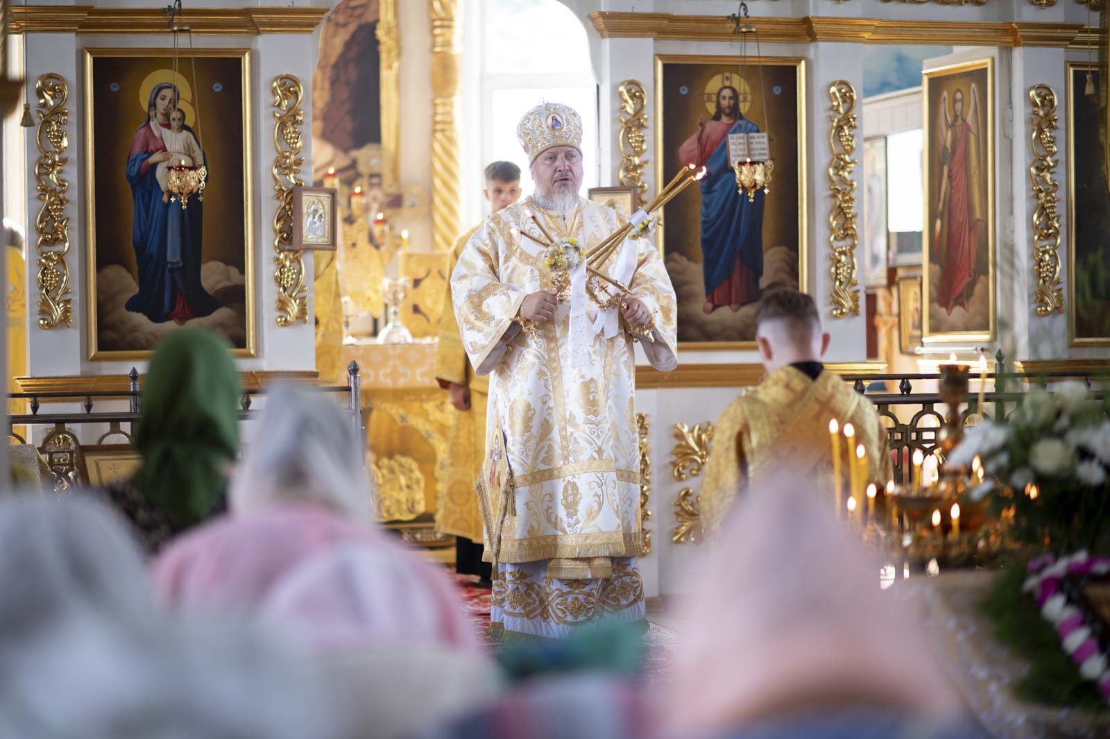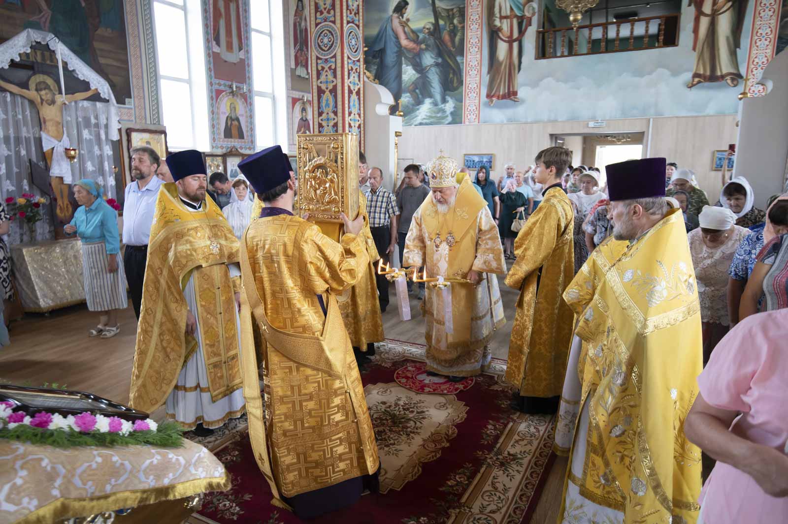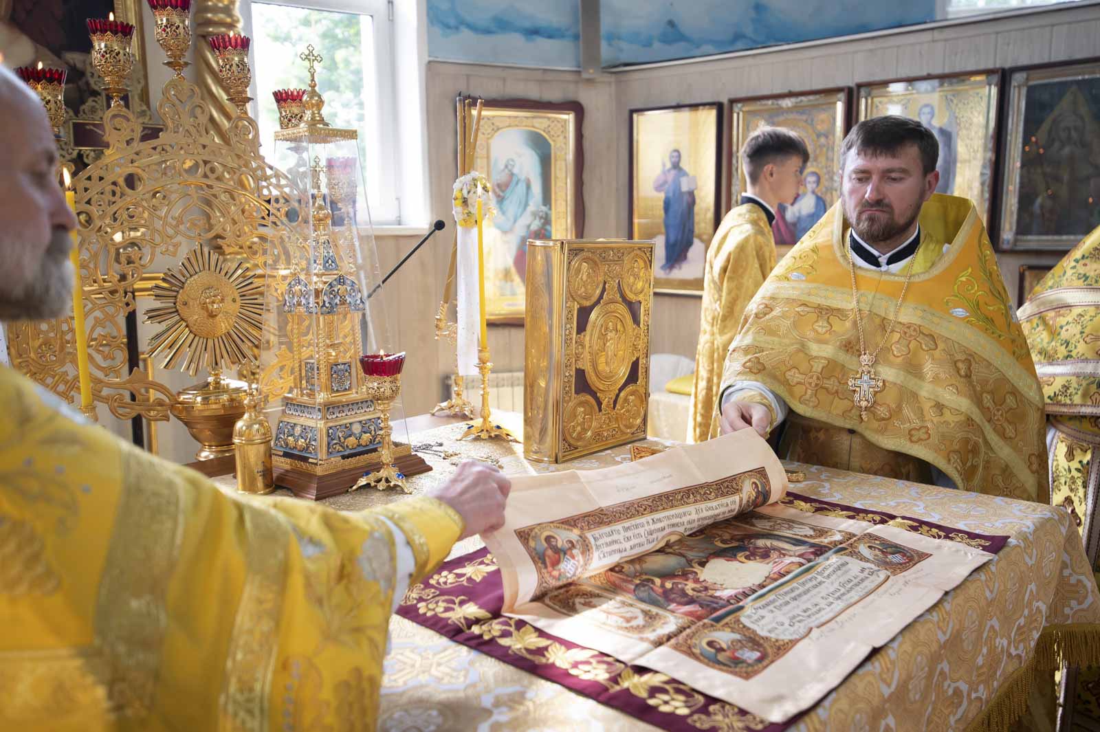 Его Высокопреосвященству сослужили: благочинный Светлогорского округа протоиерей Александр Кисель, настоятель прихода протоиерей Владимир Семенов и духовенство благочиния.