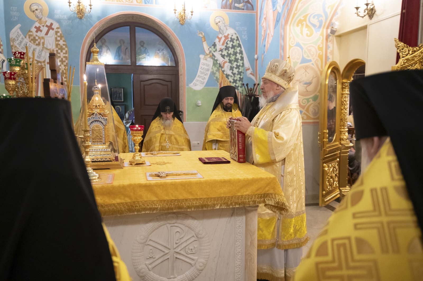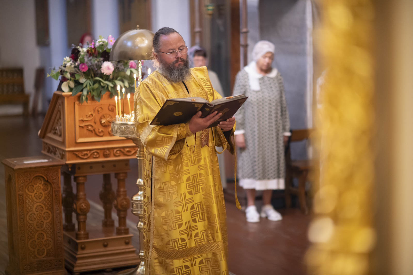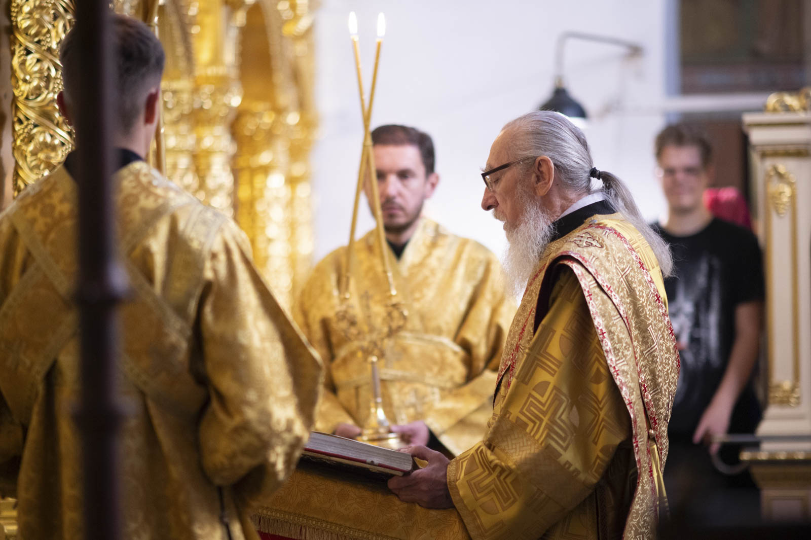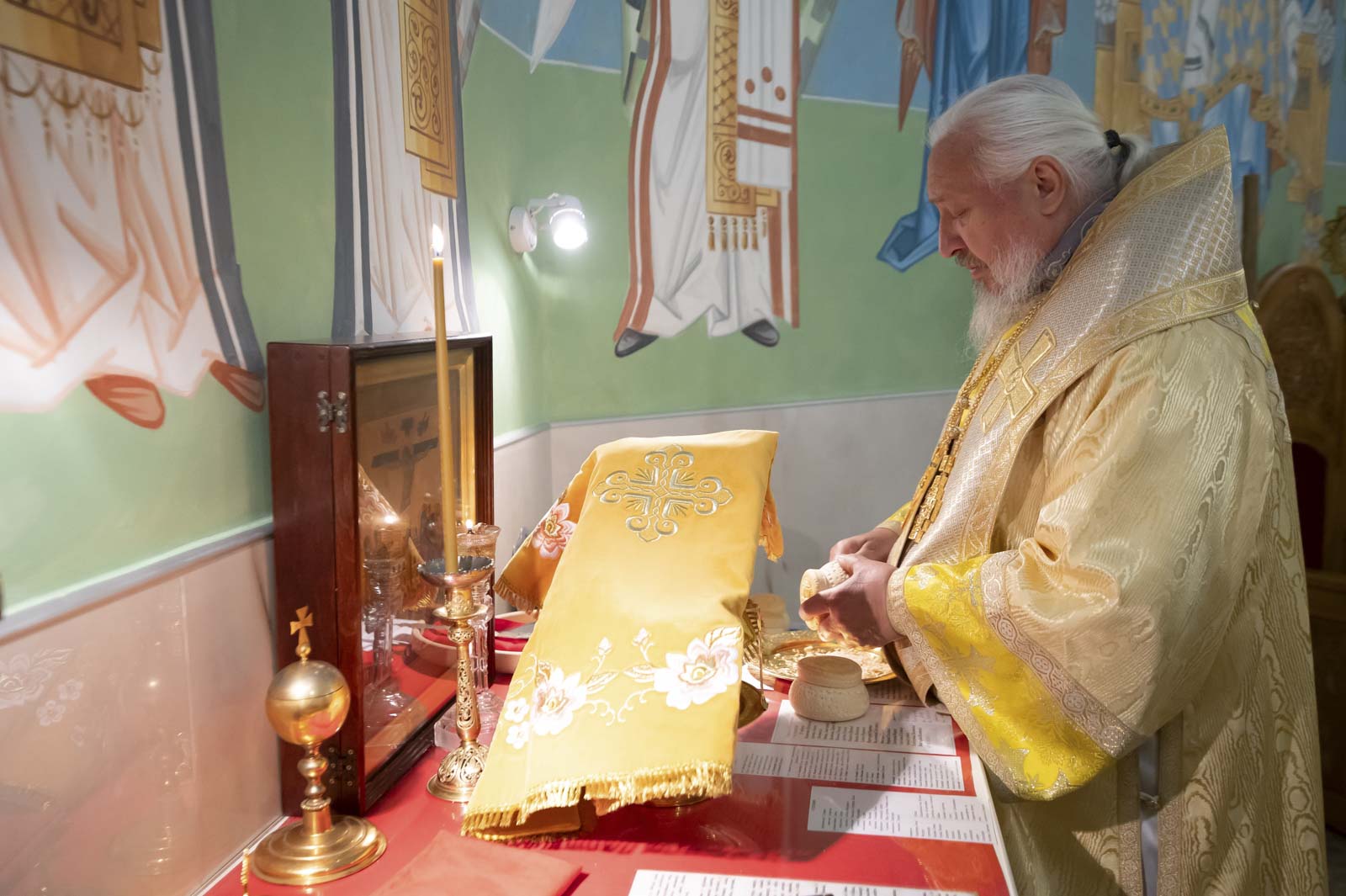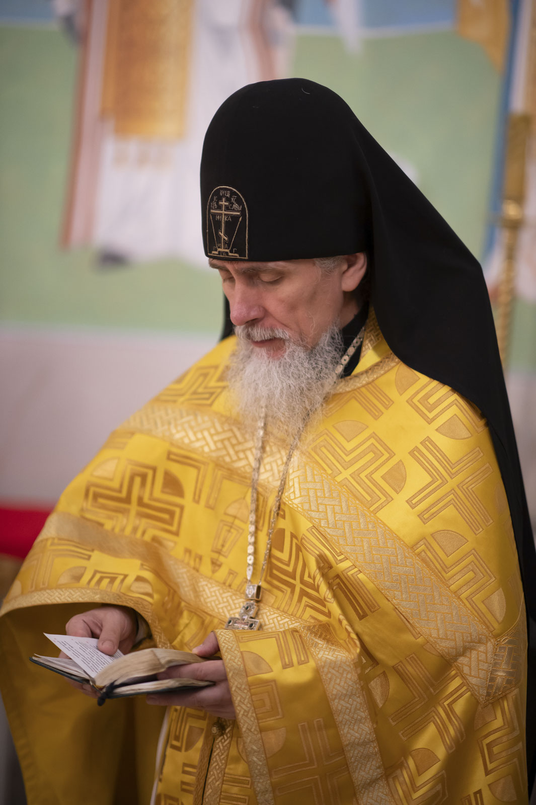 Его Высокопреосвященству сослужили: благочинный монастырей Гомельской епархии игумен Феодорит (Золотарев) и братия монастыря в священном сане.