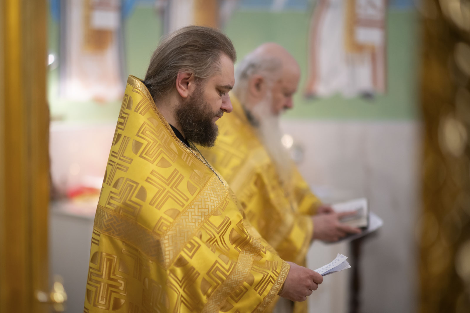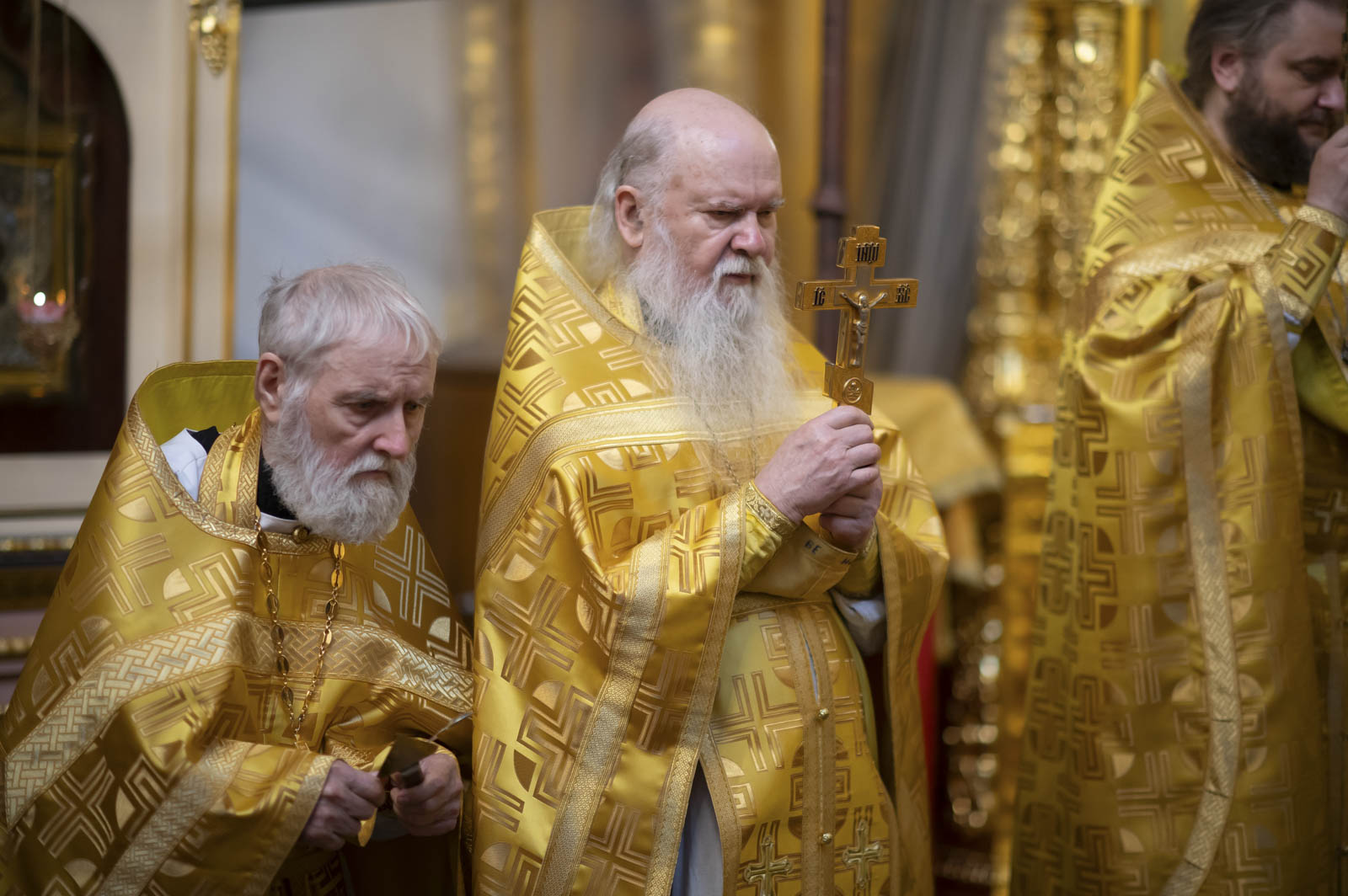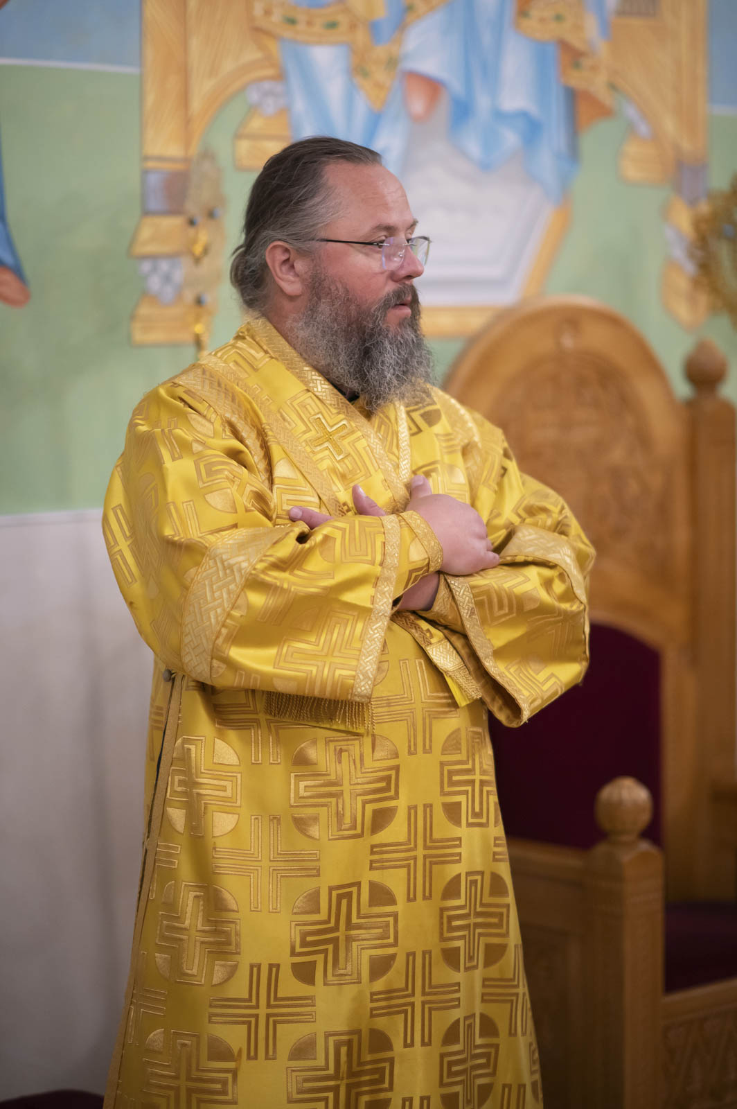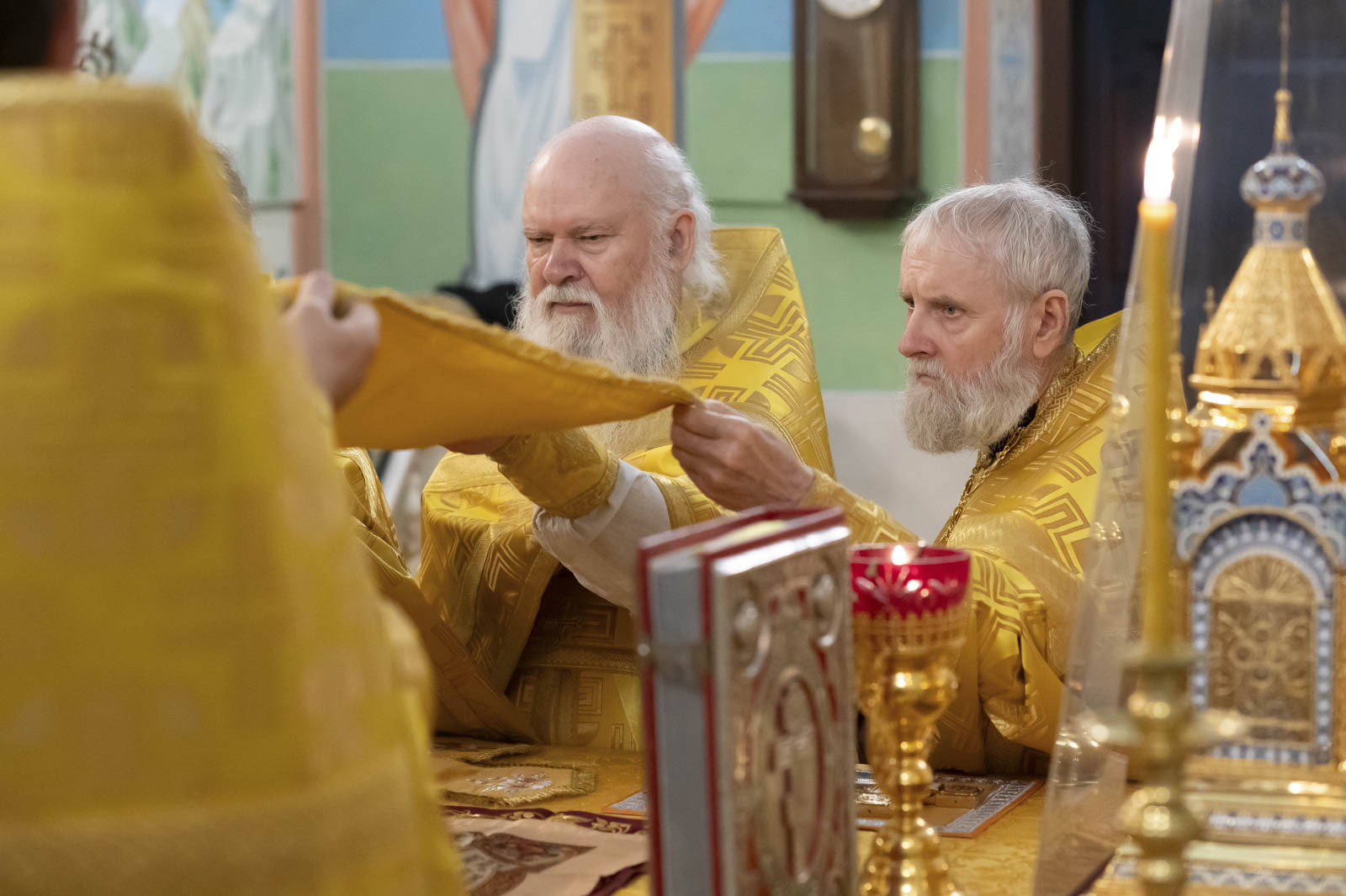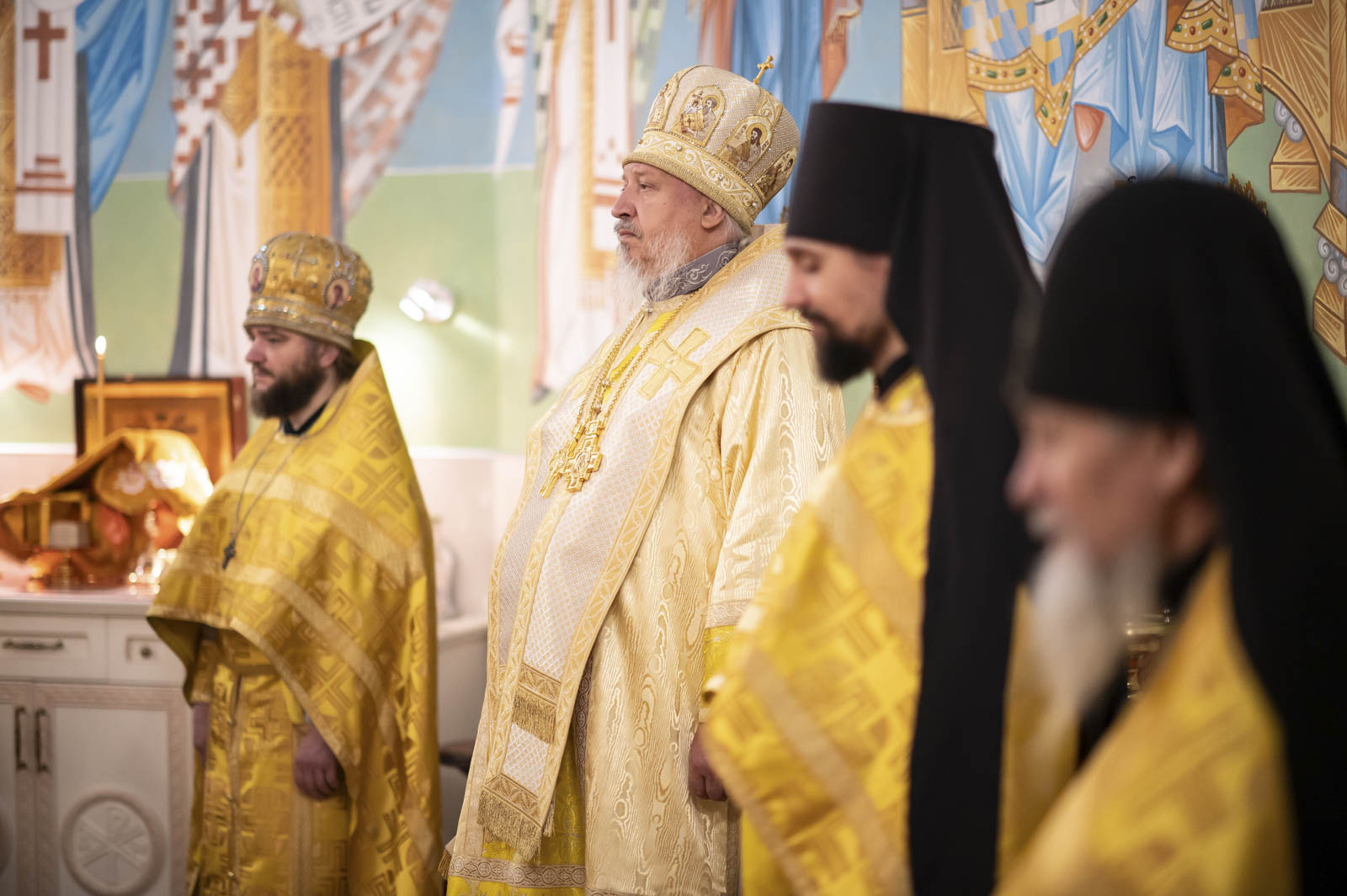Его Высокопреосвященству сослужили: благочинный монастырей Гомельской епархии игумен Феодорит (Золотарев) и братия монастыря в священном сане.