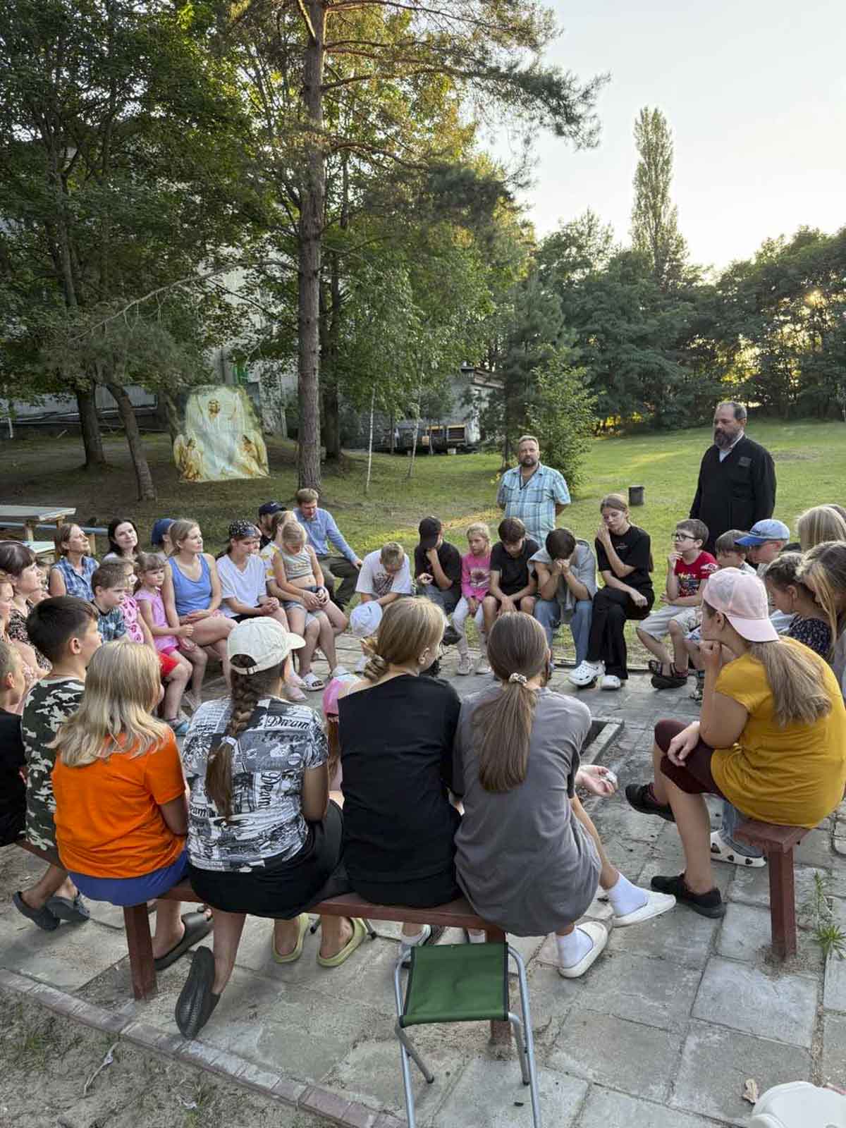 Завершился день общей вечерней молитвой и посиделками у костра.
