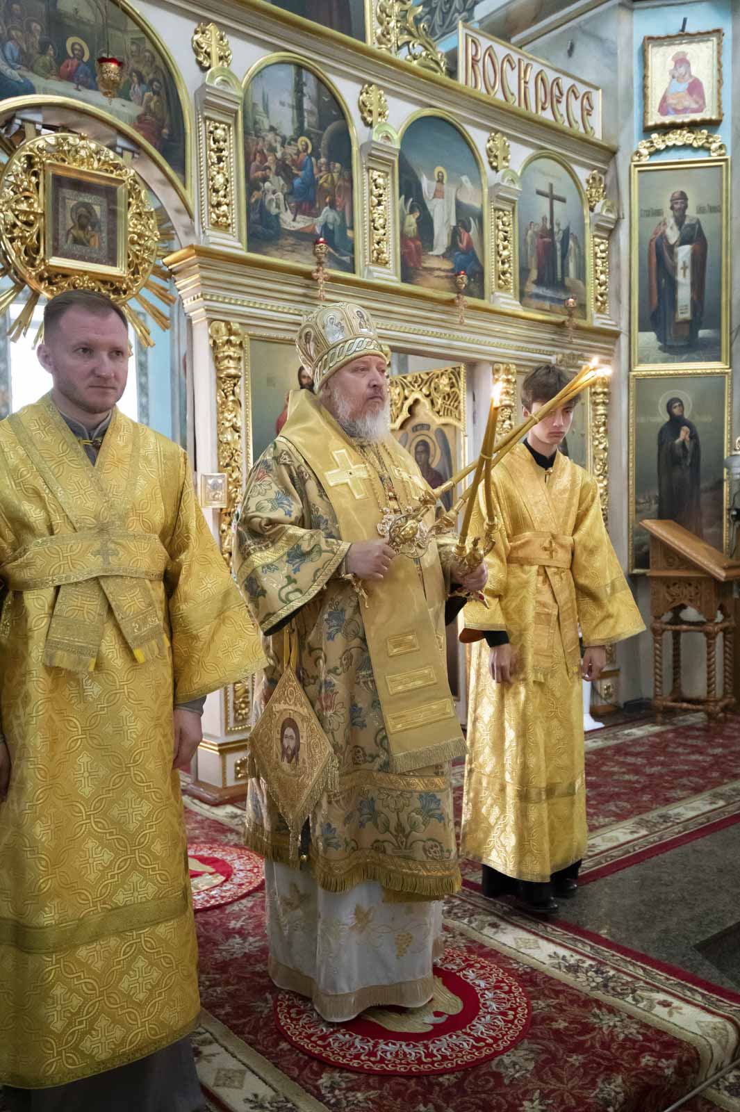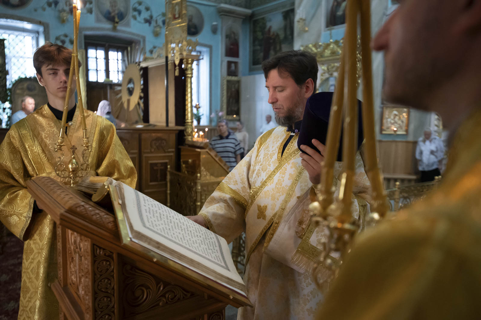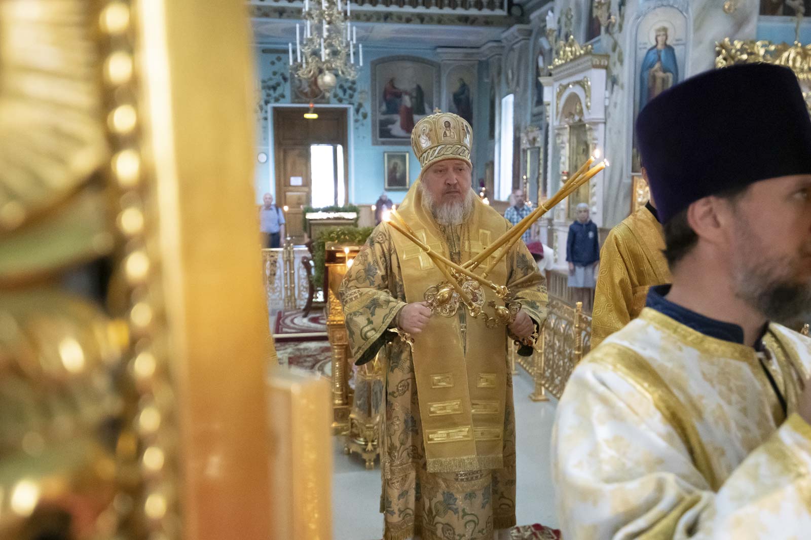Божественную литургию 7 августа 2025 года, в четверг седмицы 9-ой по Пятидесятнице, Высокопреосвященнейший Стефан, архиепископ Гомельской и Жлобинский, совершил в Петро-Павловском кафедральном соборе г.Гомеля.