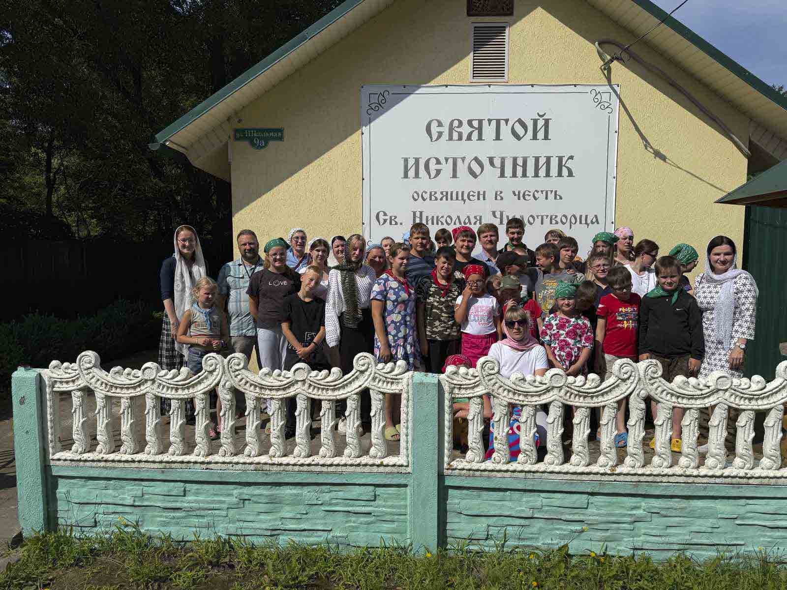 В пятницу, 8 августа, дети и взрослые совершили паломническую поездку к святому источнику в честь святителя Николая Чудотворца в аг. Новая Гута. Там все желающие смогли окунуться в купели, а также помолиться в храме Вознесения Господня.