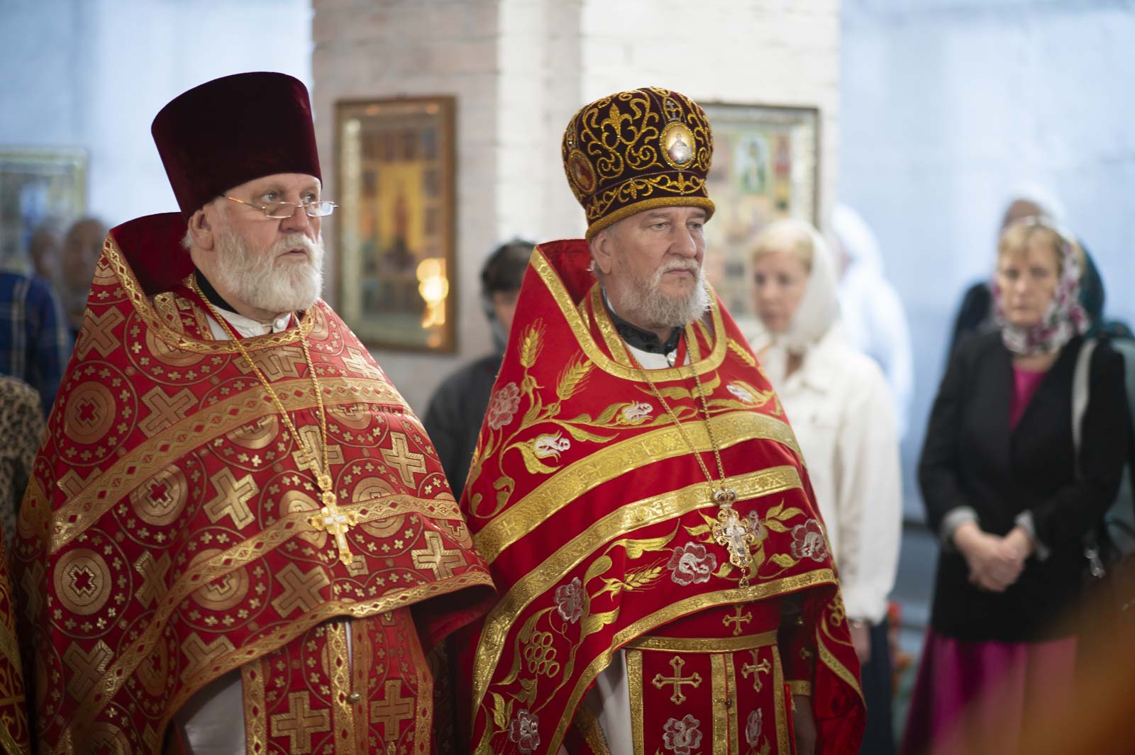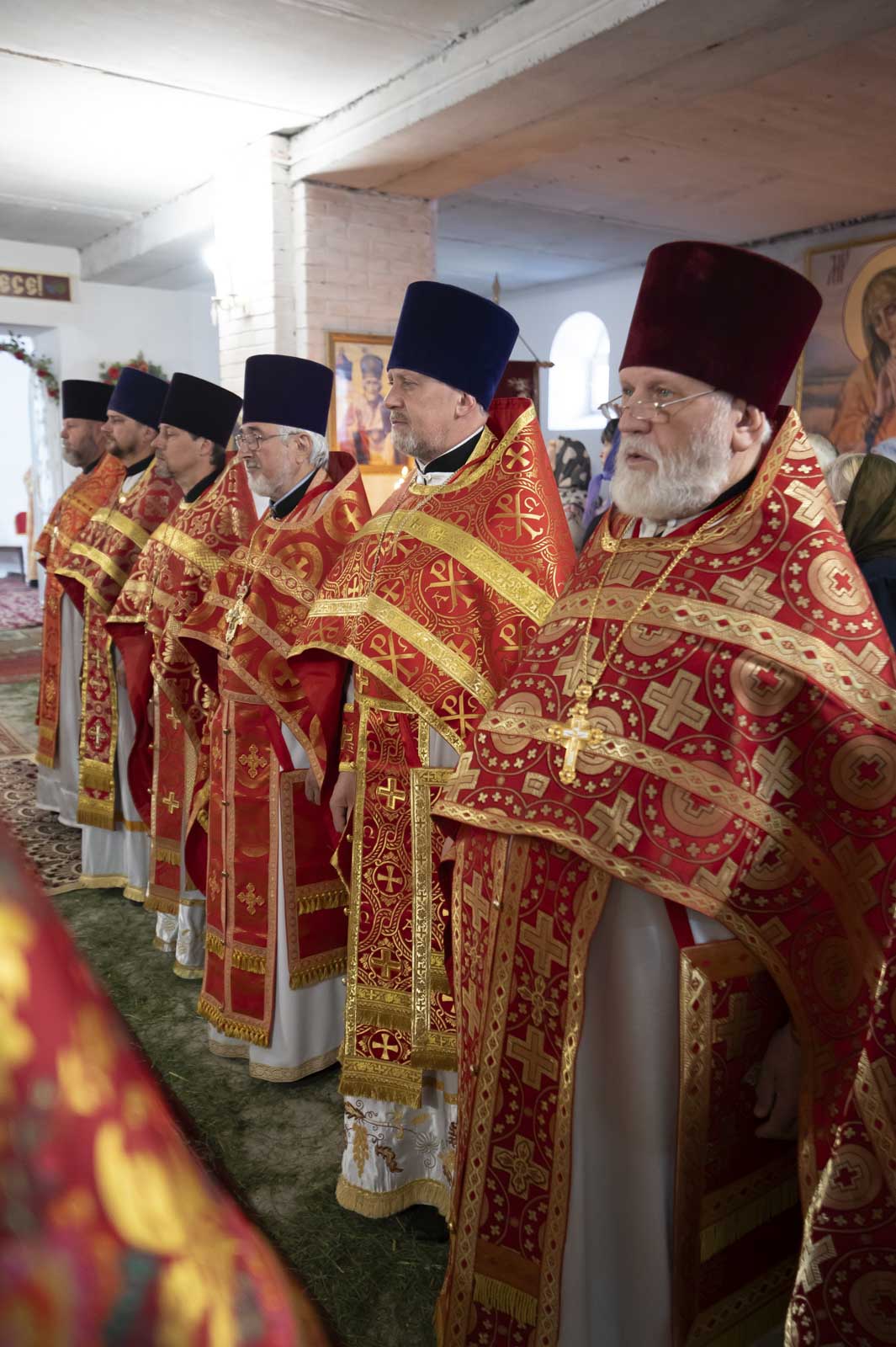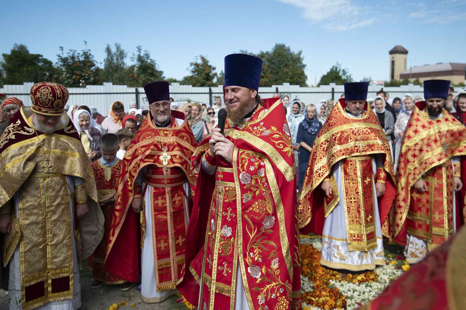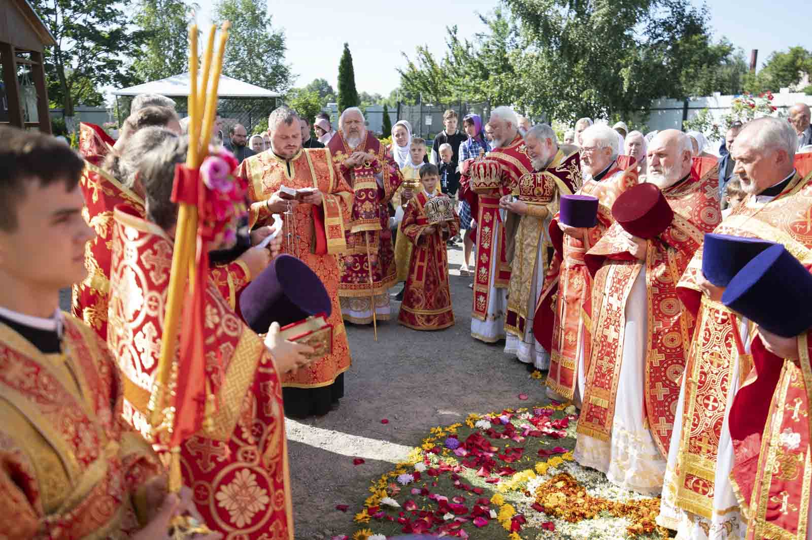 Высокопреосвященнейшему сослужили: секретарь Гомельской епархии протоиерей Георгий Алампиев, благочинный Жлобинского округа протоиерей Алексей Смотрицкий, эконом Гомельской епархии протоиерей Владимир Масалитин, председатель церковно-исторической комиссии протоиерей Александр Лопушанский, настоятель прихода храма Преображения Господня в г. Ветка протоиерей Михаил Борисенок, настоятель прихода протоиерей Михаил Борисенок и духовенство епархии.