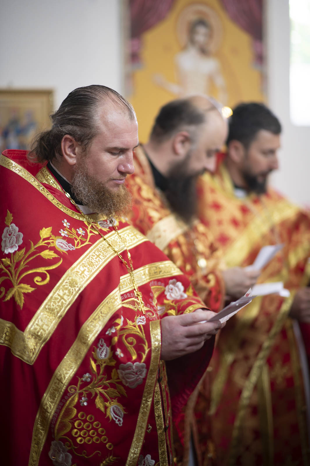 Божественную литургию в день памяти святого мученика Иоанна Воина, 12 августа 2025 года Высокопреосвященнейший Стефан, архиепископ Гомельский и Жлобинский, совершил в приходе храма св.мч.Иоанна Воина в г. Жлобине.