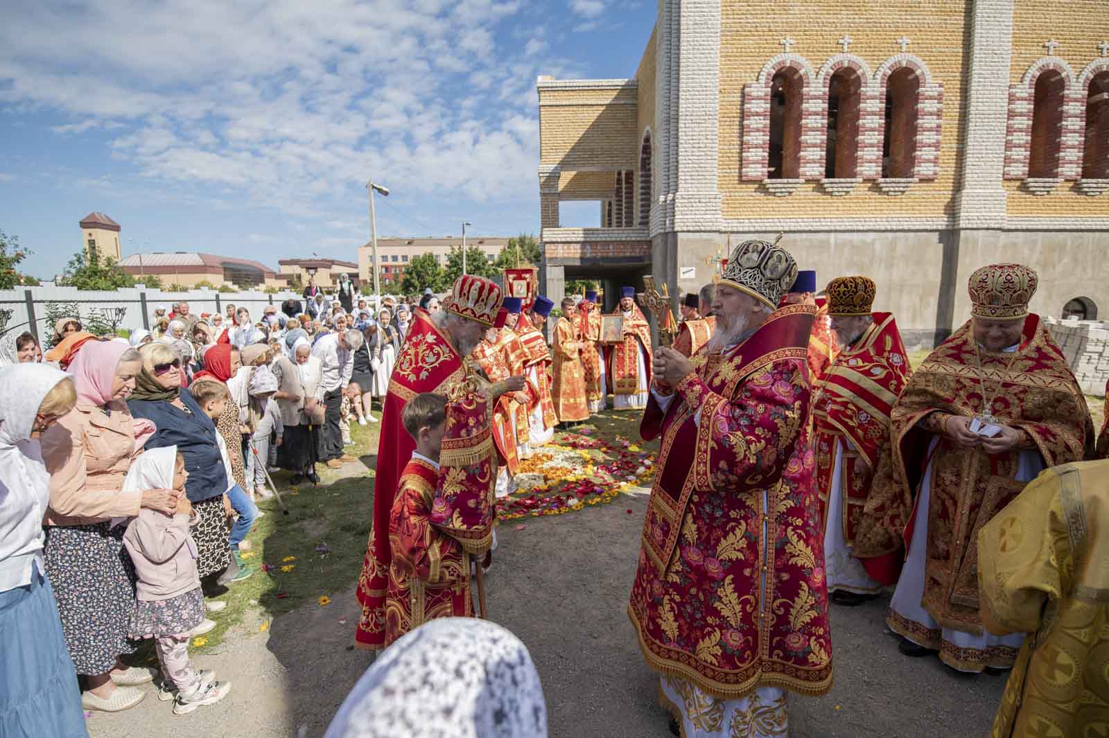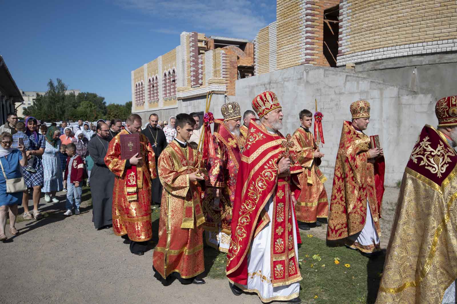 Архипастырь, духовенство, монахини и прихожане прошли вокруг строящегося храма крестным ходом, который завершился славлением святому.
