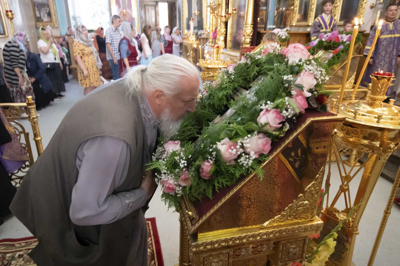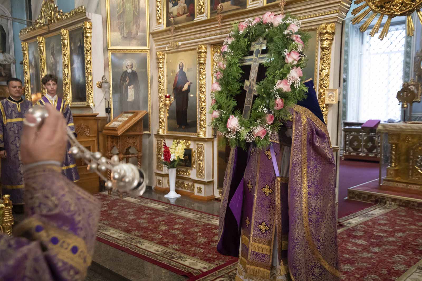 13 августа 2025г., в канун праздника Происхождения (изнесения) честных древ Животворящего Креста Господня, а также дня памяти семи мучеников Маккавеев, матери их Соломонии и учителя их Елеазара, Высокопреосвященнейший Стефан, архиепископ Гомельский и Жлобинский, молился за Всенощным бдением в Петро-Павловском кафедральном соборе г.Гомеля.