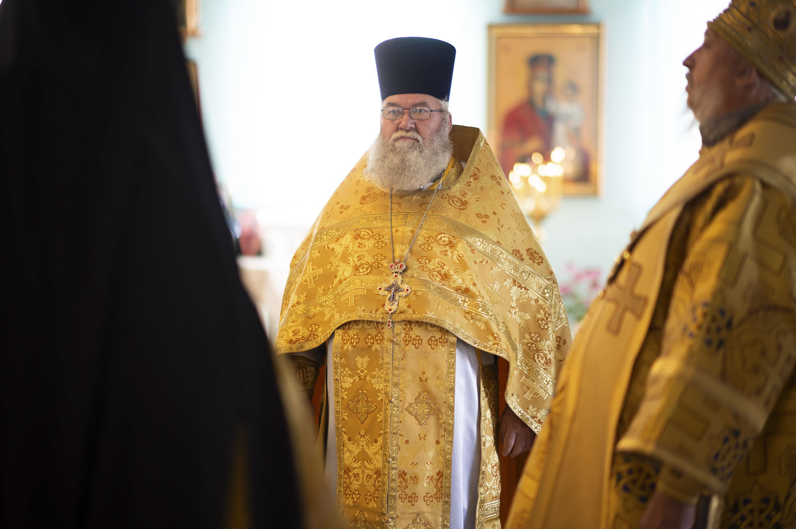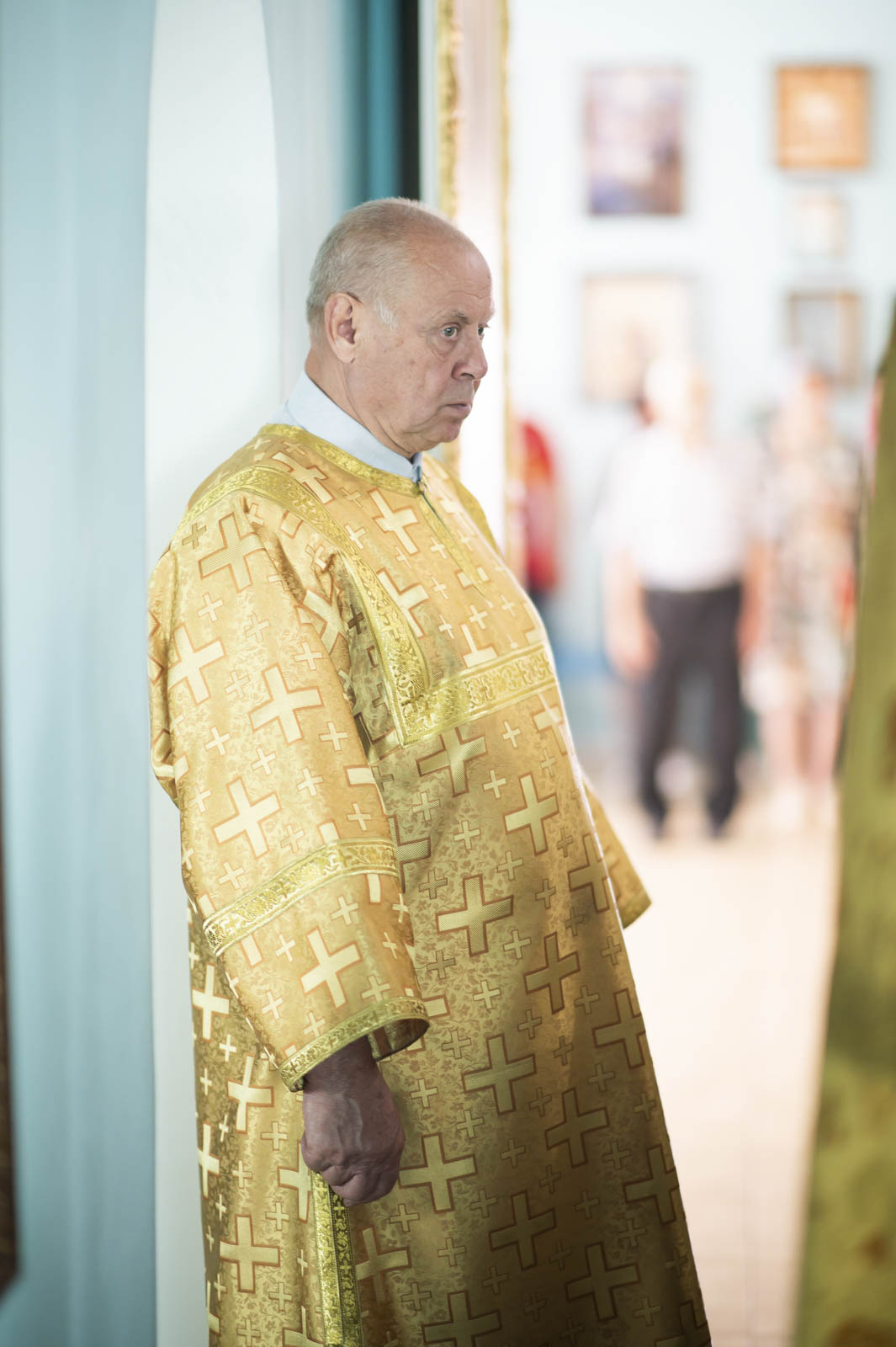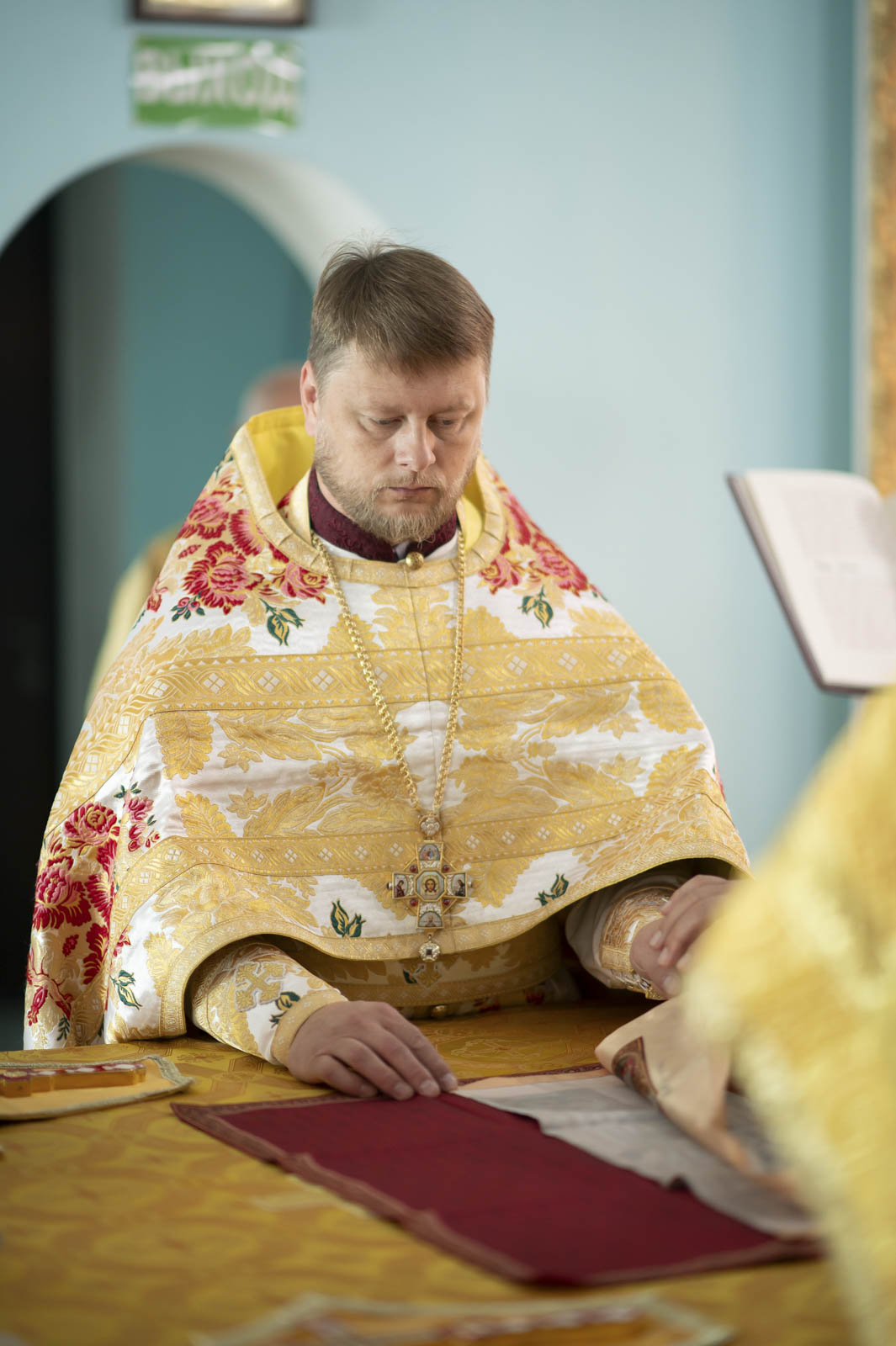 Высокопреосвяшеннейшему сослужили: секретарь Гомельской епархии протоиерей Георгий Алампиев, благочинный Лоевского округа иерей Дмитрий Чварков, настоятель прихода иерей Михаил Иванов и духовенство епархии.