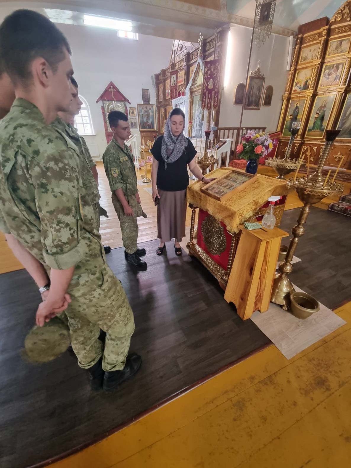 Пограничники пограничной заставы «Лоев» посетили храм Святой Живоначальной Троицы г.п.Лоев. Специалист по приходскому просвещению Карпенко Людмила Георгиевна провела экскурсию по храму, рассказав об истории православной жизни на Лоевщине, устройстве православного храма, назначении некоторых предметов церковного обихода, истории появления некоторых храмовых икон.
