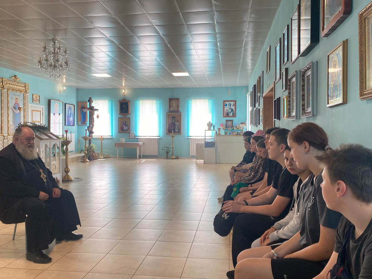 В летние месяцы в приходах храмов Лоевского благочиния прошли духовно-просветительские встречи с ребятами, посещающими пришкольные детские оздоровительные лагеря, а также с представителями военной сферы района.