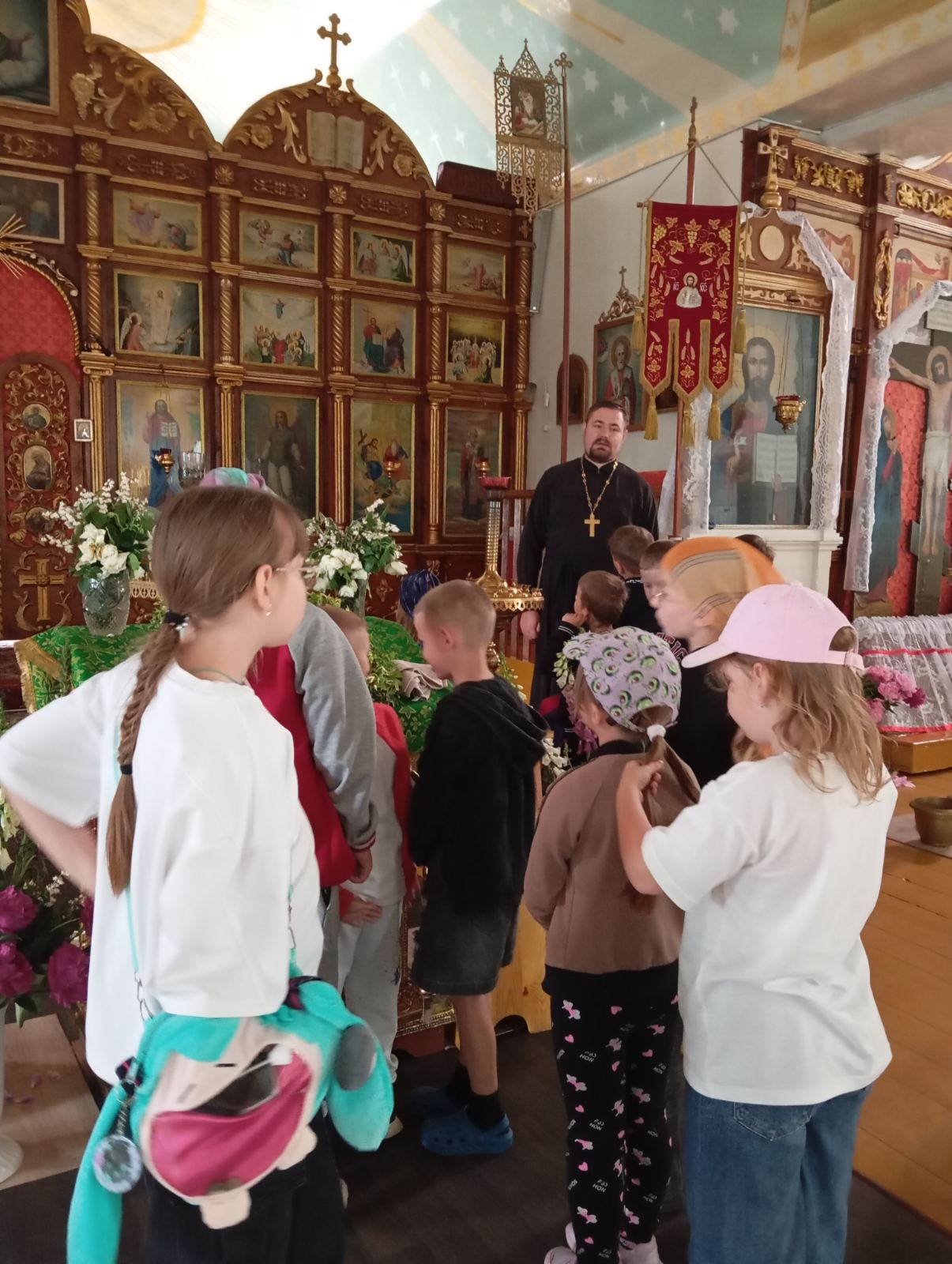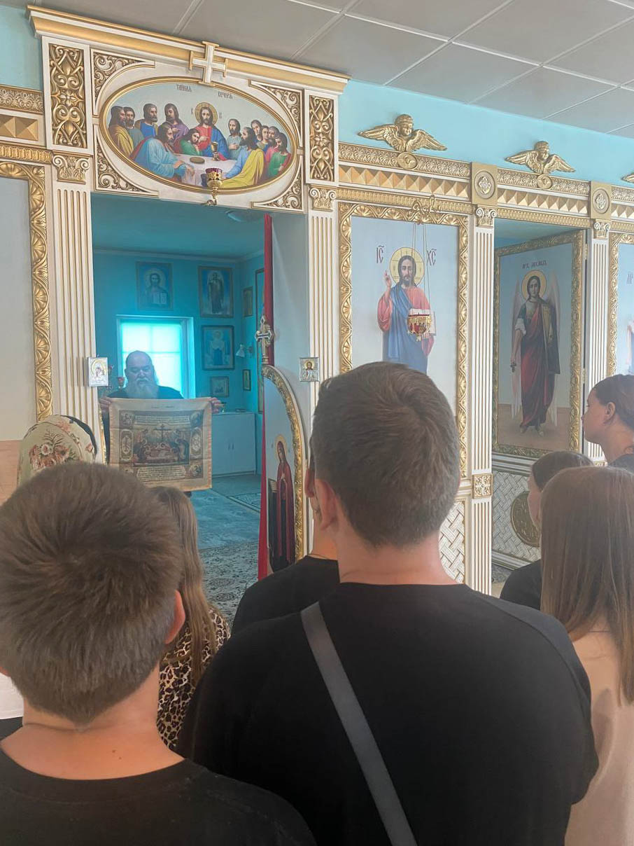 Клирик прихода храма Святой Живоначальной Троицы г.п.Лоев иерей Роман Коледа провел культурологическую экскурсию для ребят из пришкольного лагеря ГУО «Лоевская СШ им. А.В.Козлова». Ребята смогли узнать об устройстве Храма, значении и истории появления в Храме некоторых икон, а также соприкоснулись с жизнью св. прп. Евфросинии Полоцкой, которая является небесной покровительницей всей Белорусской земли.