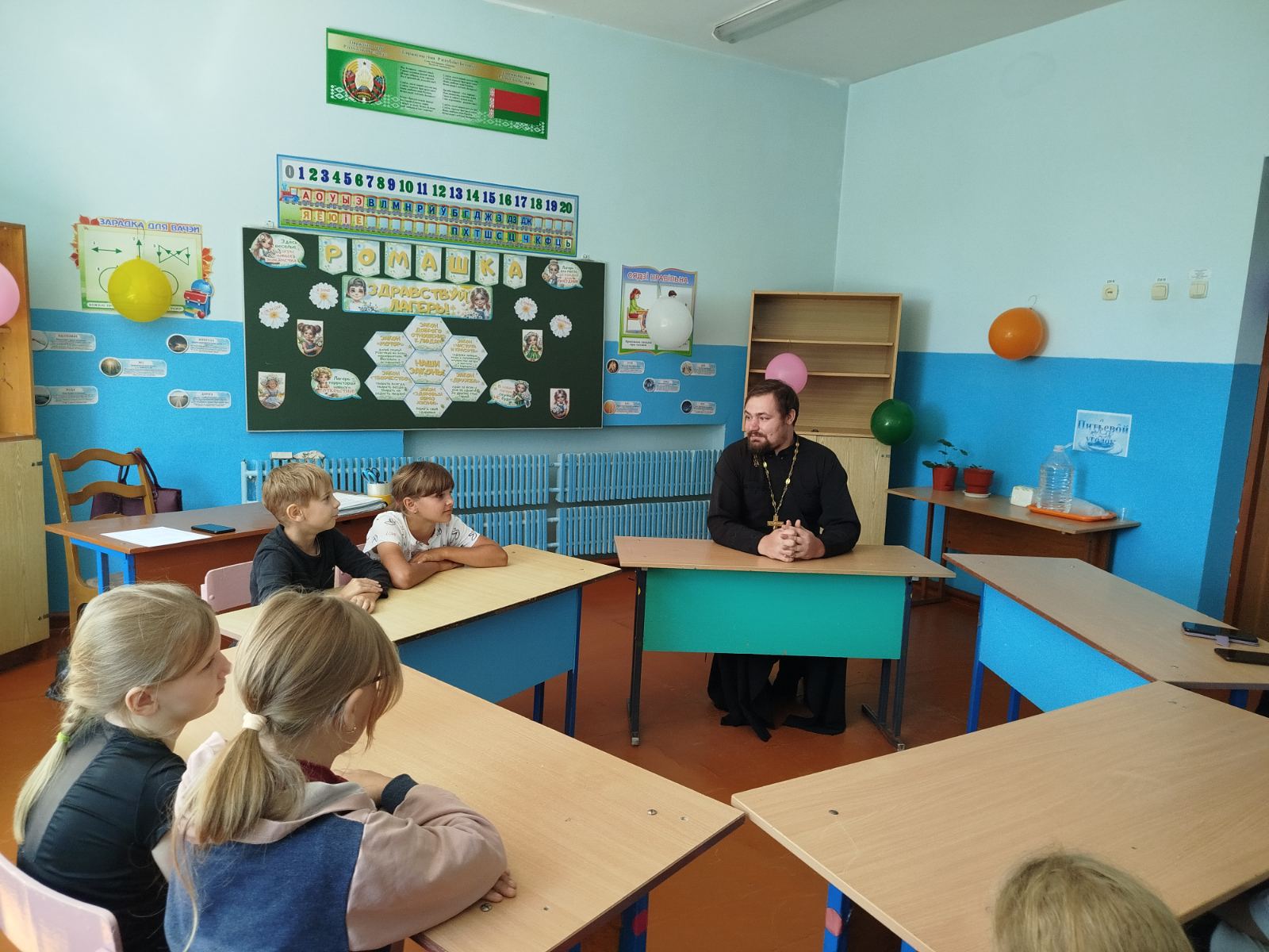 Также священнослужитель посетил воспитанников пришкольного лагеря ГУО «Севковская базовая школа». Ребята порассуждали о добре и зле, уважении к родителям и учителям, заботе о старших, а также о заповедях Божиих, как основе всех добродетелей.
