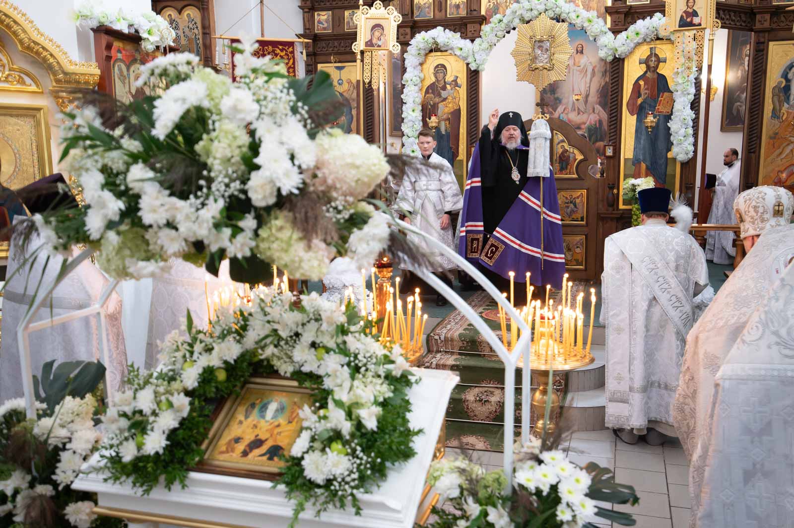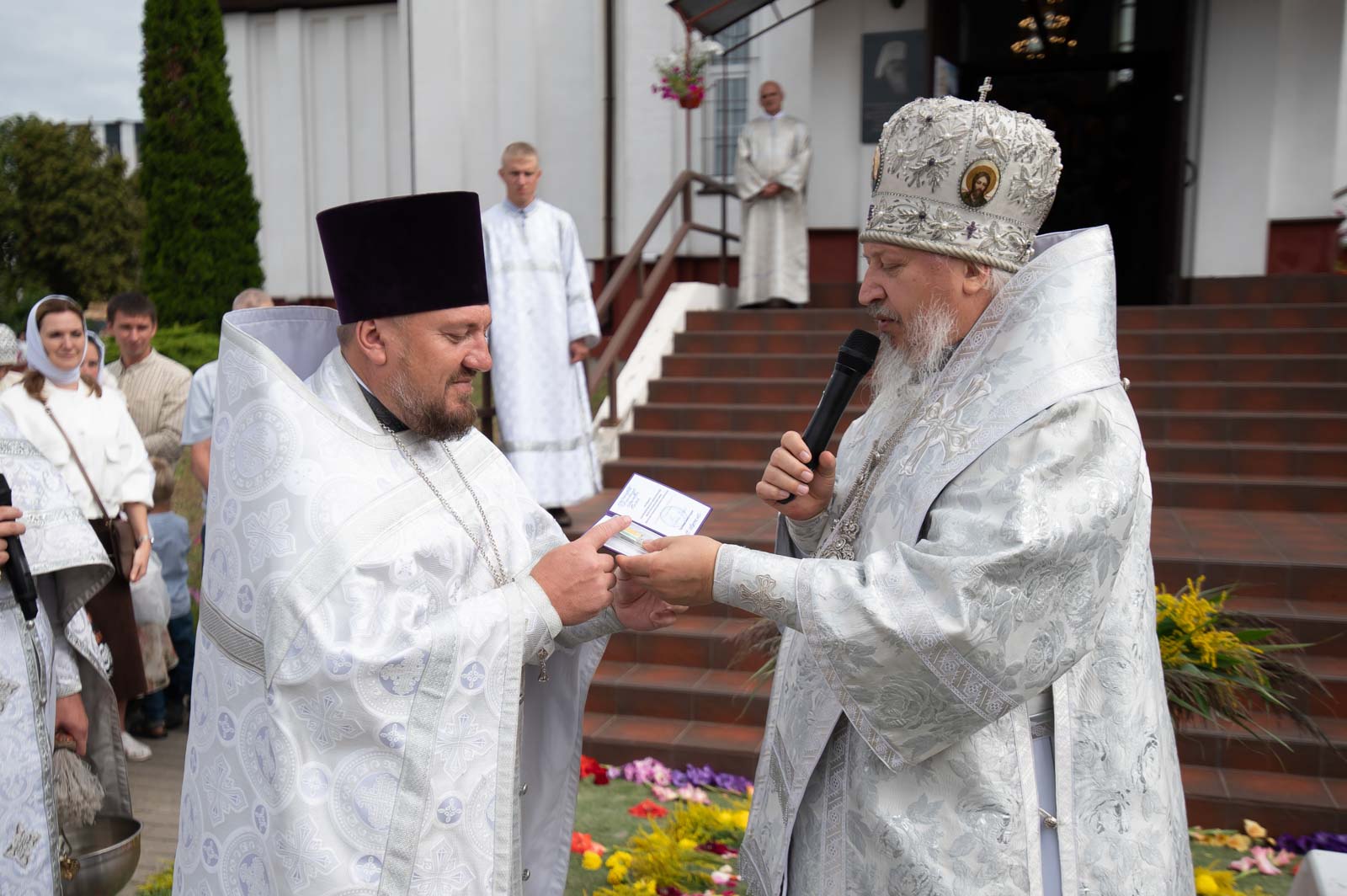 По завершении богослужения состоялся крестный ход после которого архиепископ Стефан освятил плоды, поздравил духовенство и прихожан с престольным праздником и обратился к молящимся со словами архипастырского назидания.