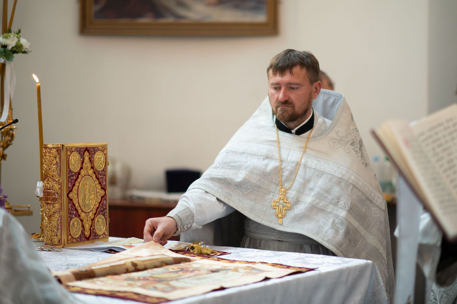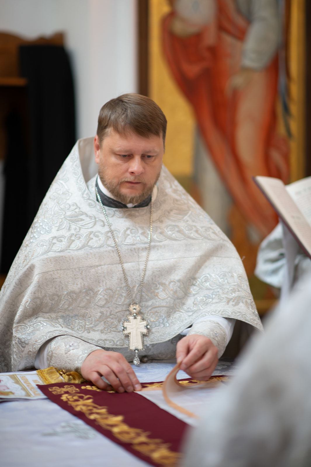 Во внимание к многолетним трудам на благо Святой Церкви архиепископ Стефан вручил медаль святого праведного Ионна Кормянского протоиерею Александру Киселю.