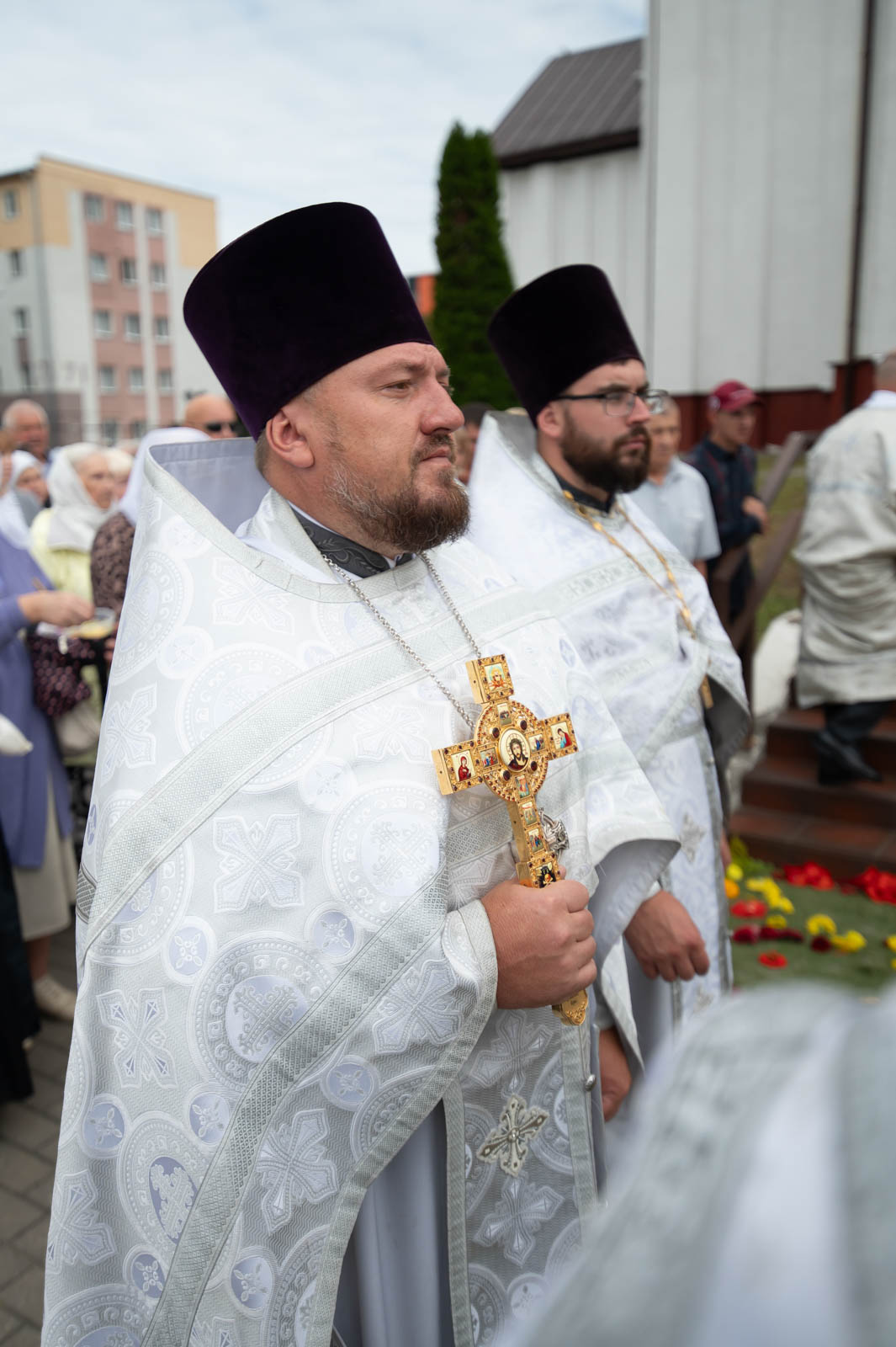 Его Высокопреосвященству сослужили: секретарь Гомельской епархии протоиерей Георгий Алампиев, благочинный Светлогорского округа, настоятель прихода протоиерей Александр Кисель, духовенство благочиния и епархии.