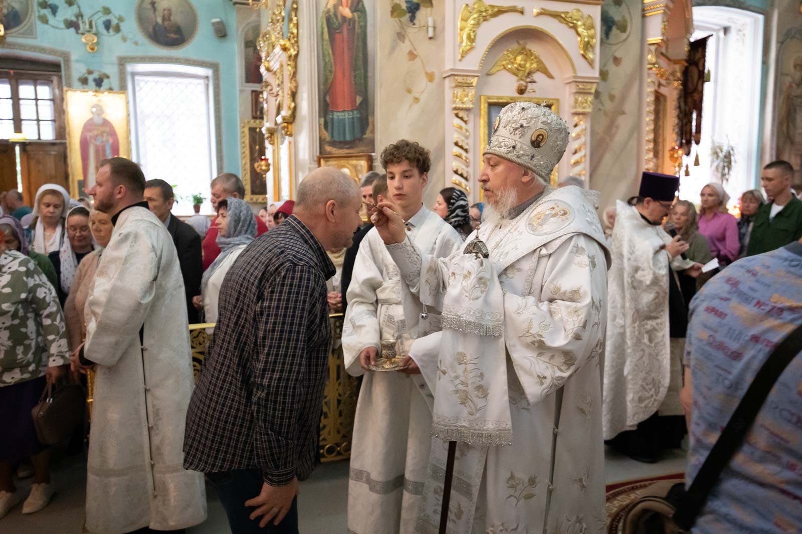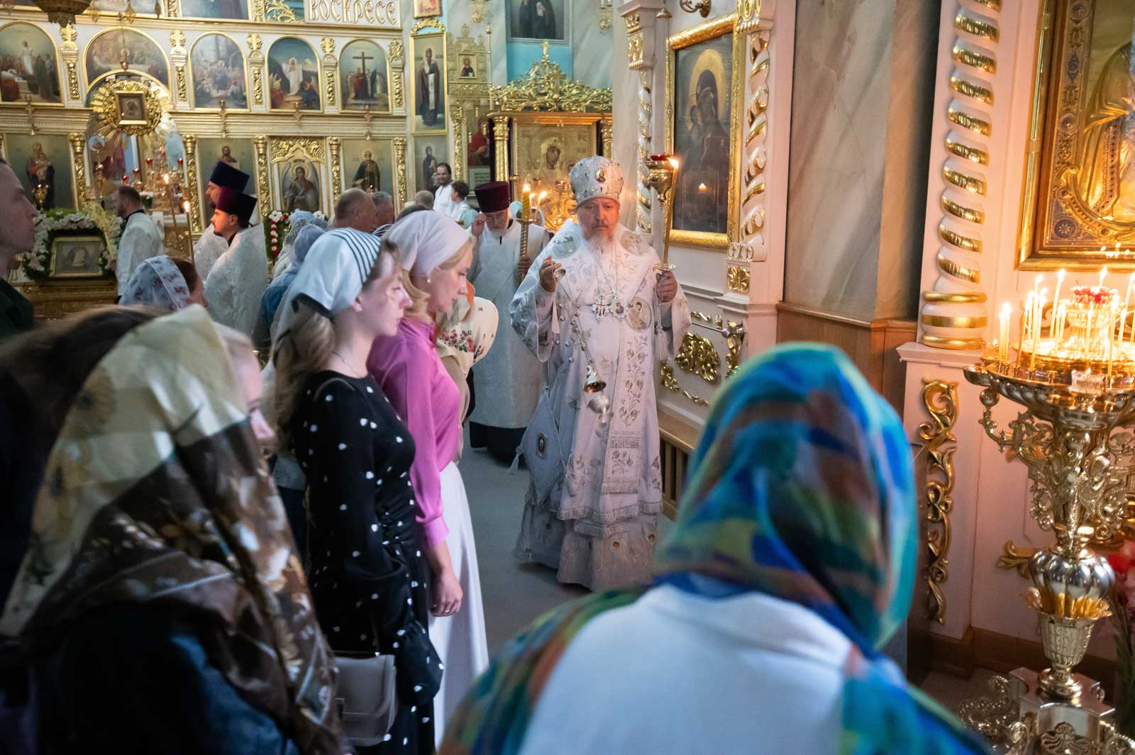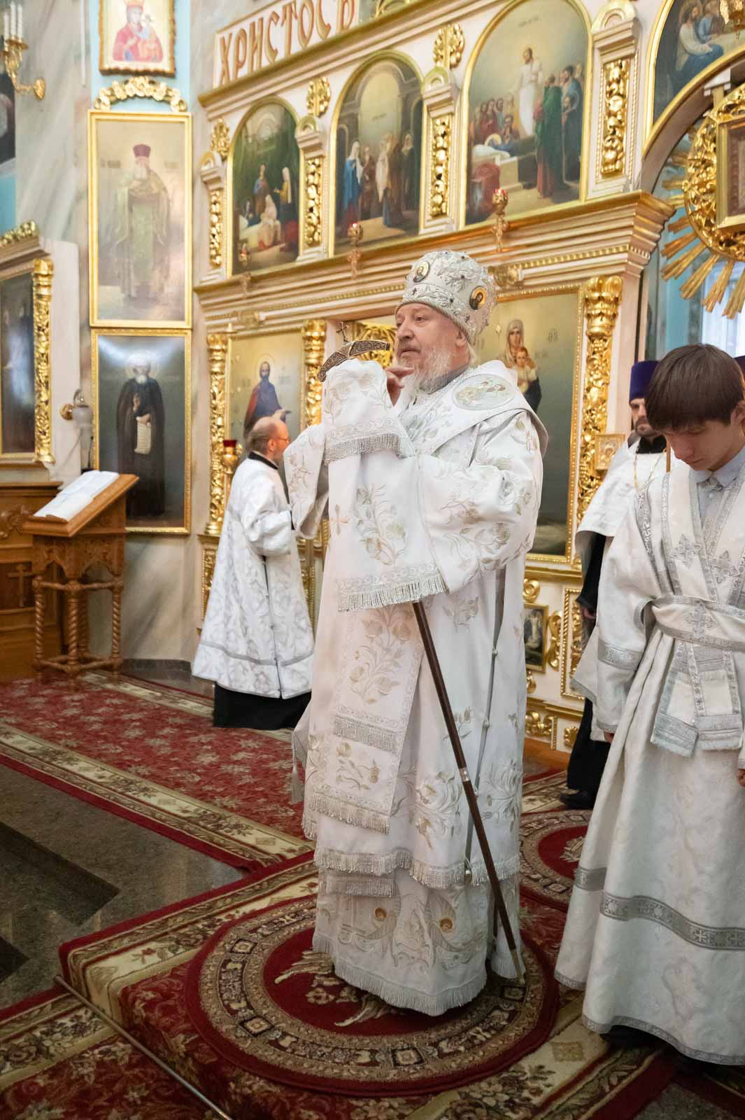 За богослужением архипастырю сослужили клирики кафедрального собора. Владыка Стефан помазал верующих освящённым елеем и преподал всем архипастырское благословение.