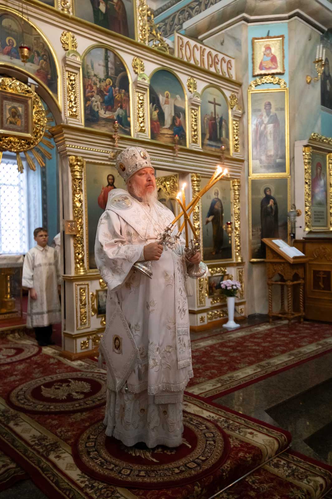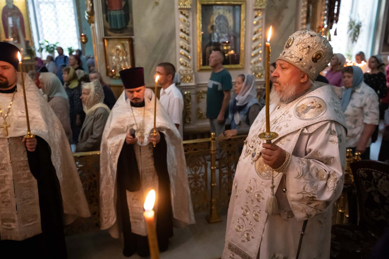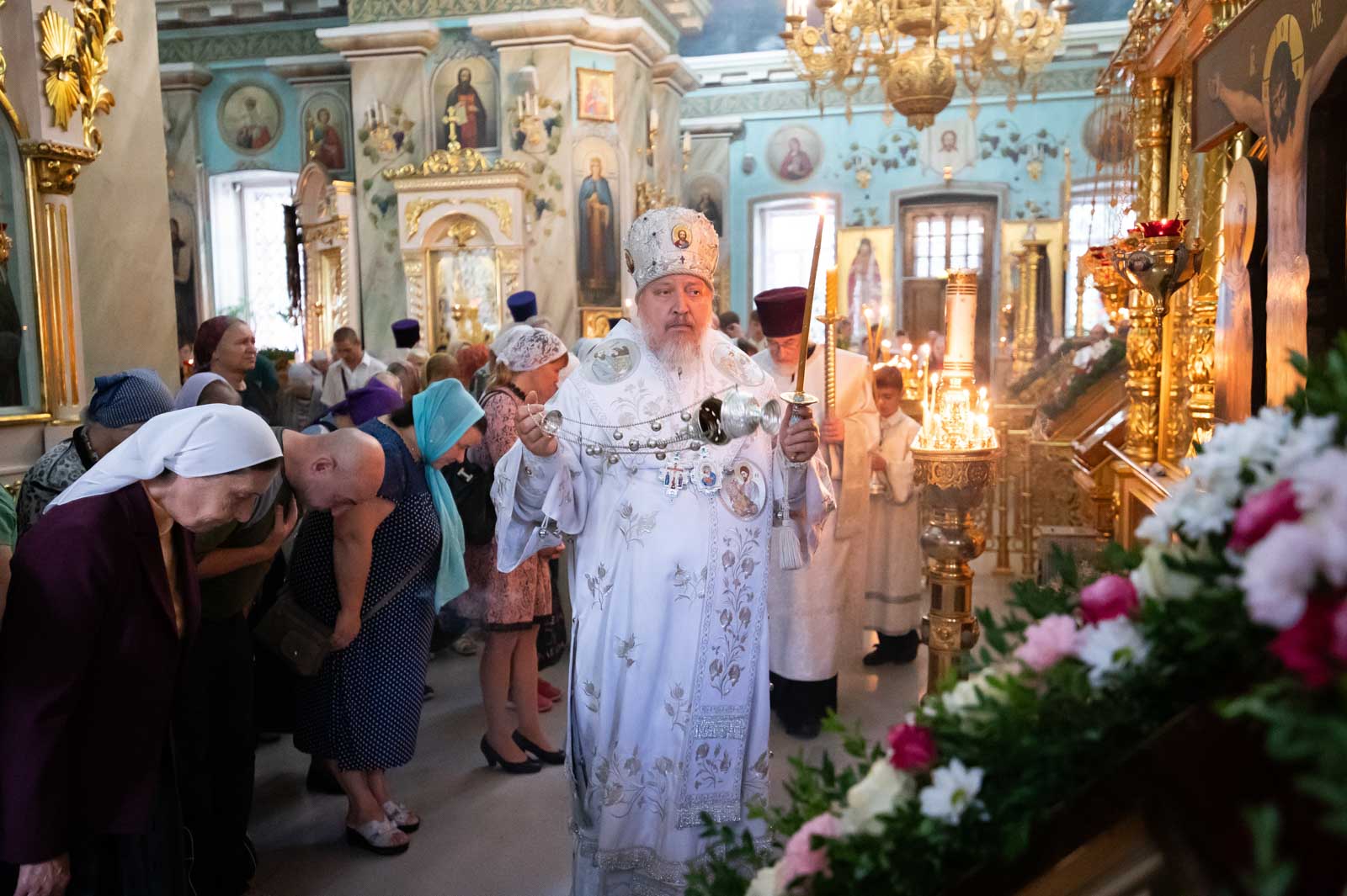 За богослужением архипастырю сослужили клирики кафедрального собора. Владыка Стефан помазал верующих освящённым елеем и преподал всем архипастырское благословение.