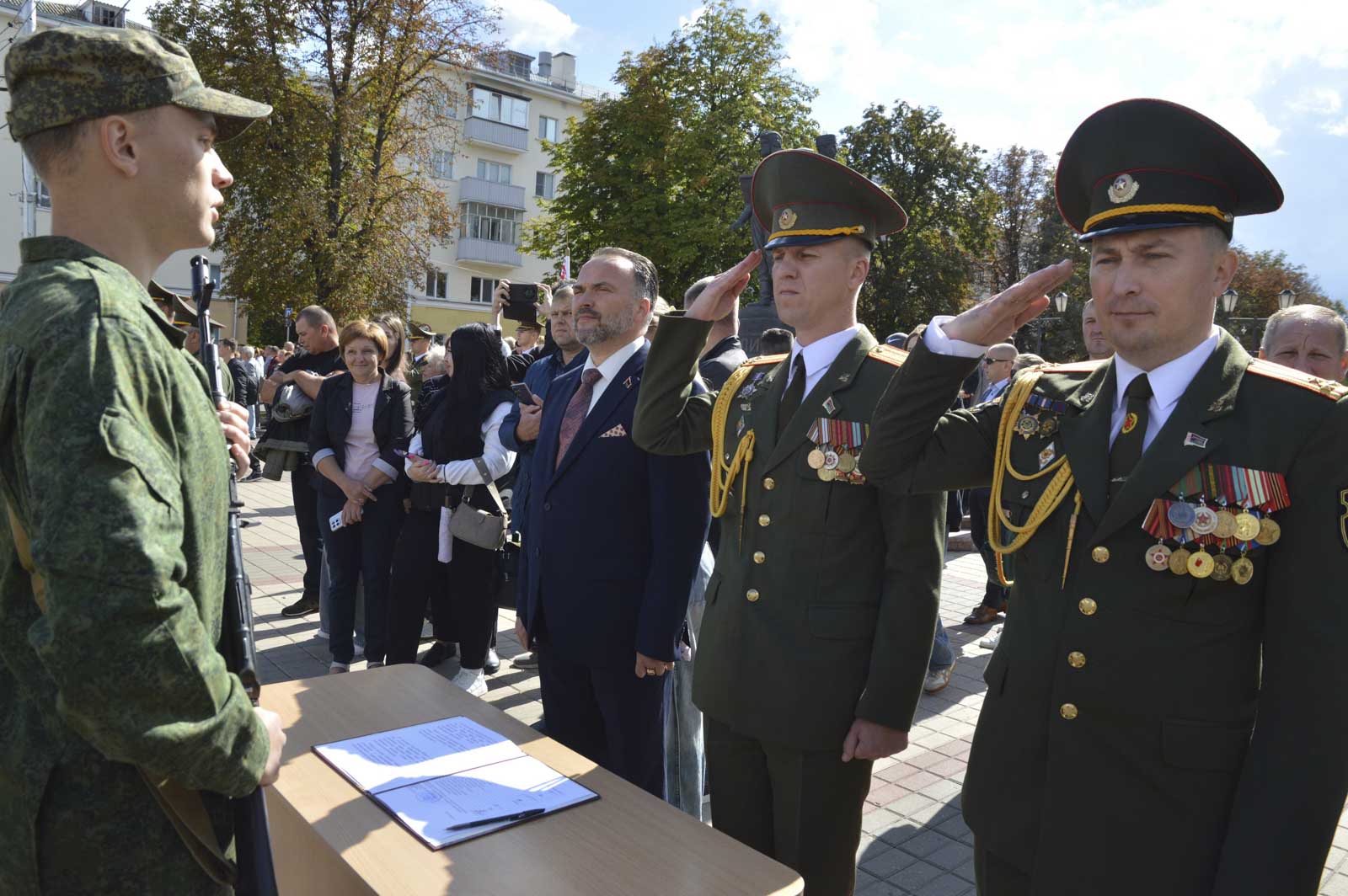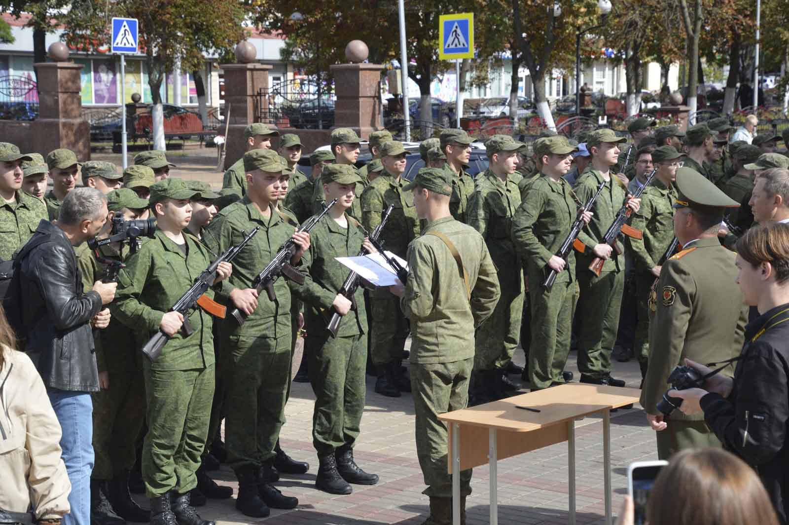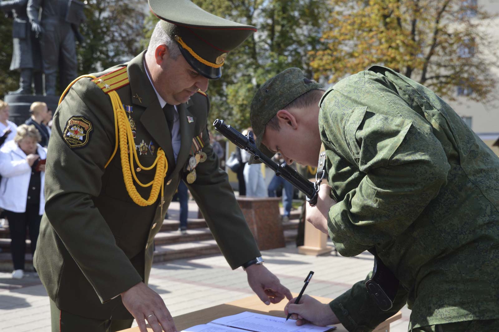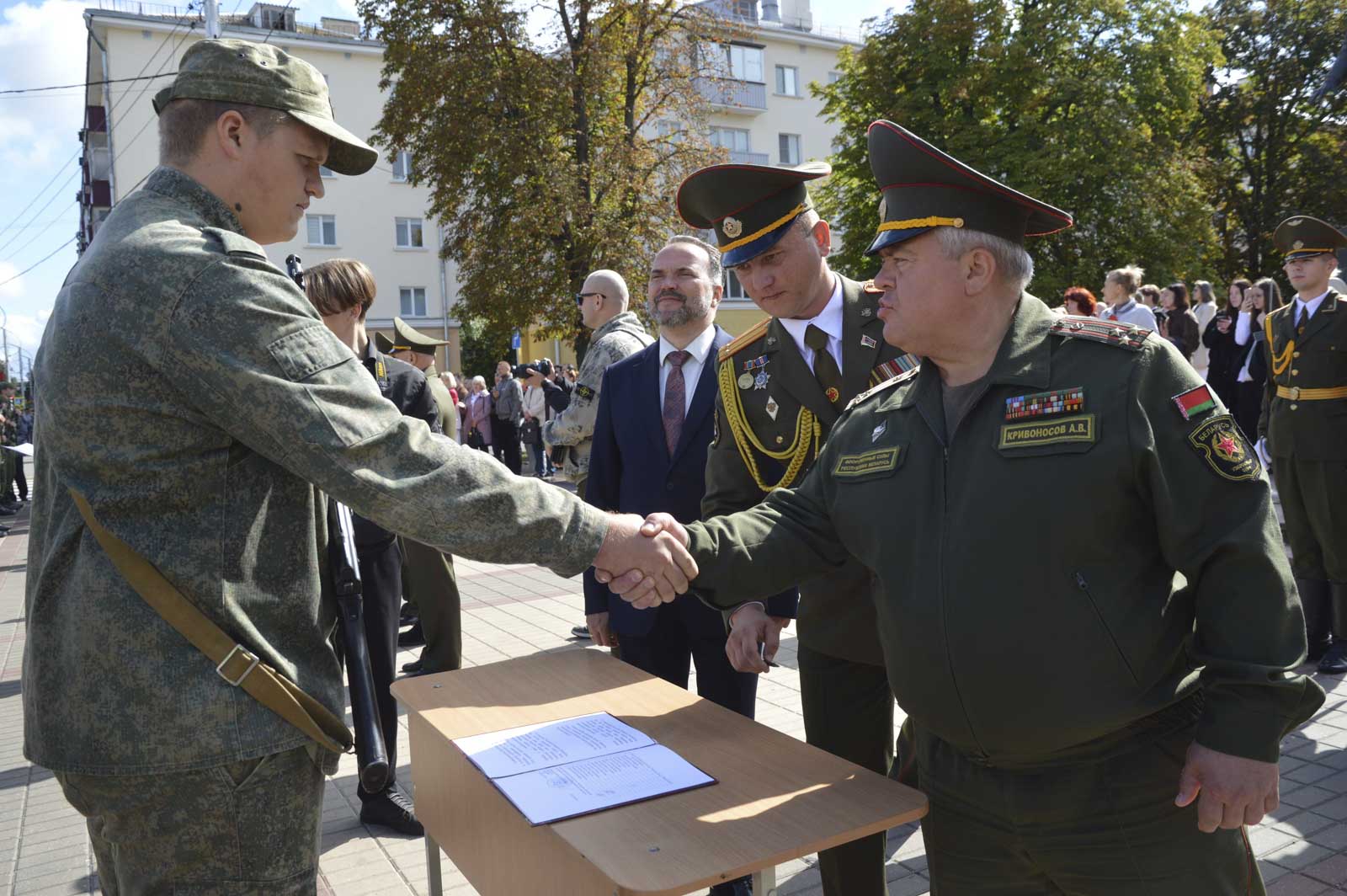 Почетный ритуал приведения к Военной присяге 27 августа 2025 года прошли студенты, обучающиеся по программе подготовки офицеров запаса БелГУТа, ГГУ им. Ф.Скорины и ГГТУ им. П.О.Сухого.