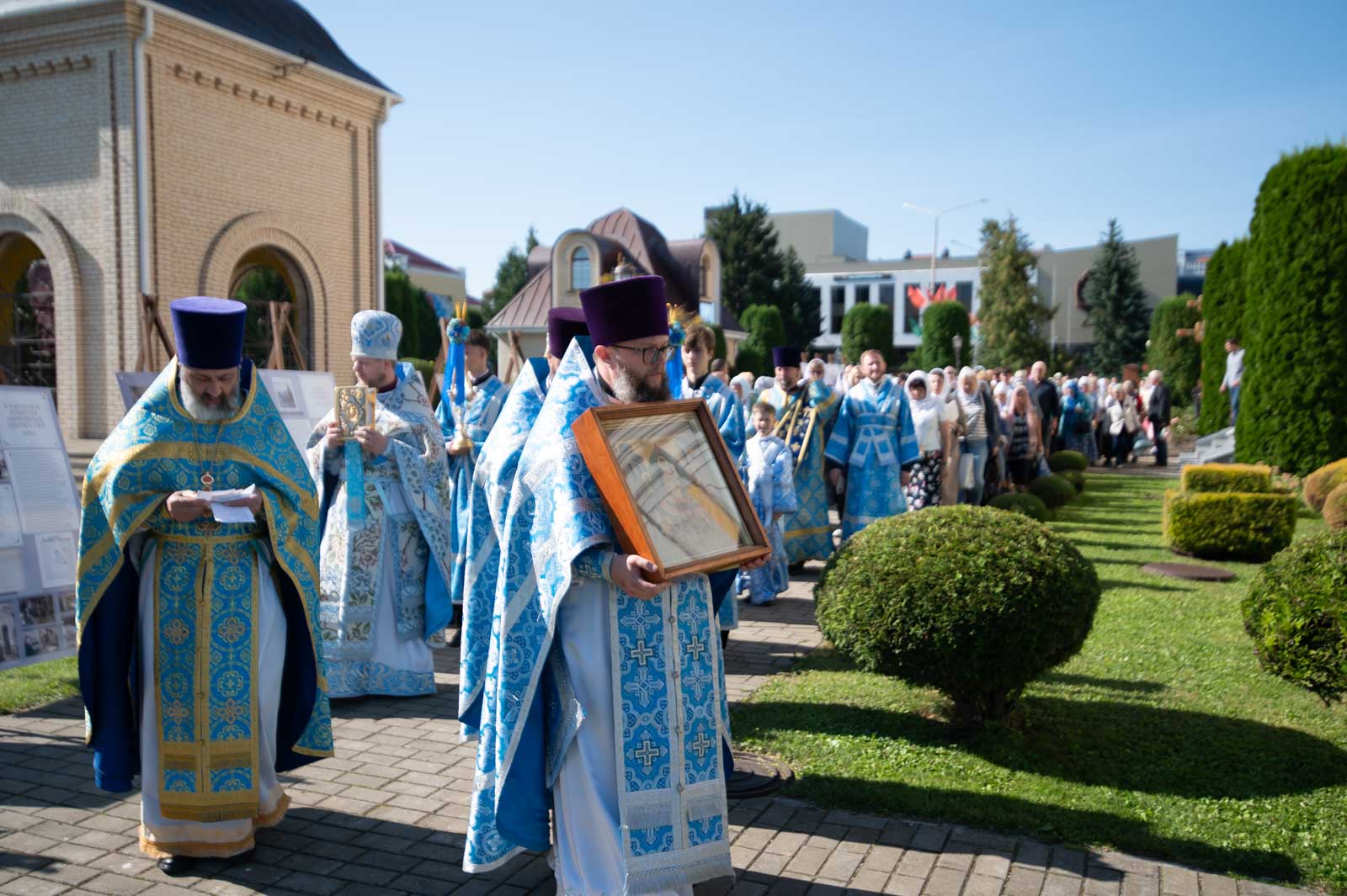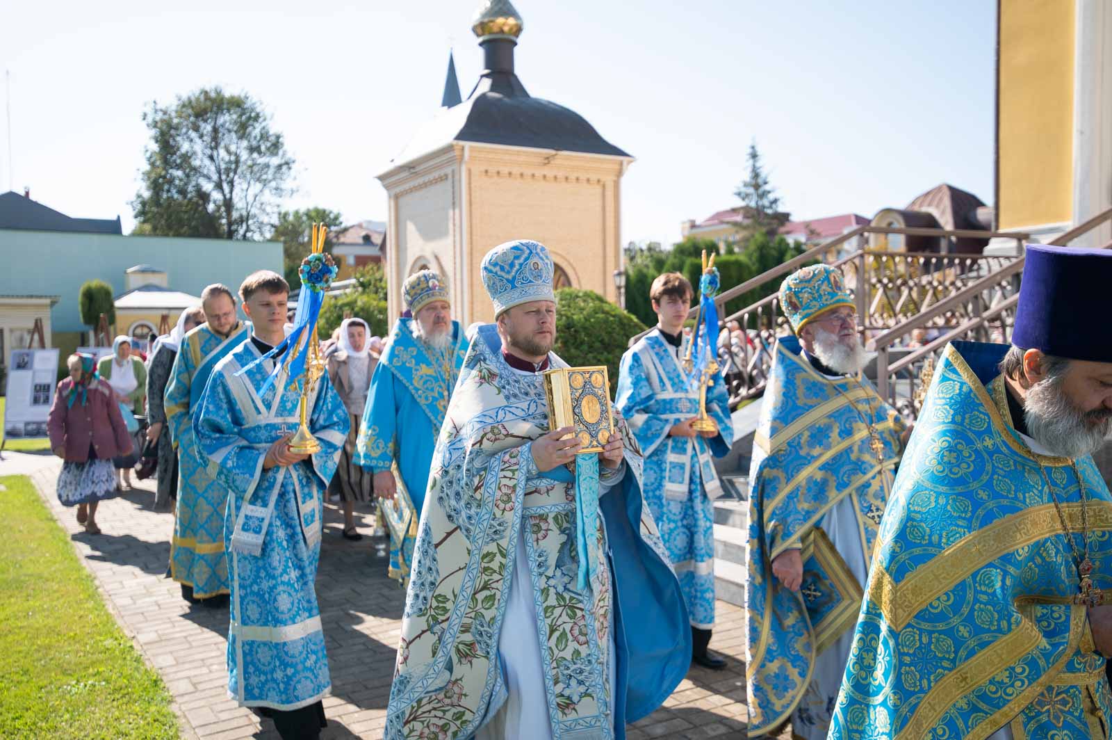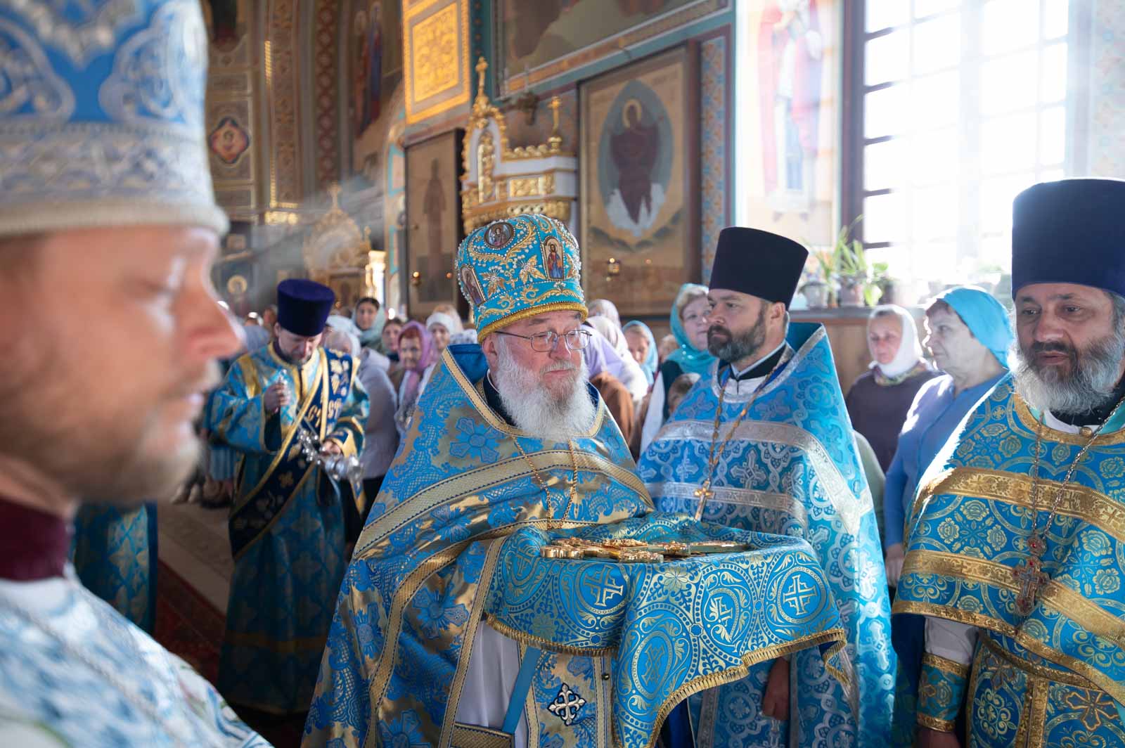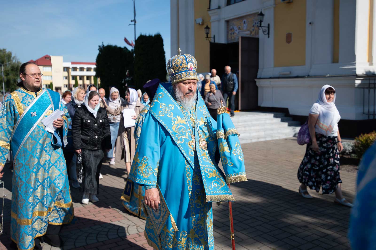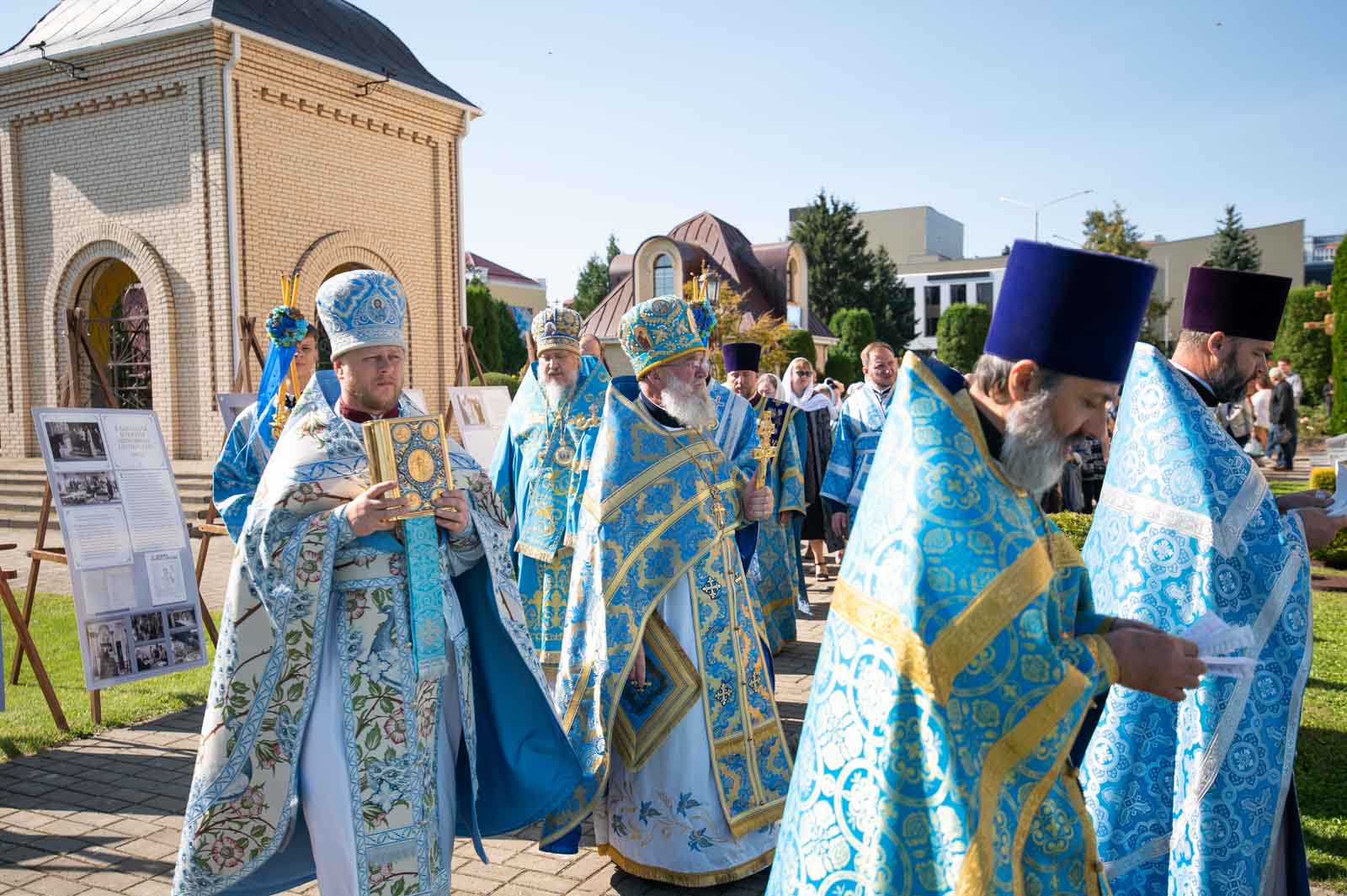 В завершение Литургии духовенство и молящиеся во главе с архипастырем совершили крестный ход вокруг собора.