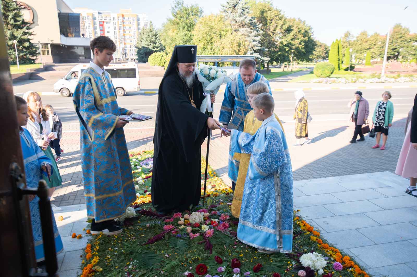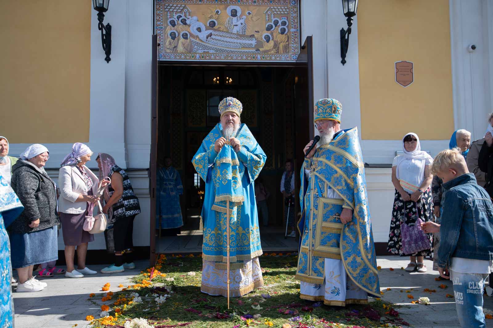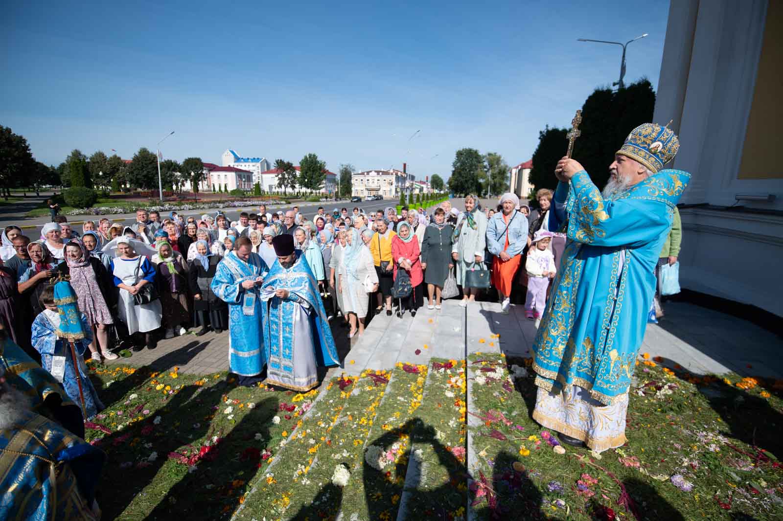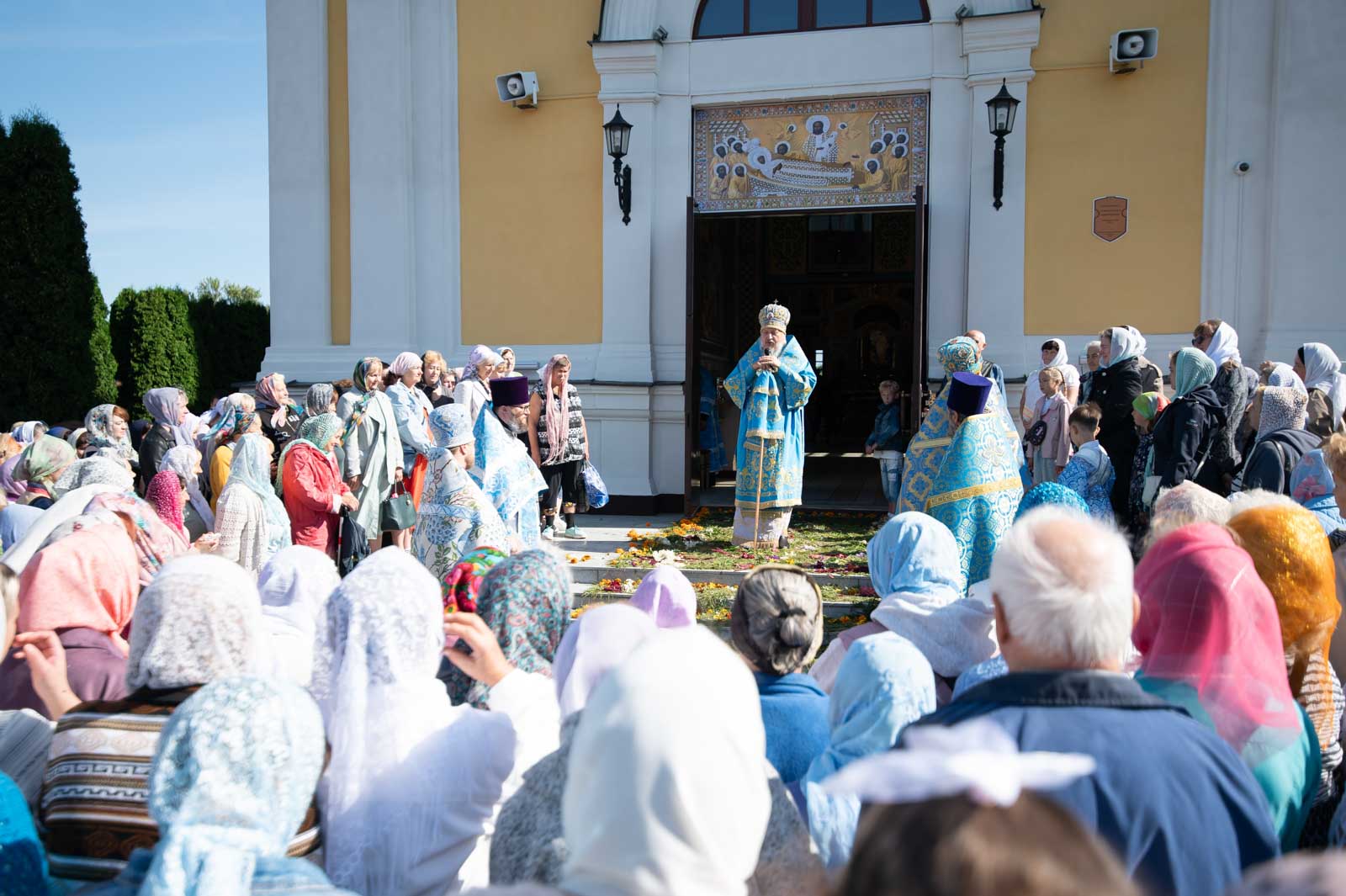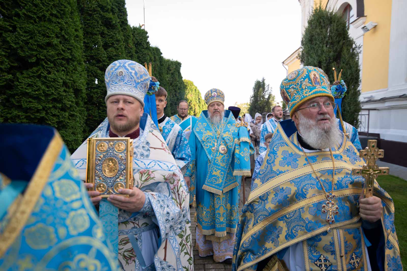 В завершение Литургии духовенство и молящиеся во главе с архипастырем совершили крестный ход вокруг собора.