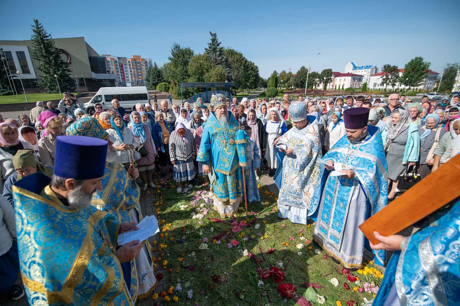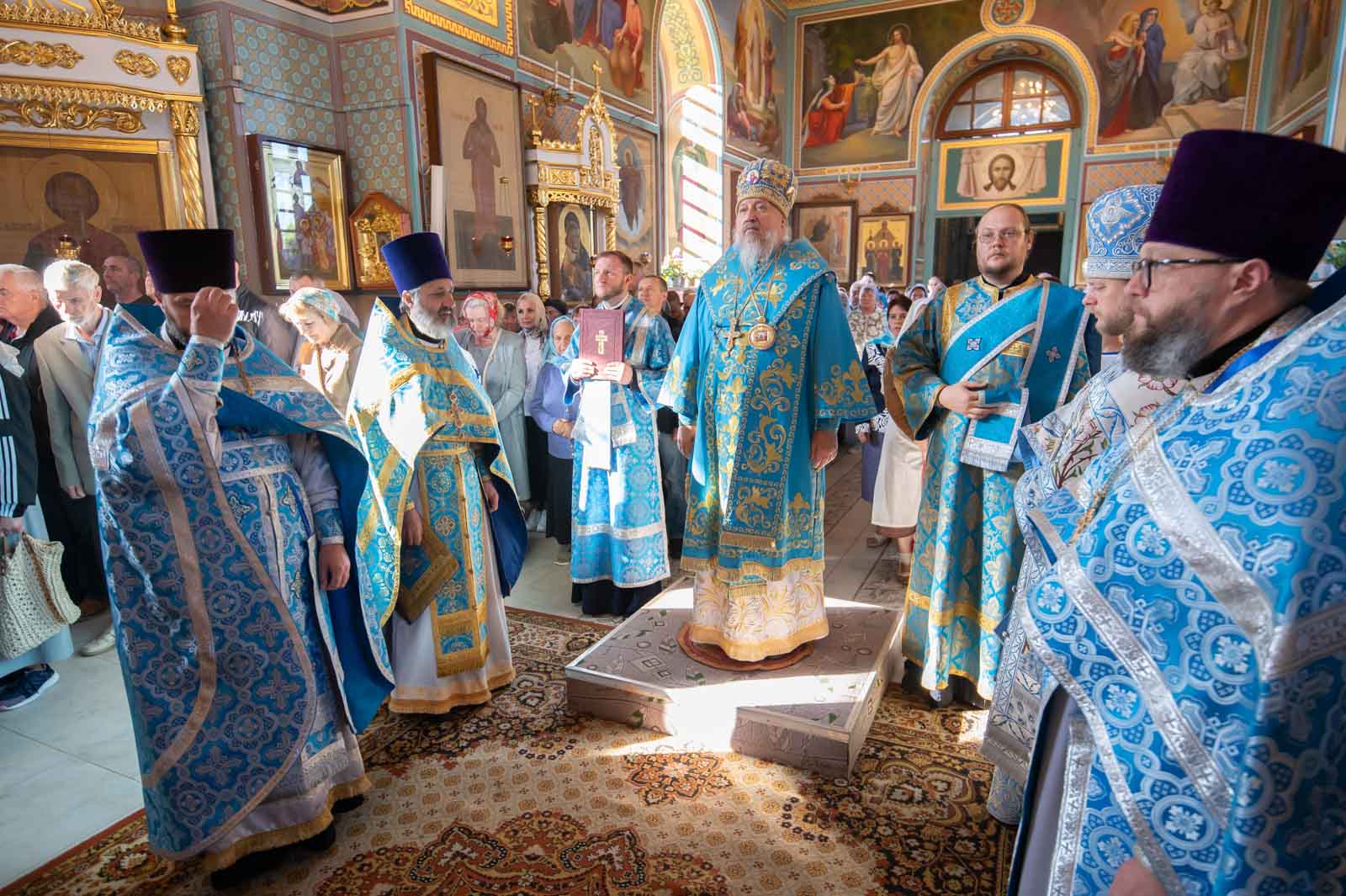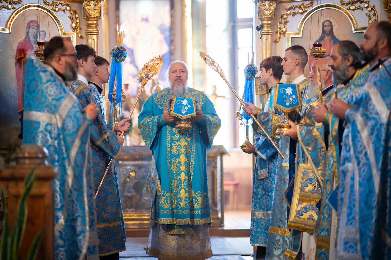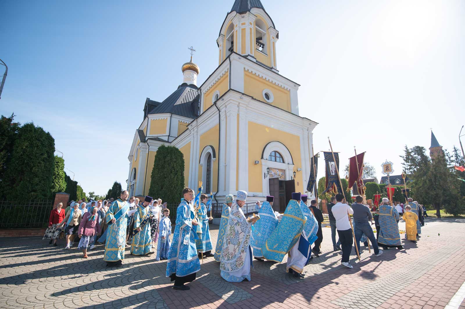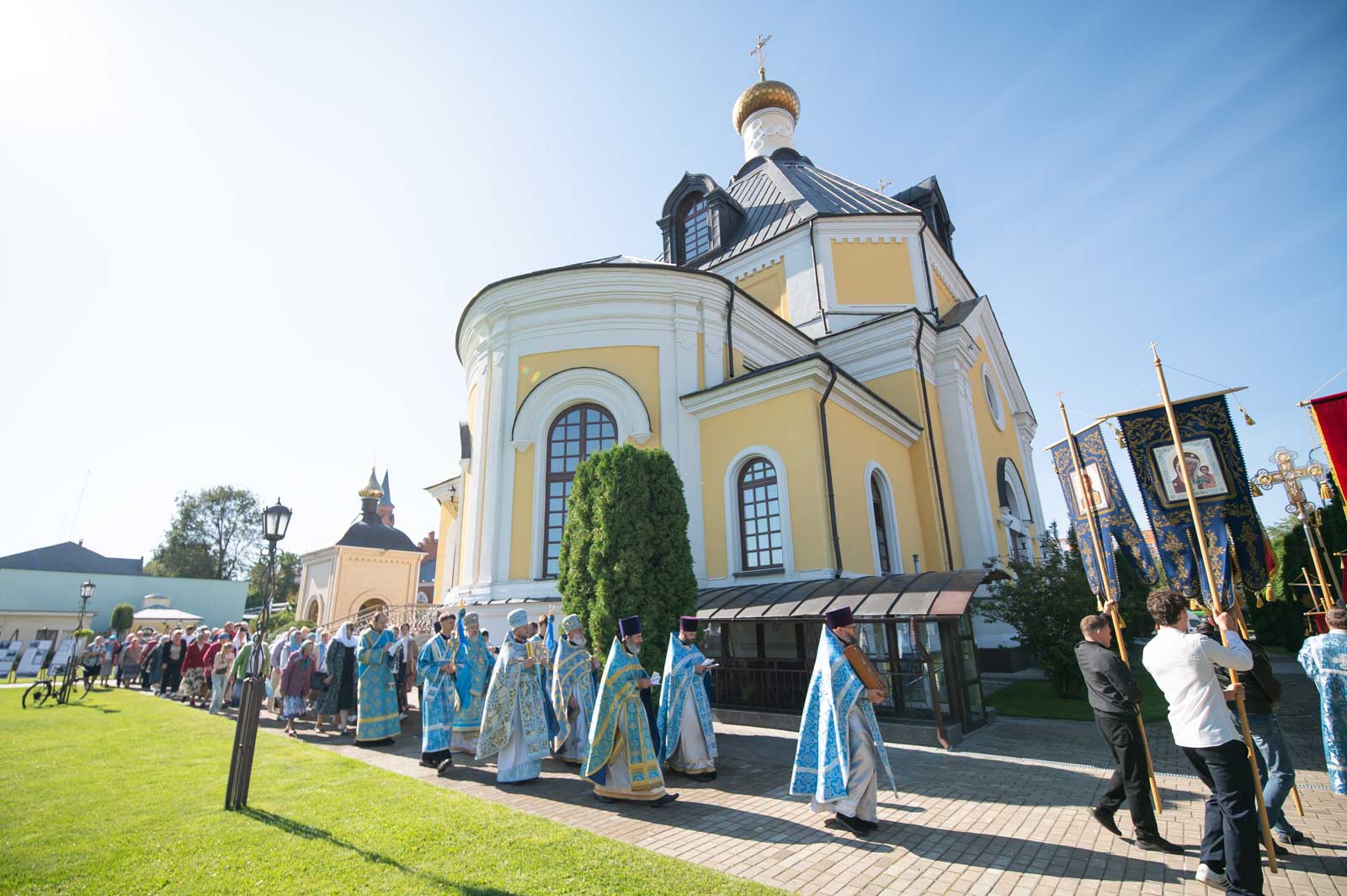 В завершение Литургии духовенство и молящиеся во главе с архипастырем совершили крестный ход вокруг собора.